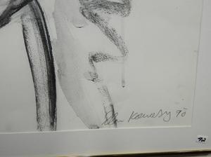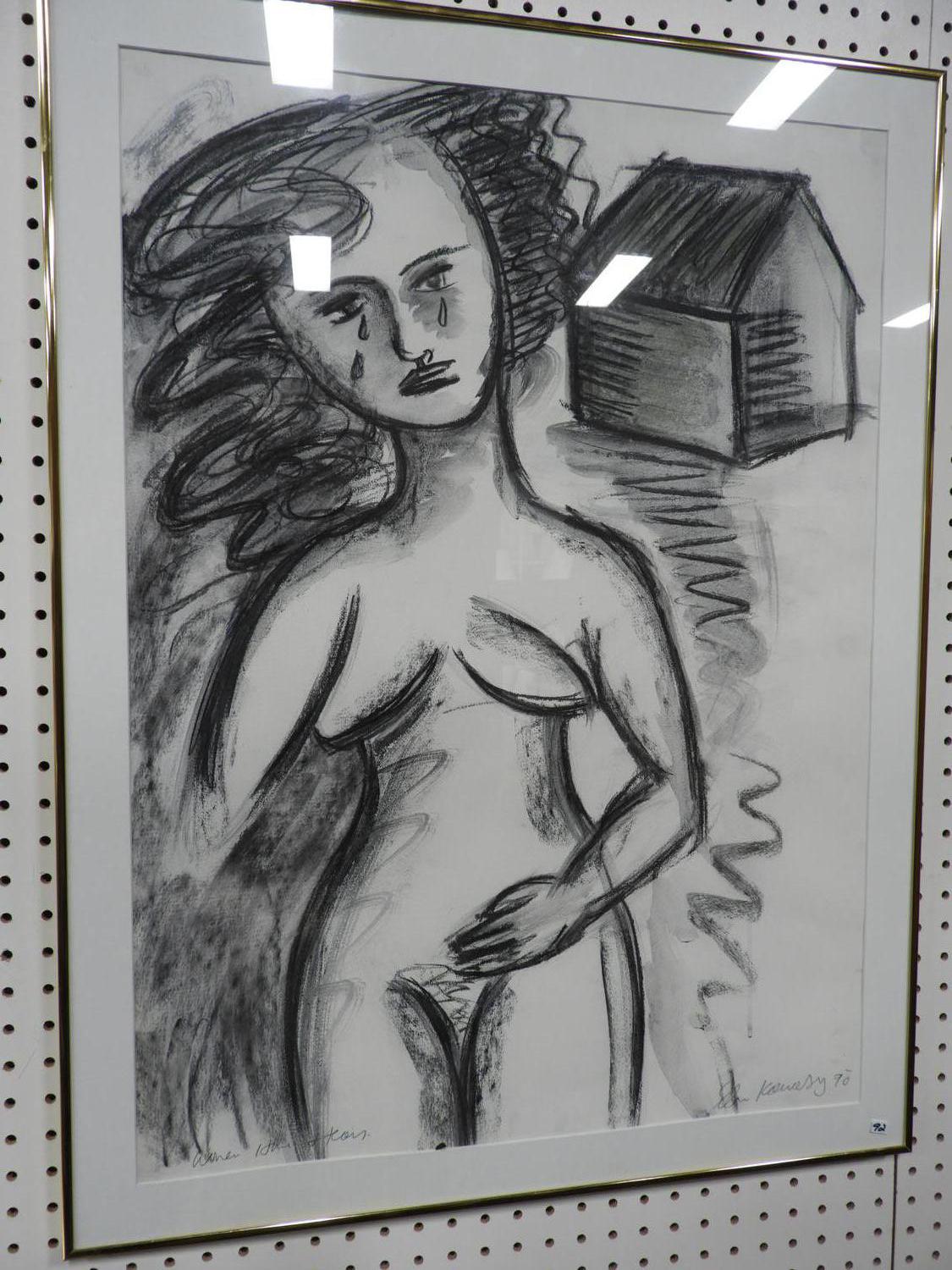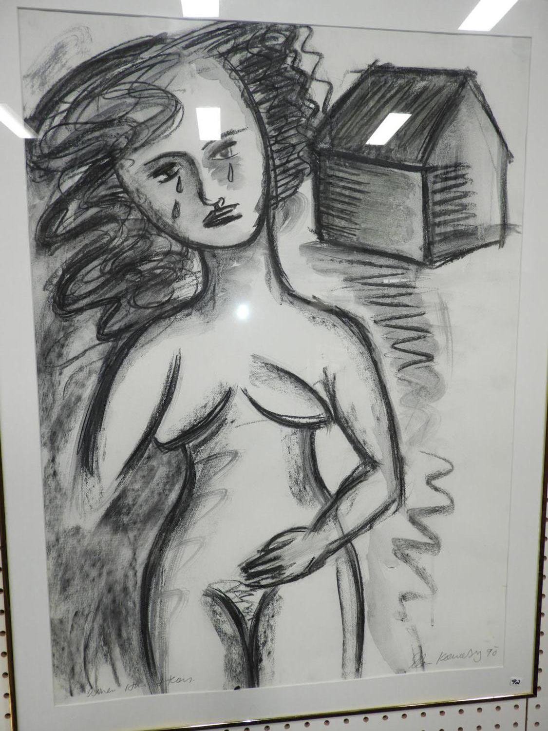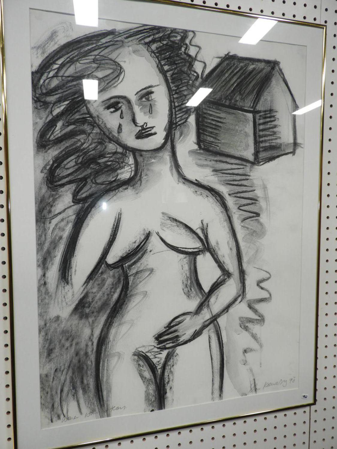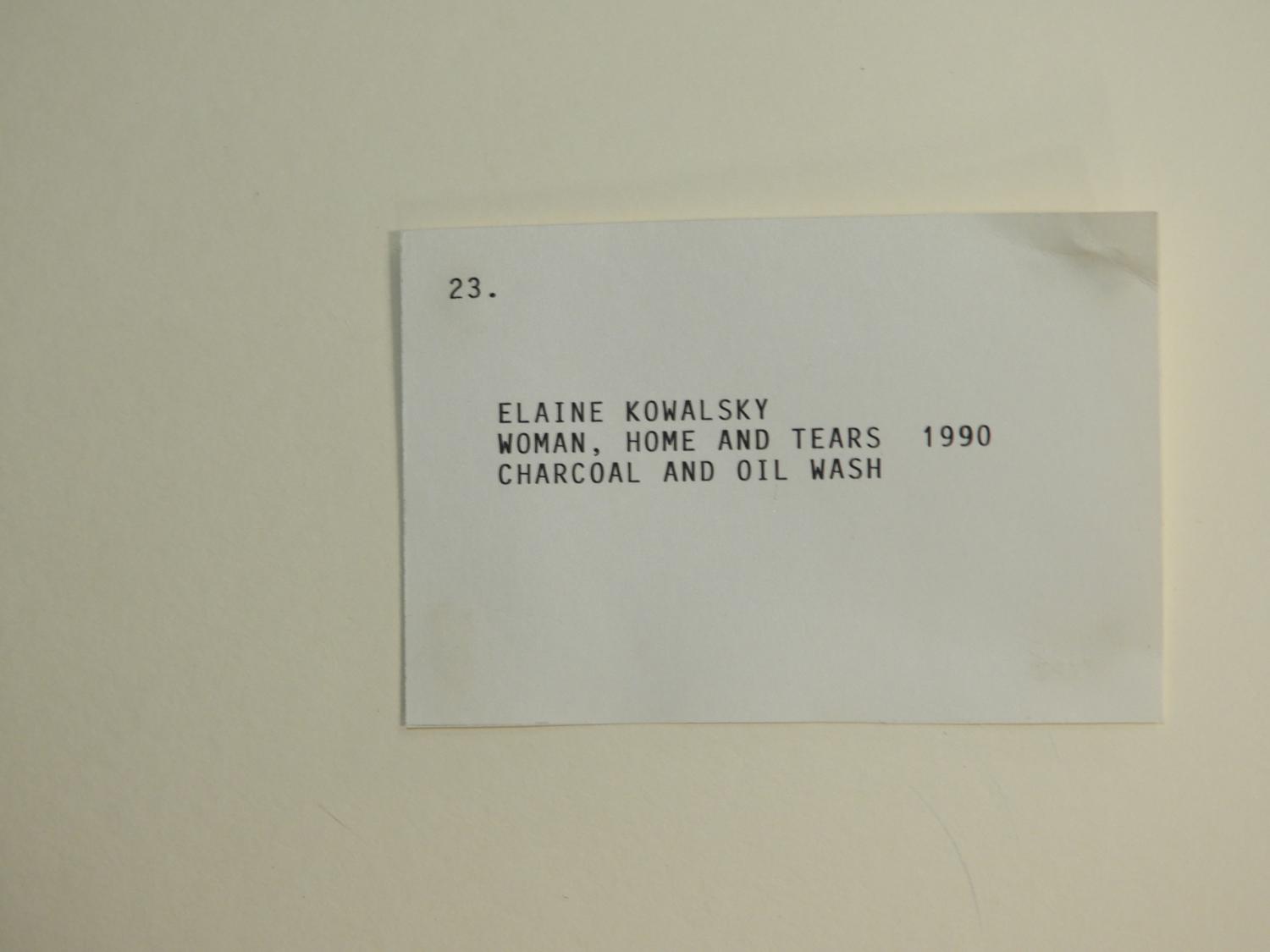elaine kowalsky (1948-2005), c.1990, charcoal and oil wash, 30" x 21", "woman, home & tears"
