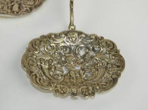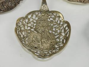 five dutch silver pierced spoons and tongs