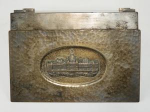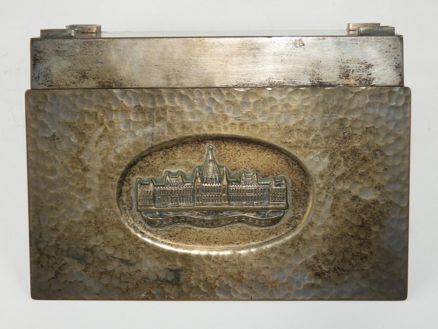 parliament of budapest silver cigarette box, 6 1/2" x 3 1/2"