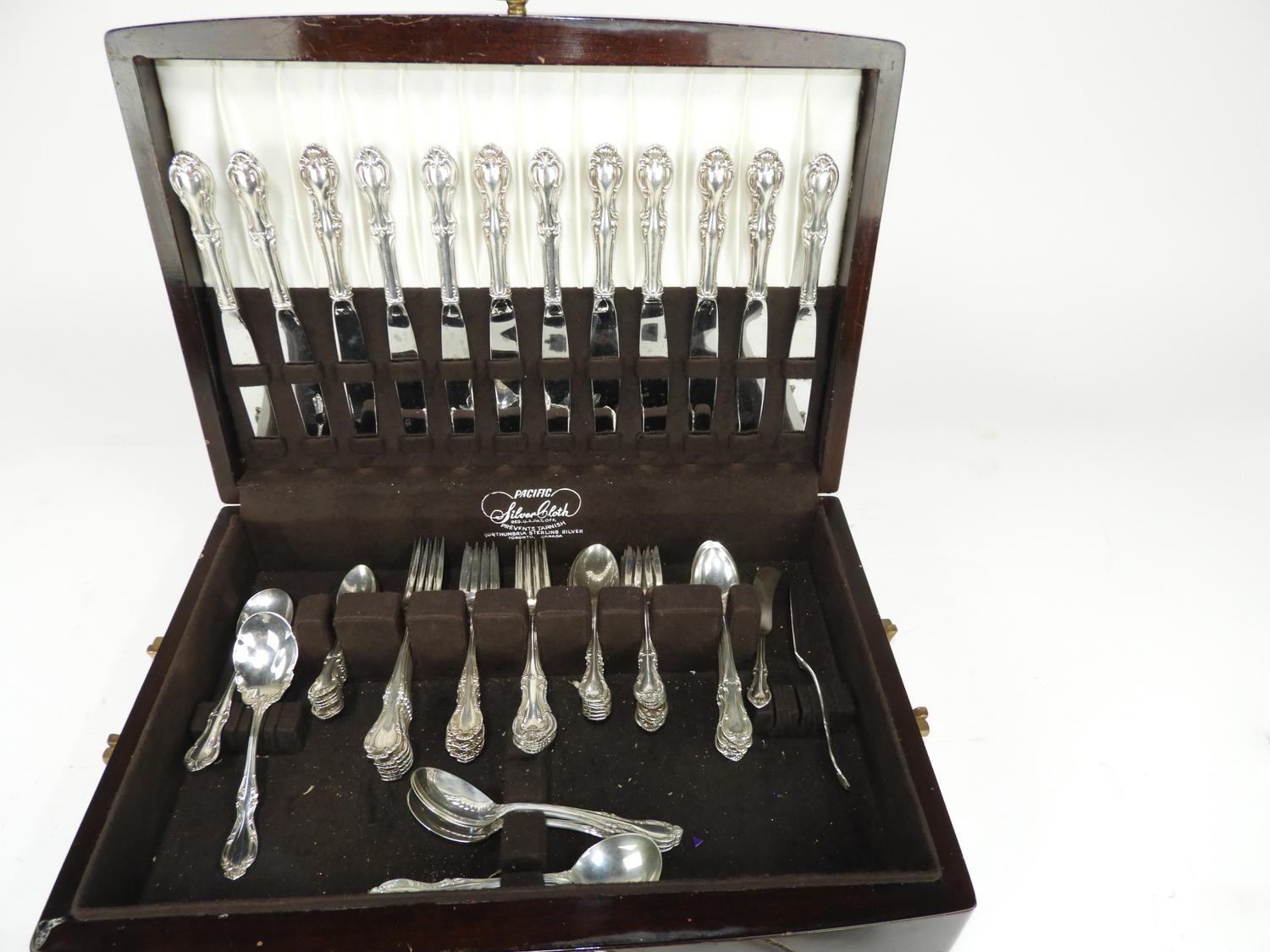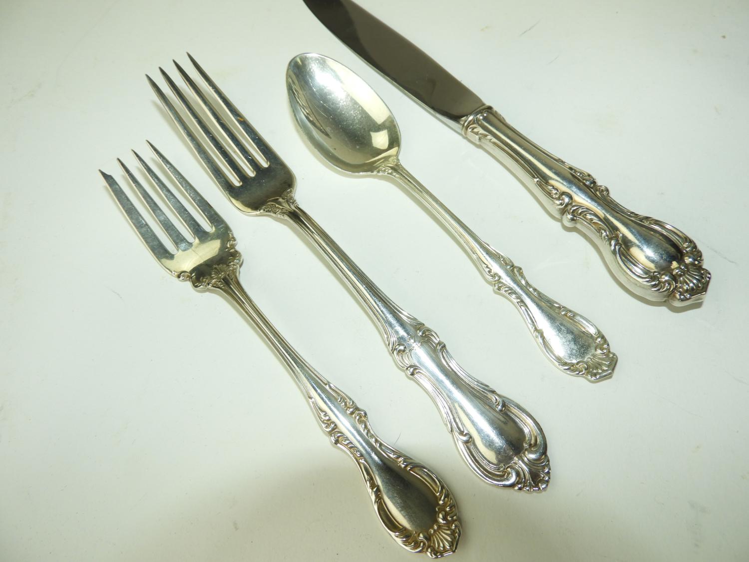 international sterling & northumbria sterling silver flatware in in canteen with lot of silver plate flatware