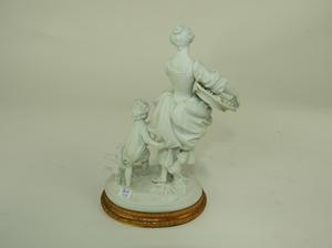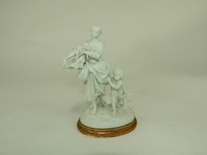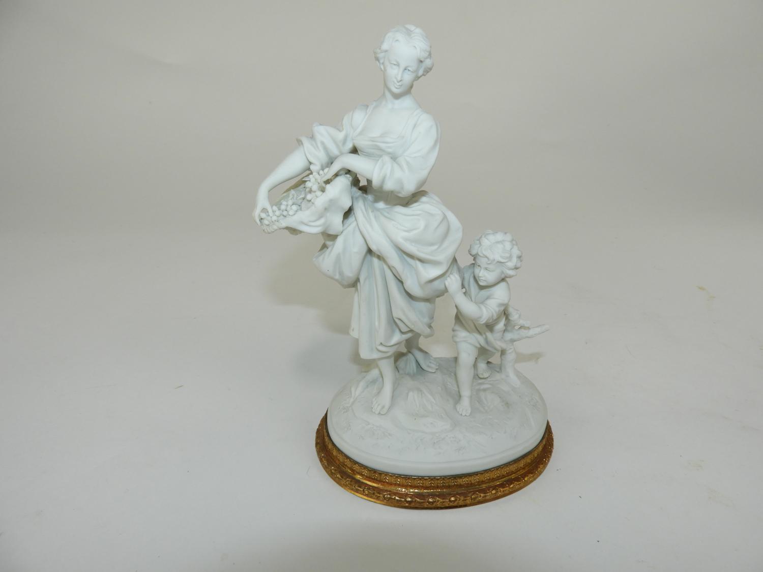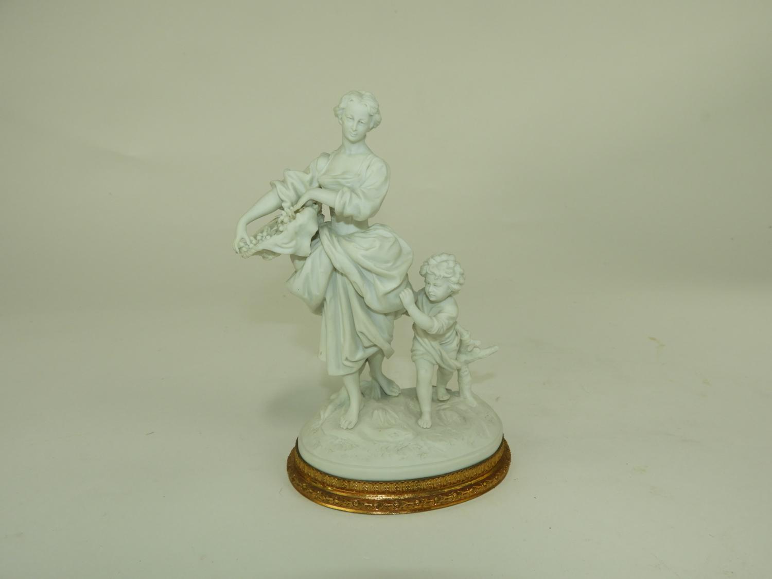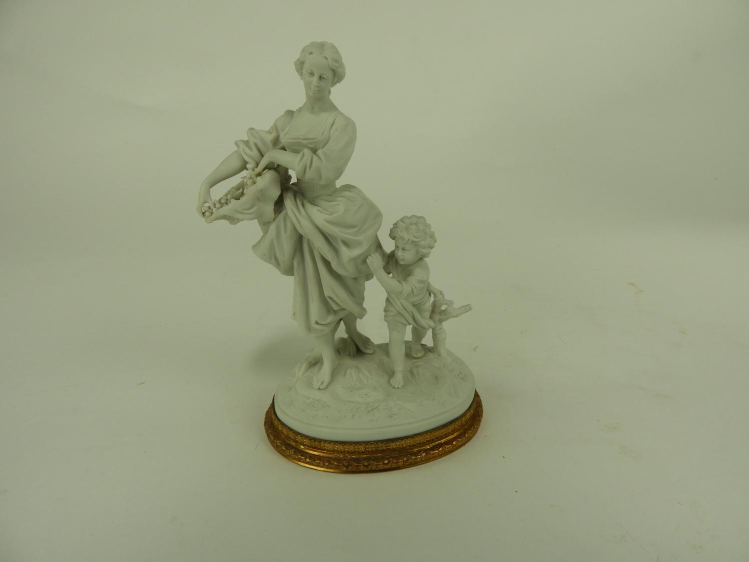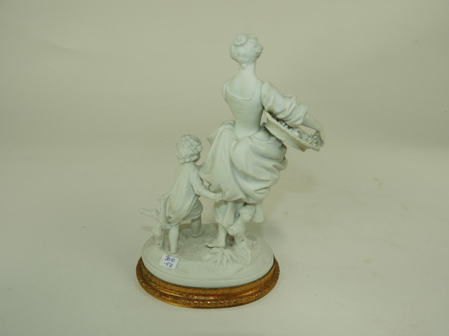 blanc de chine figural group with gilt metal base, ht 8 1/2"