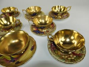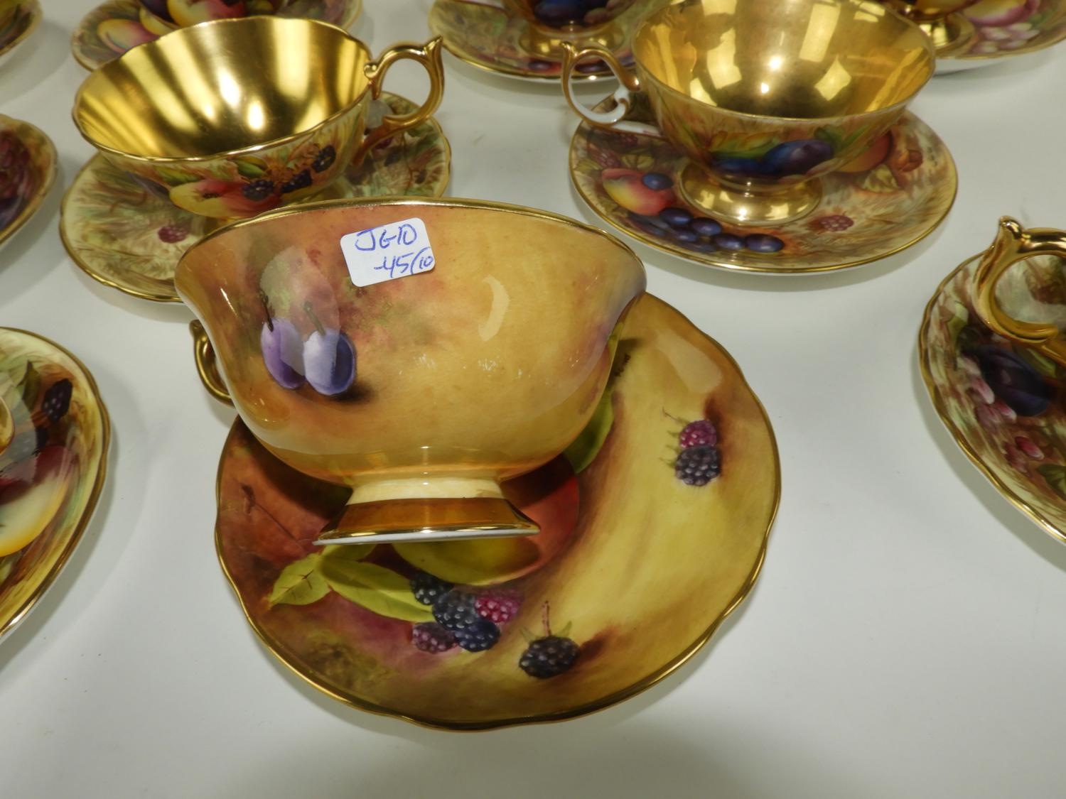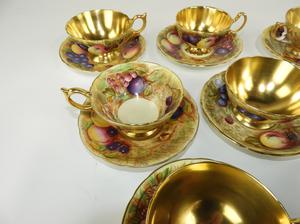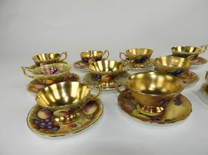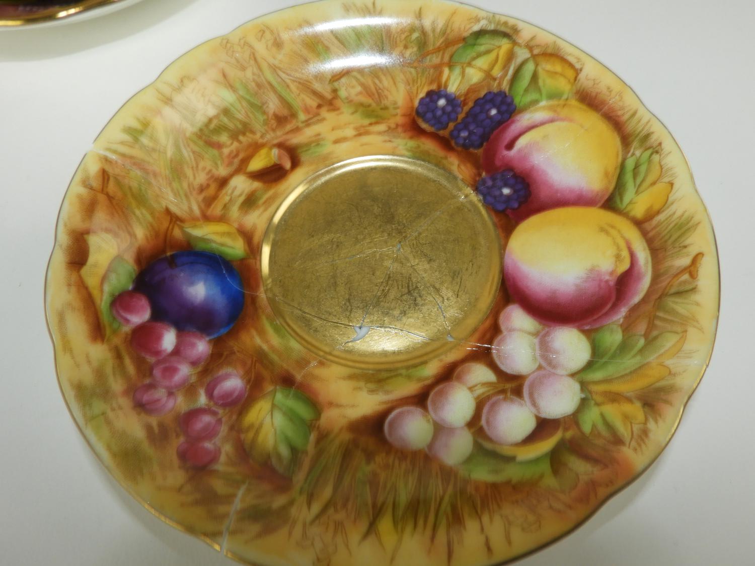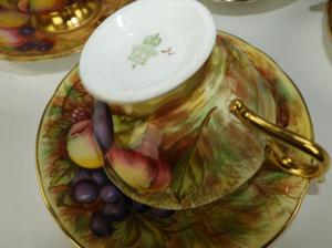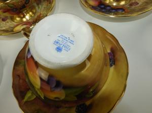 7 Aynsley fruit cups and saucers, no losses.1 Coalport fruit cup and saucer, no loss2 Handpainted occupied Japan, One no loss, one saucer is broken and fixed, see last picture