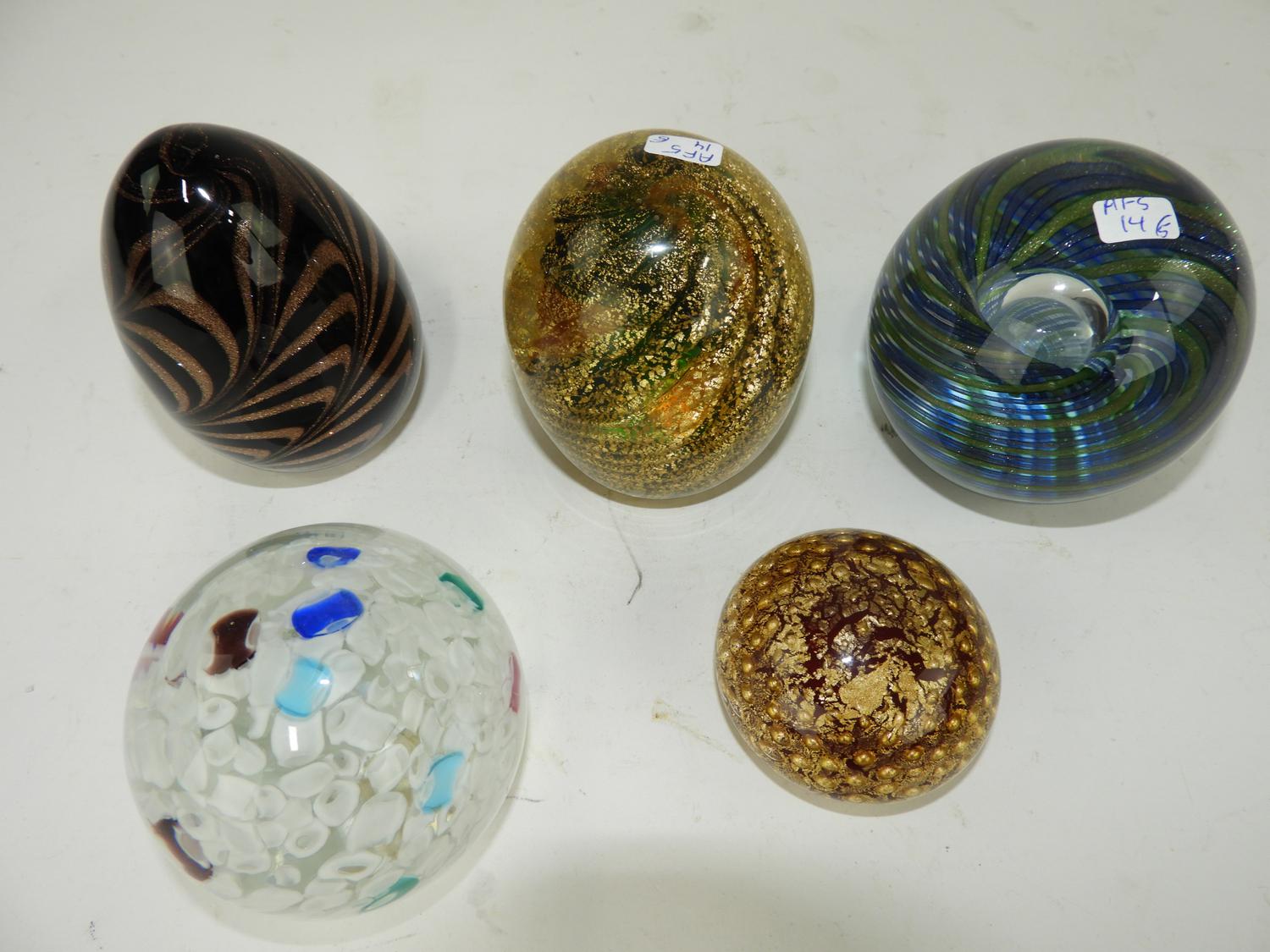 lot of 5 glass paperweights including murano