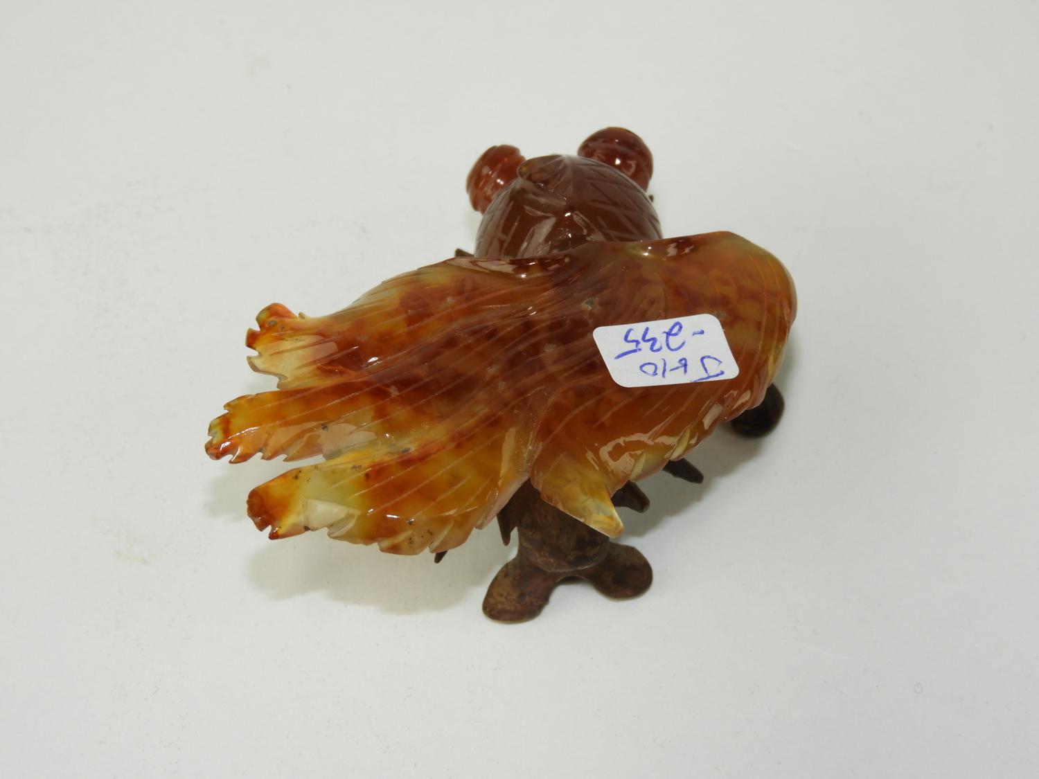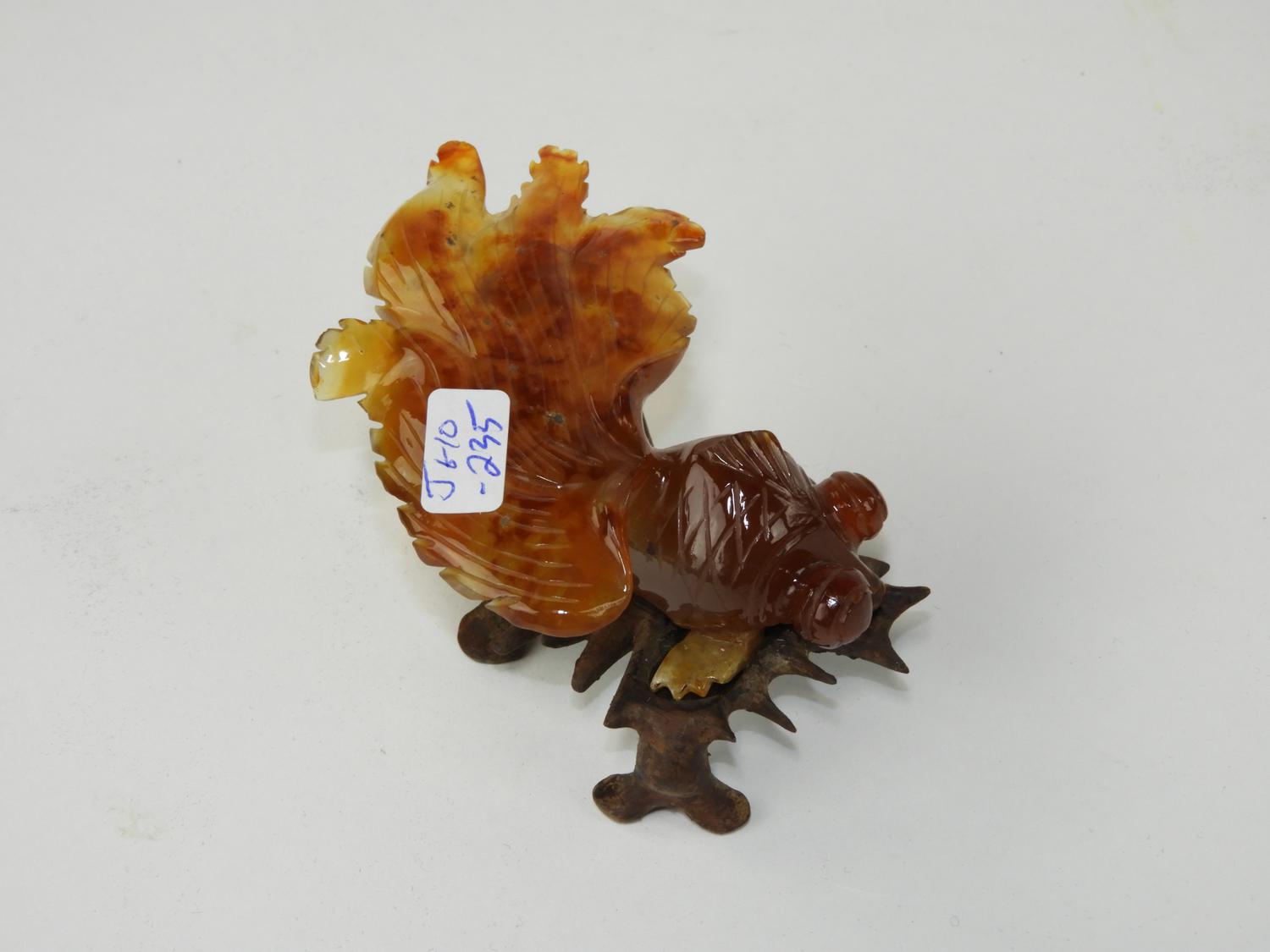 chinese carved carnelian gold fish on stand, 1 3/4" x 3"