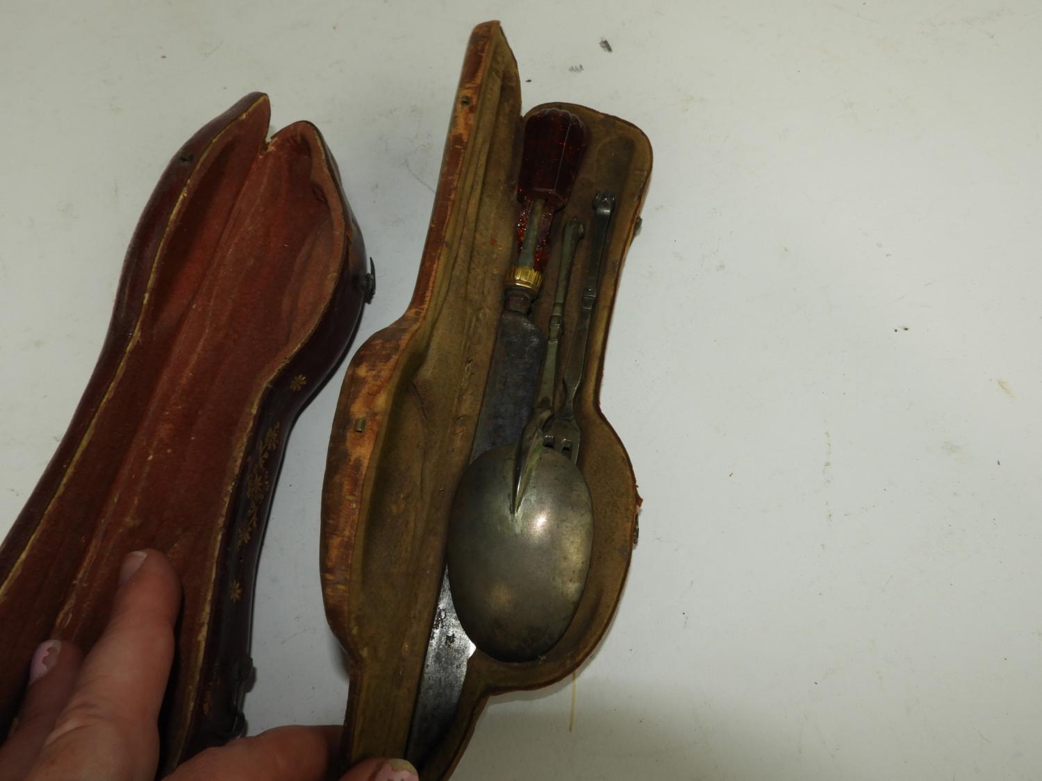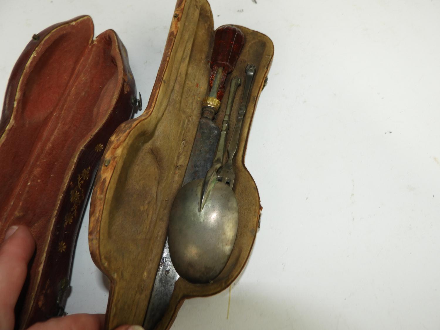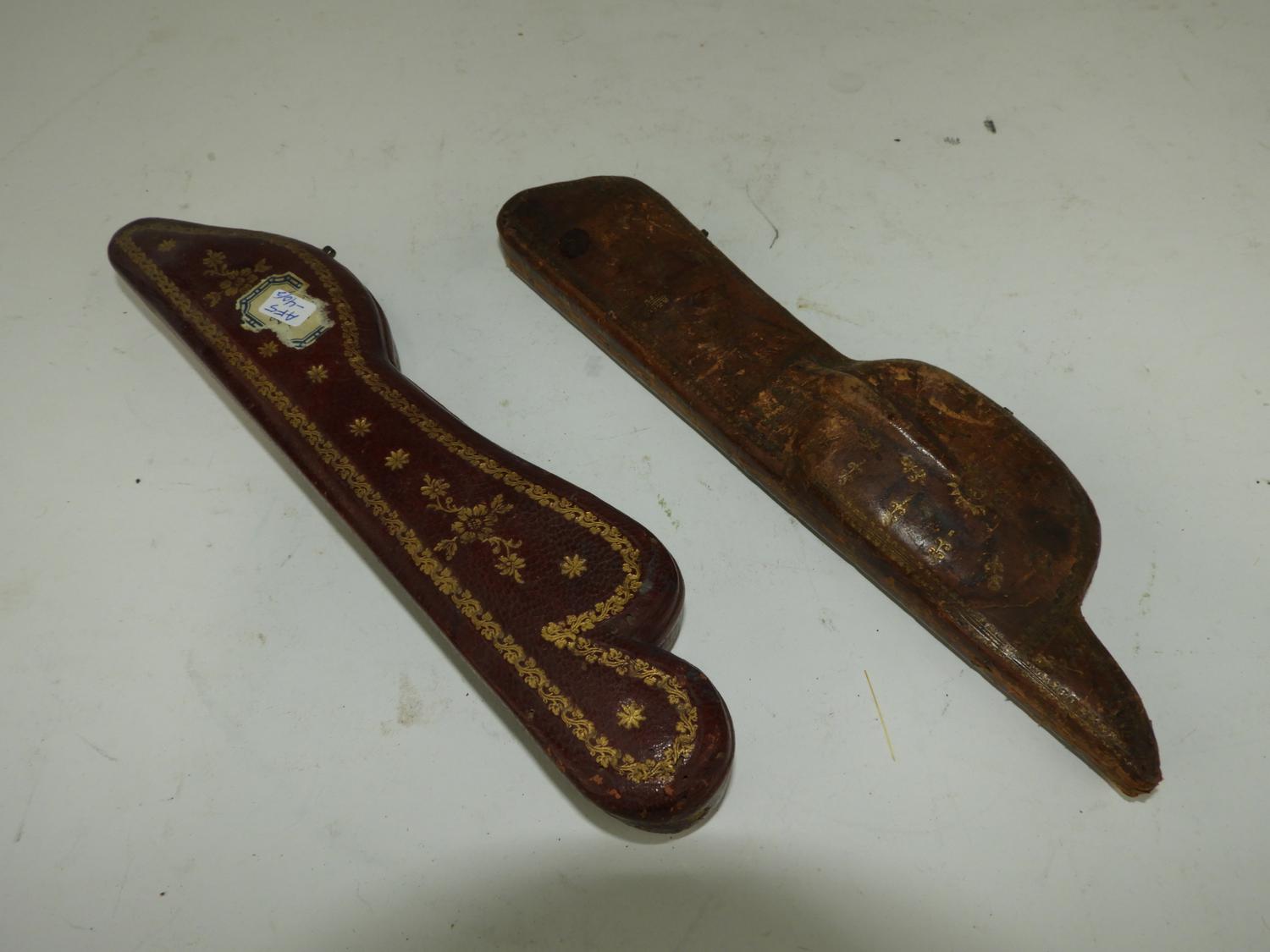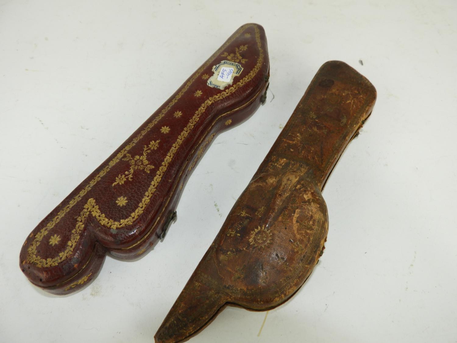 two 19th century gilt tooled leather cutlery cases, one has remaining contents