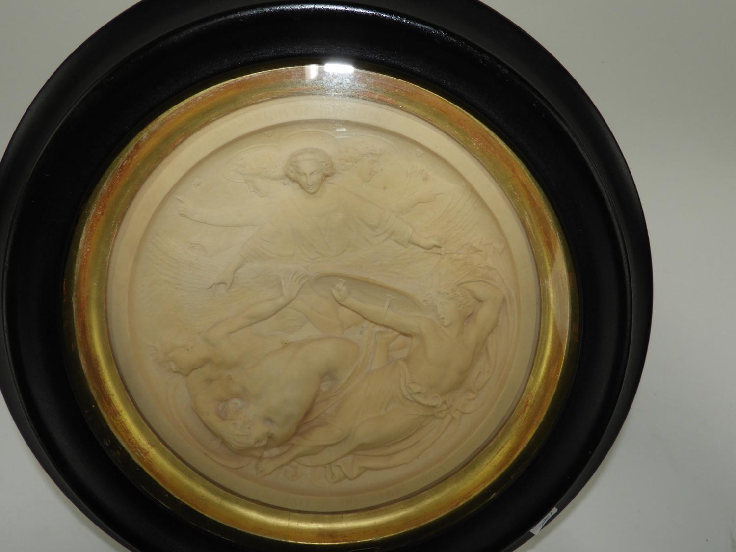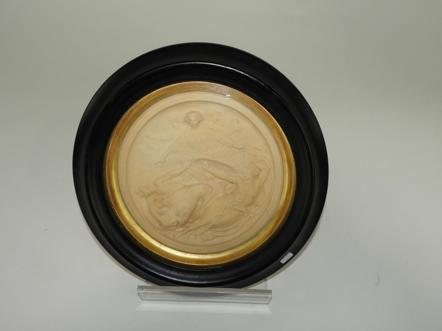 after robert jefferson, framed plaque, "the fall of the rebel angels", dia 11 1/2"