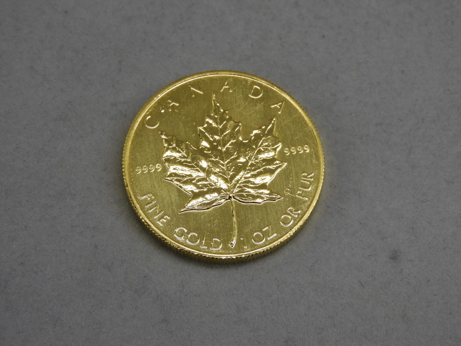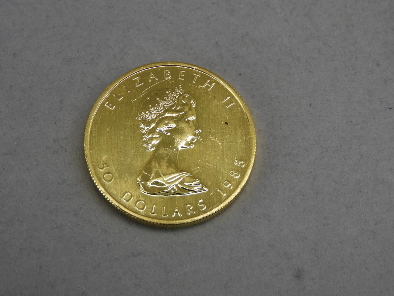 1985 canadian 1 oz maple leaf 999.9 fine $50 gold coin