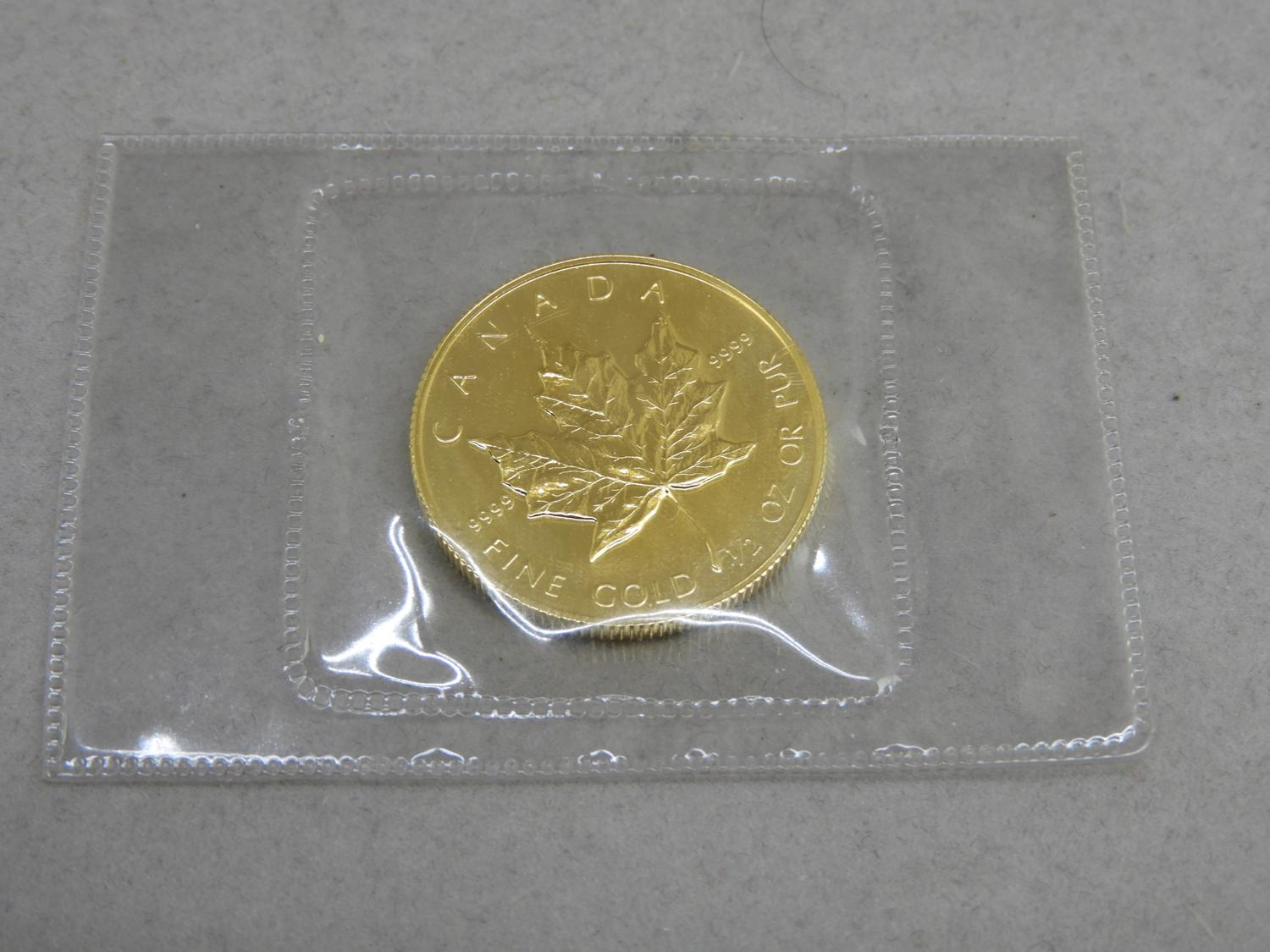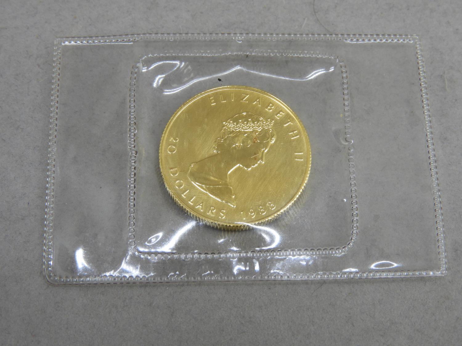 canadian 1988 1/2 oz maple leaf 999.9 fine gold $20 gold coin