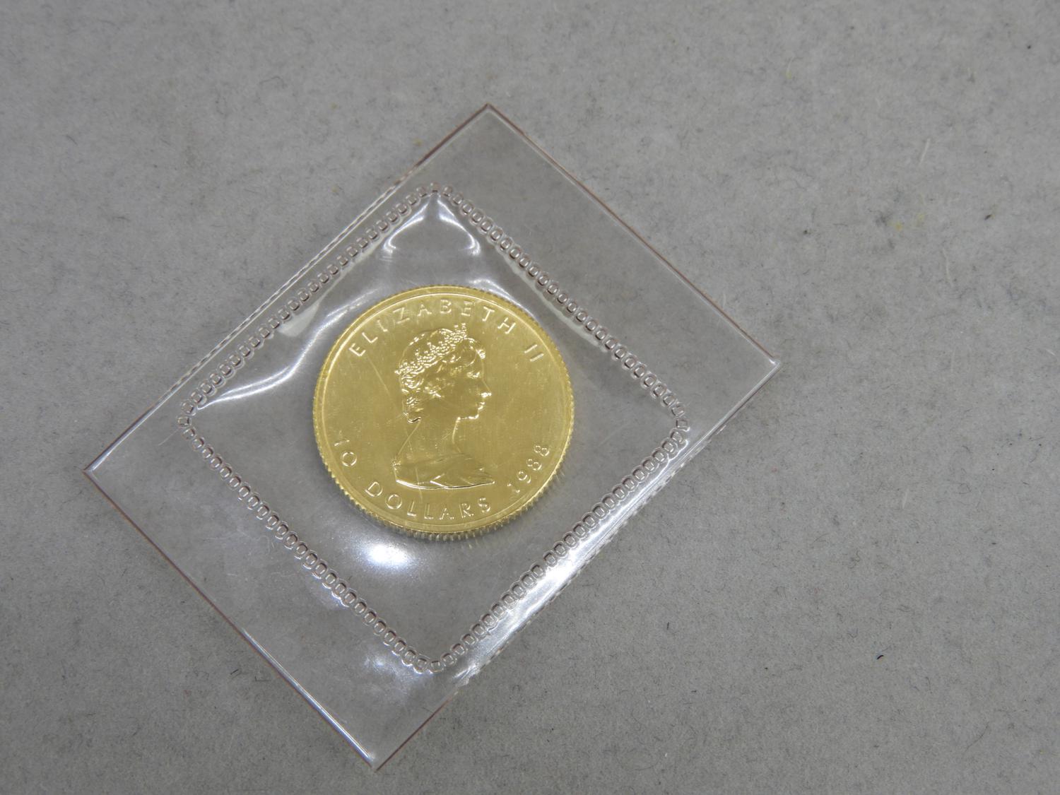 1988 canada 1/4 oz maple leaf 999.9 fine gold $10 gold coin