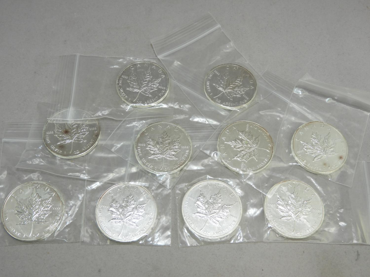 10 canadian 1 oz maple leaf 999 fine silver coins