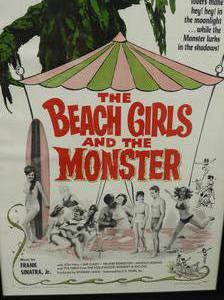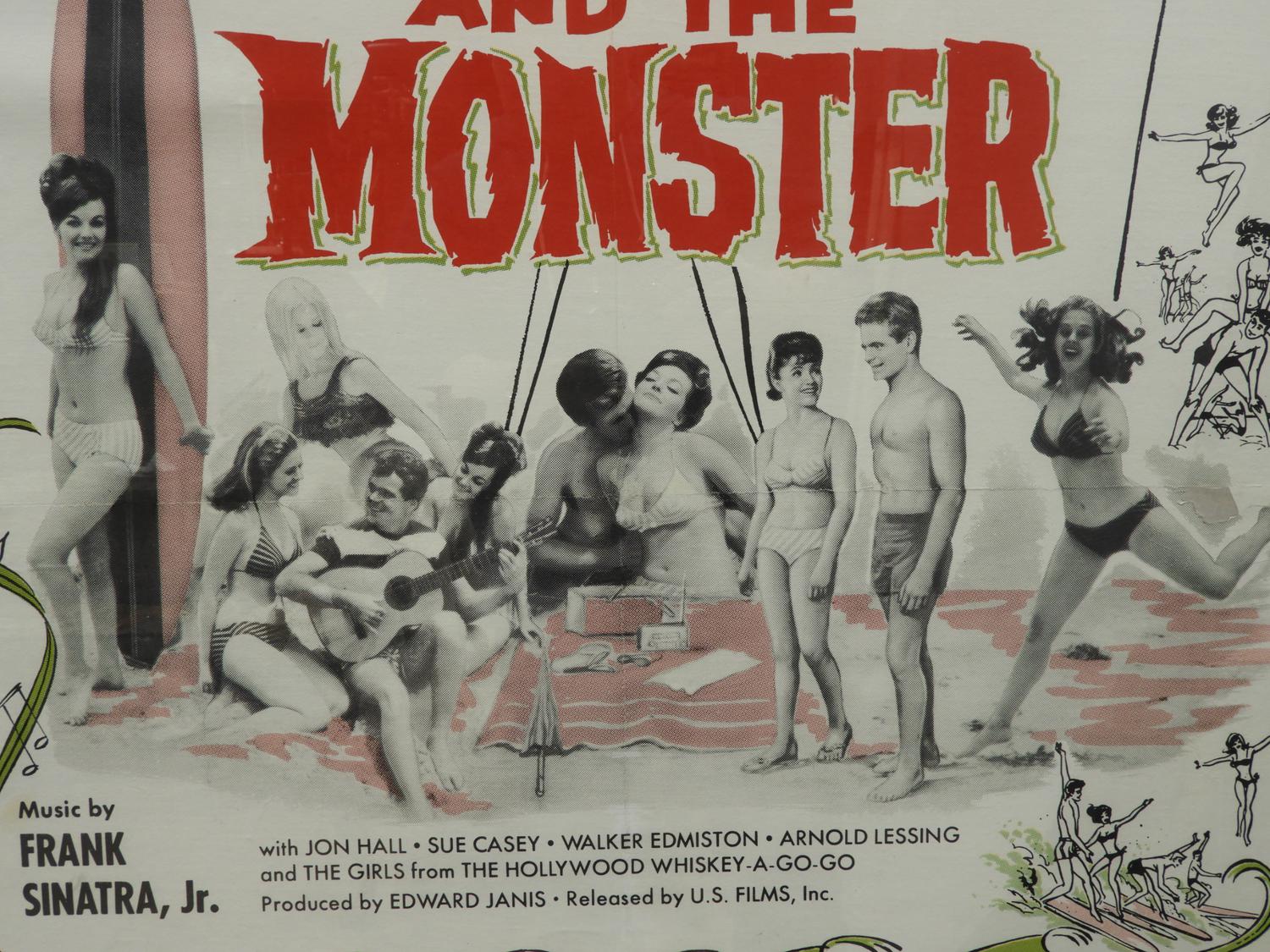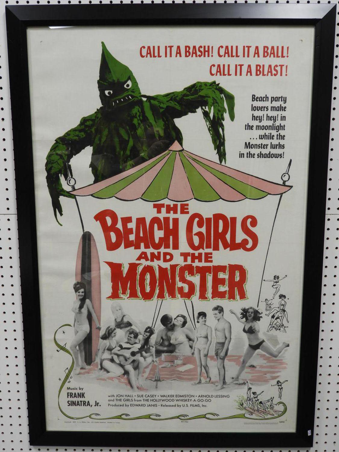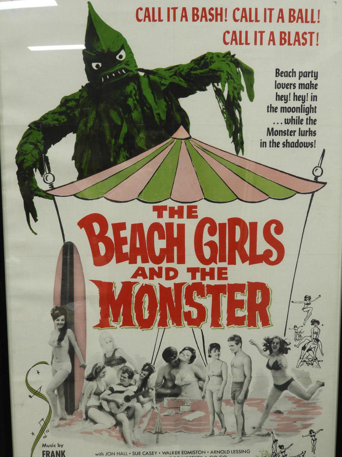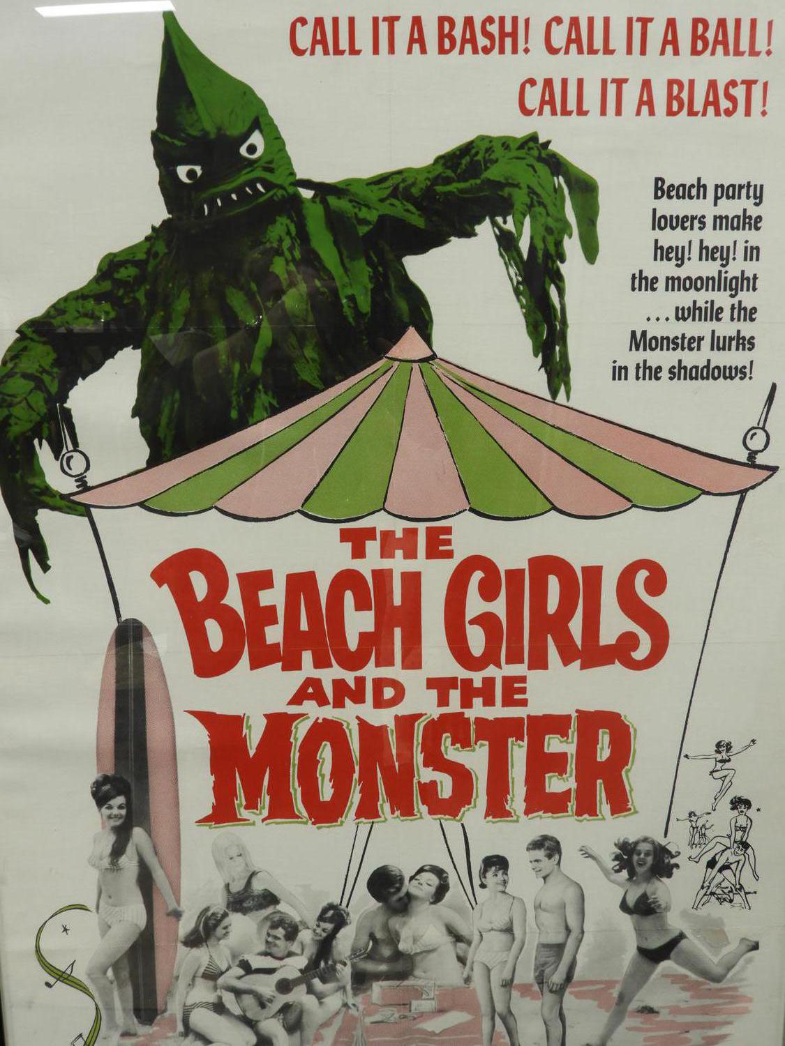 beach girls and the monster framed one sheet movie poster on linen, 27" x 41"