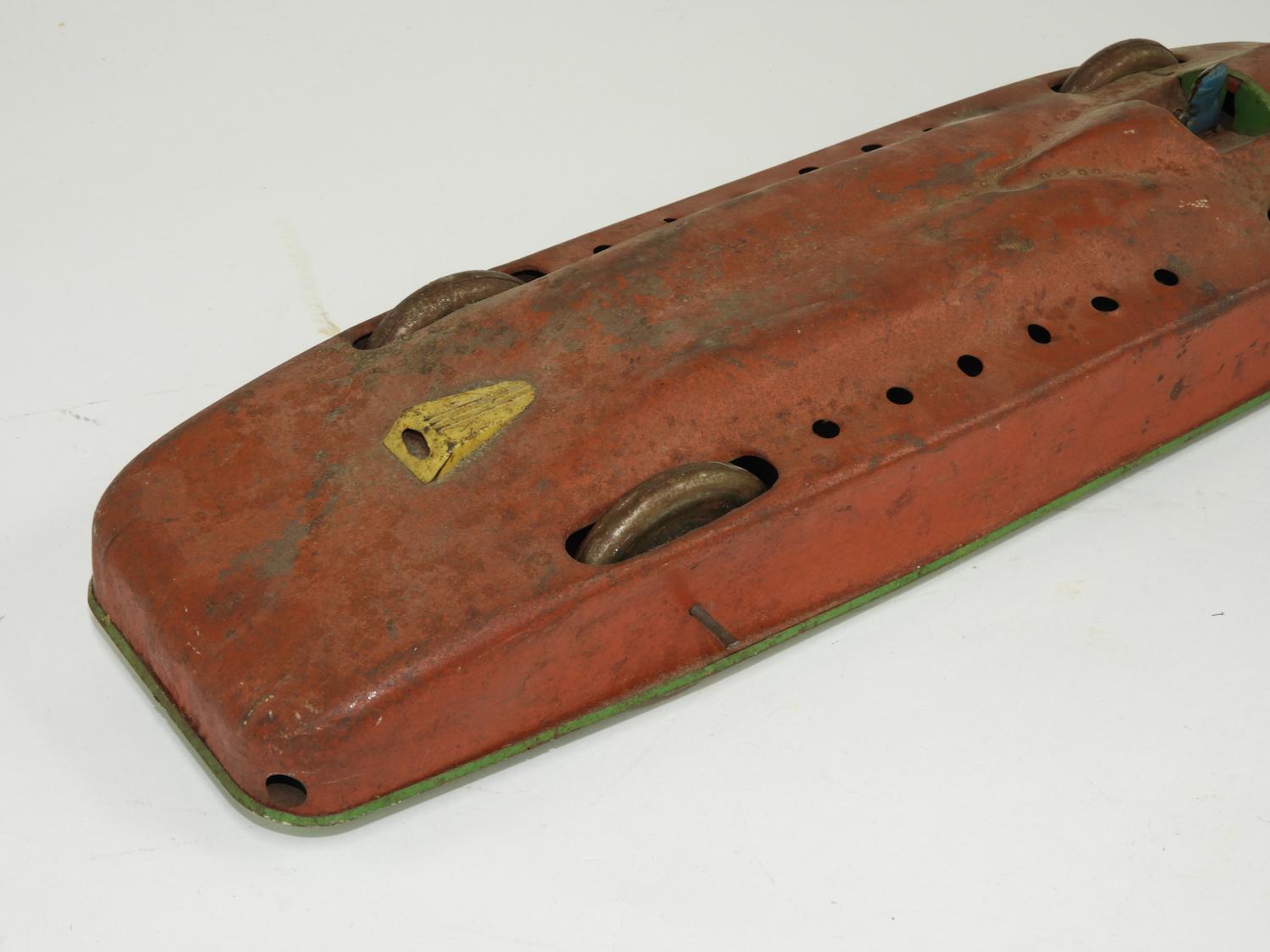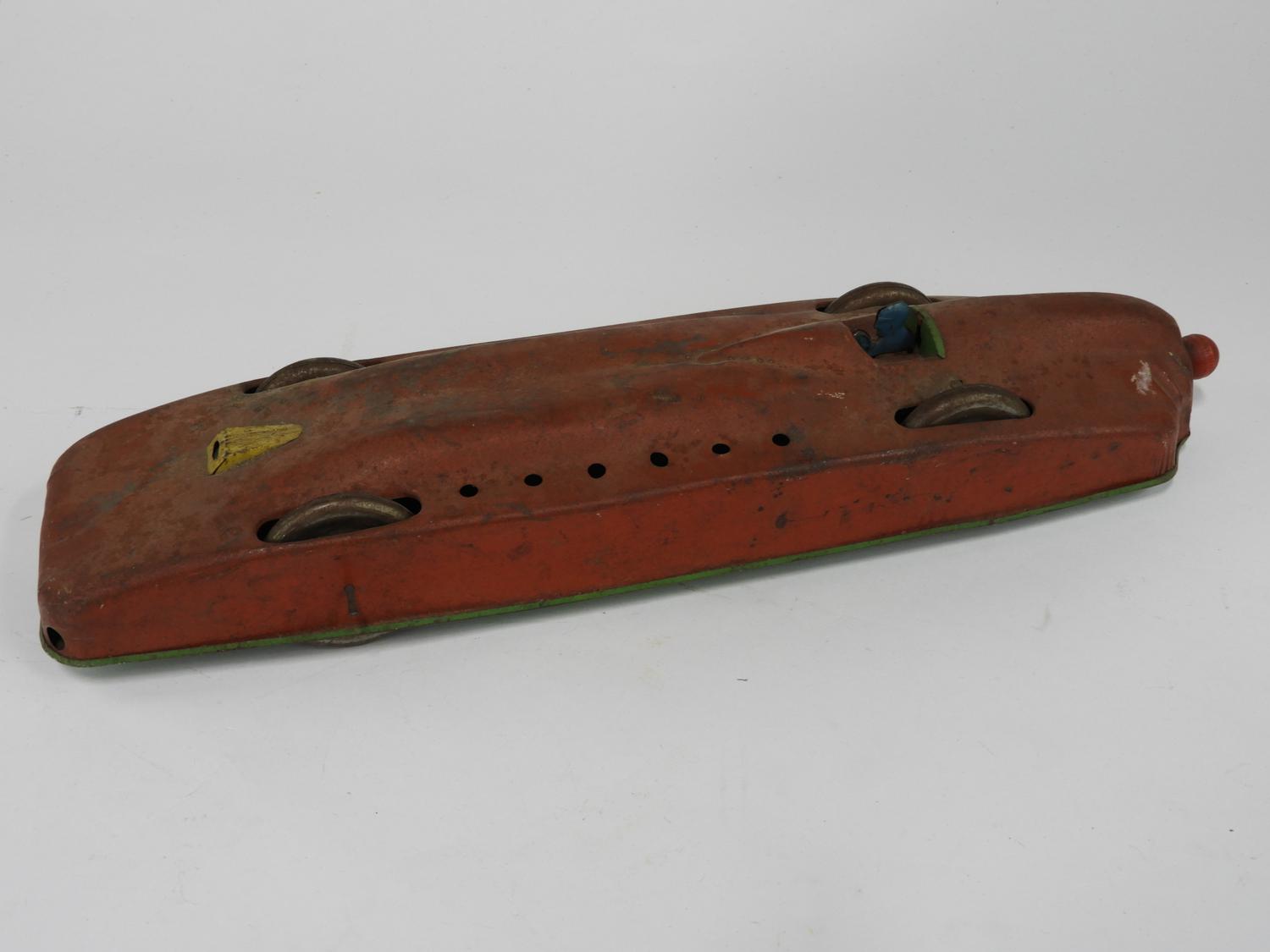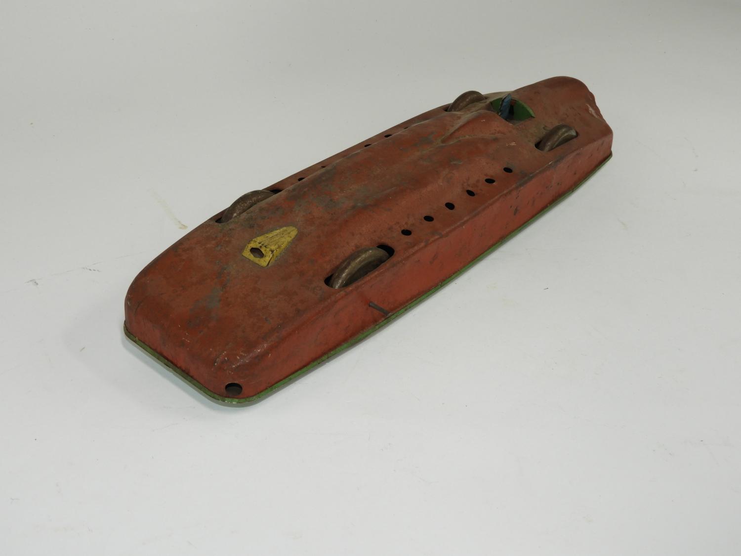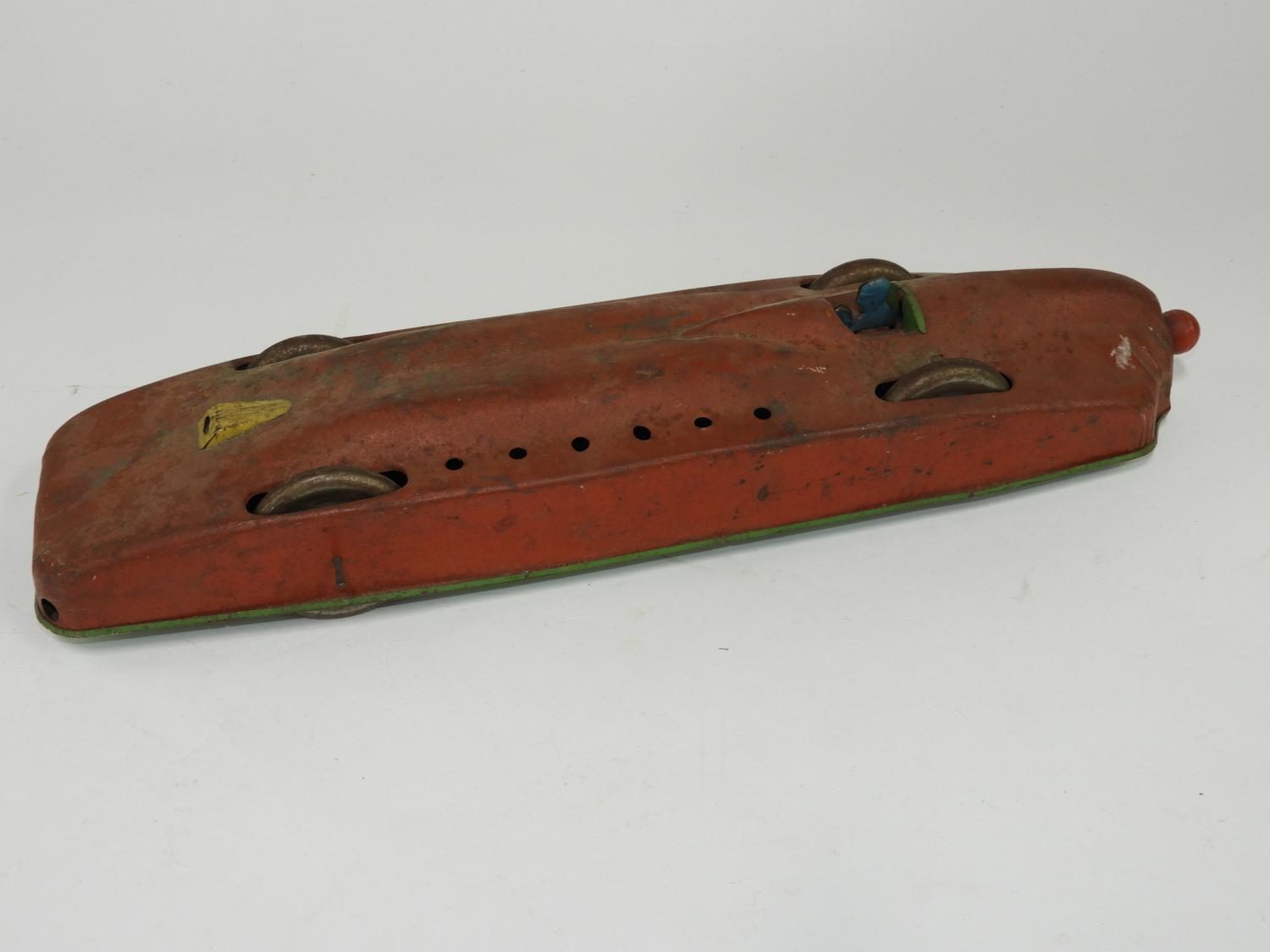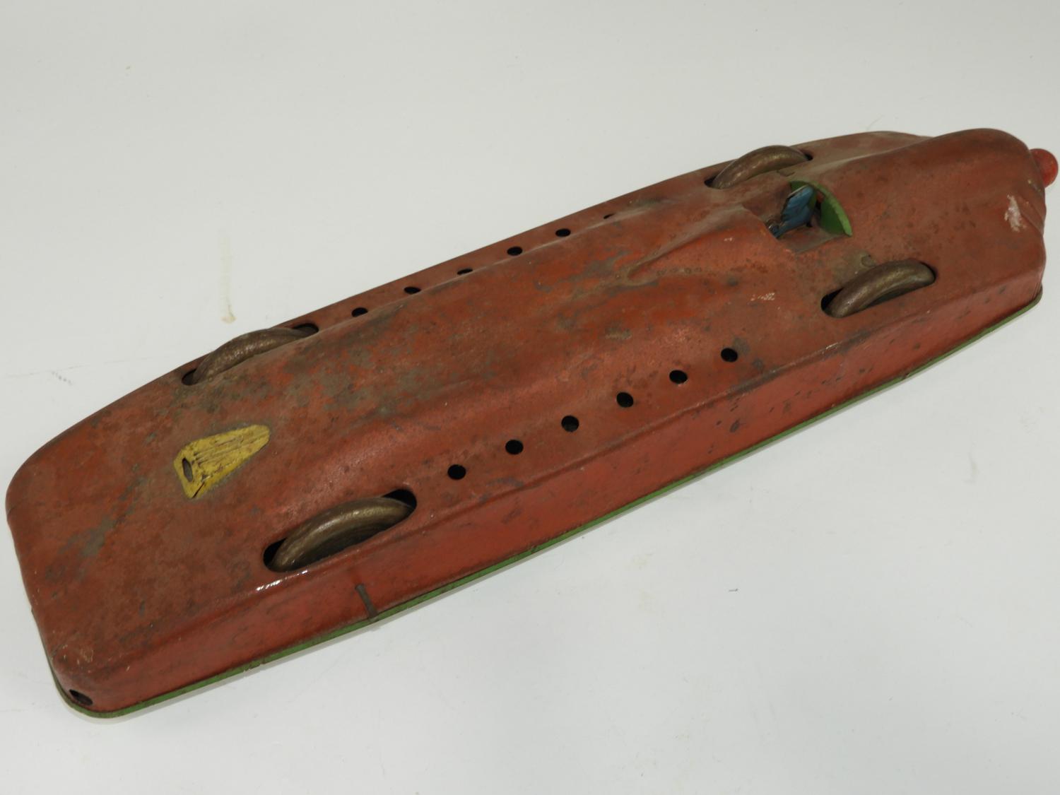 gerneral toy product, made in canada, tin screw wind race car, length 21"