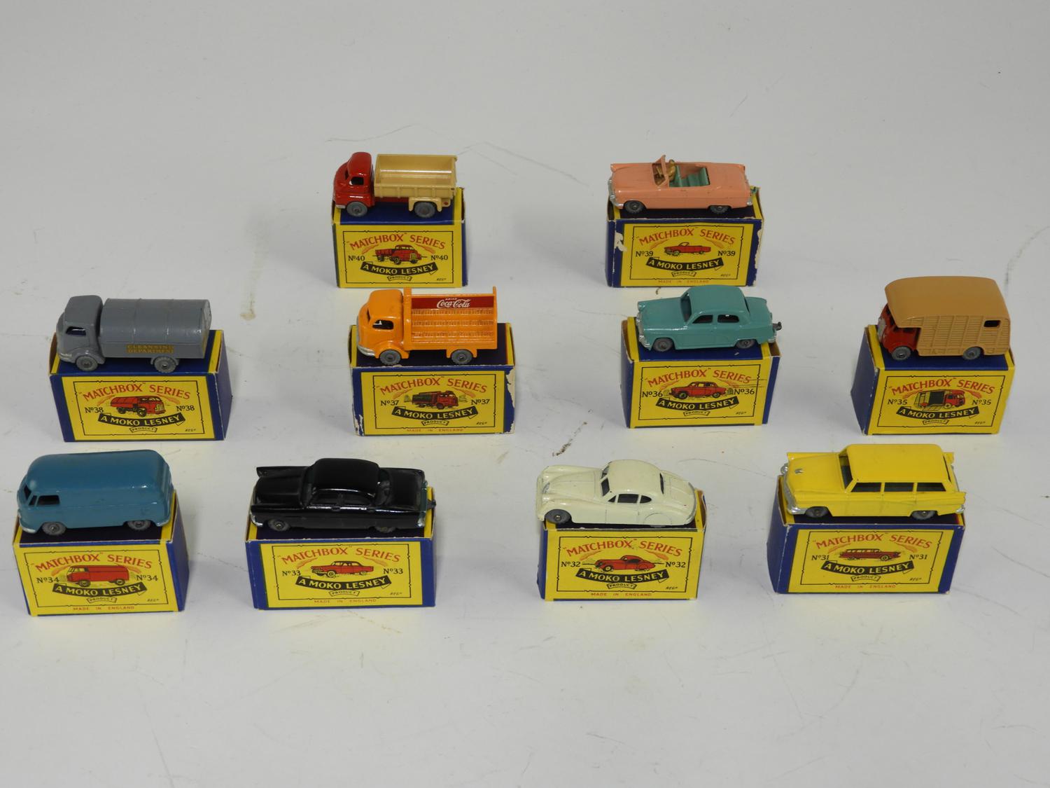 10 lesney matchbox cars in boxes, 31, 32, 33, 34, 35, 36, 37, 38, 39, 40