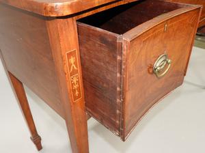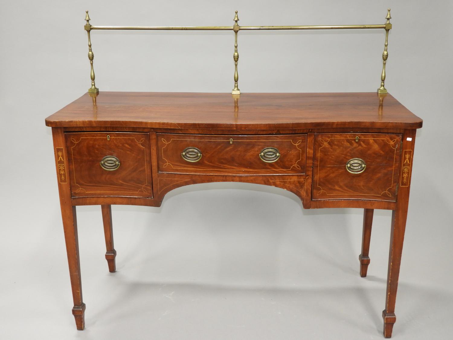 george iii style inlaid mahogany serpentine sideboard, 49" x 52" 22"