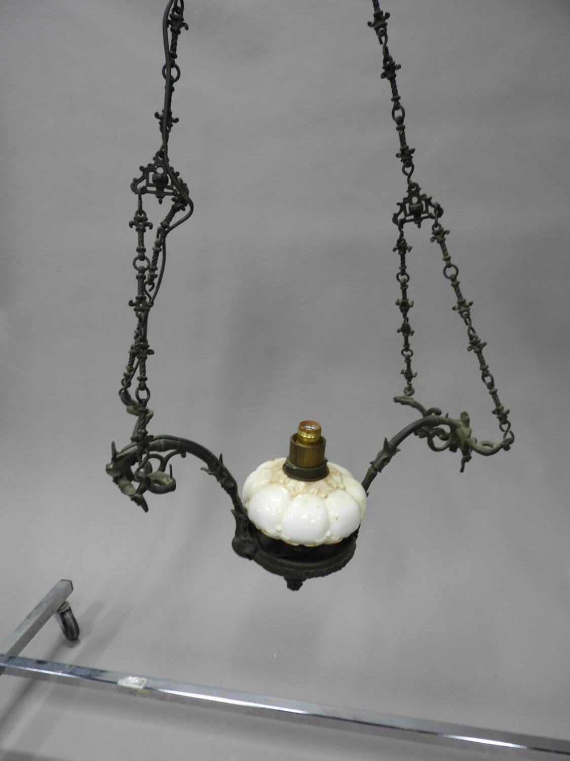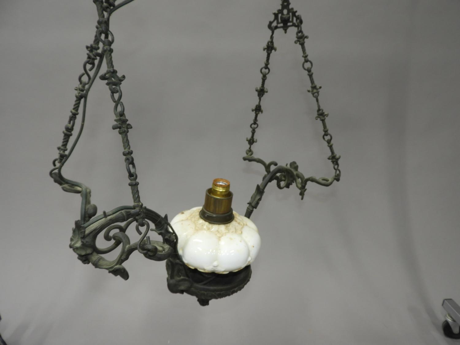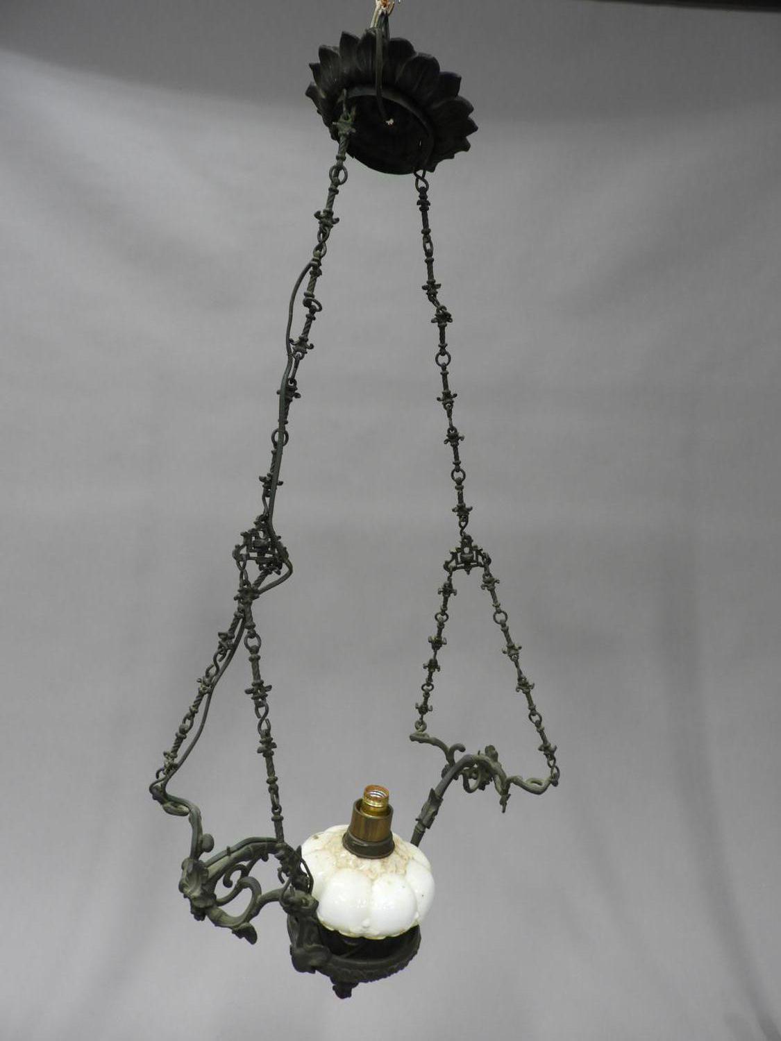 cast metal hanging fluid lamp, electrified, 42" x 29"
