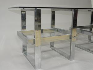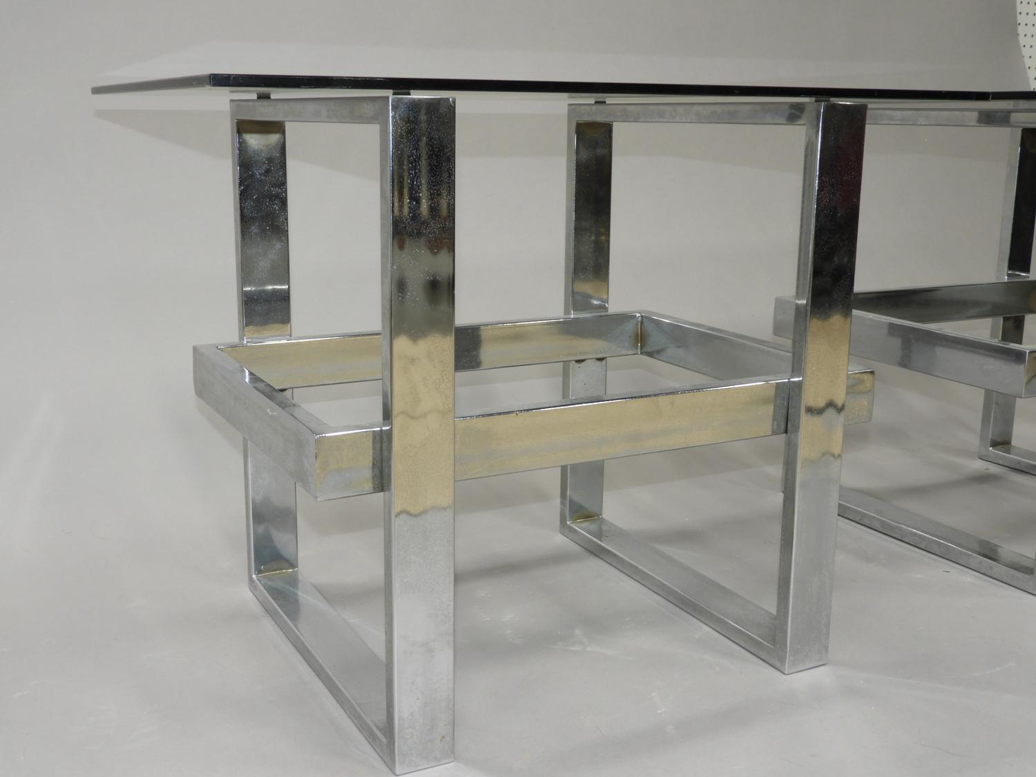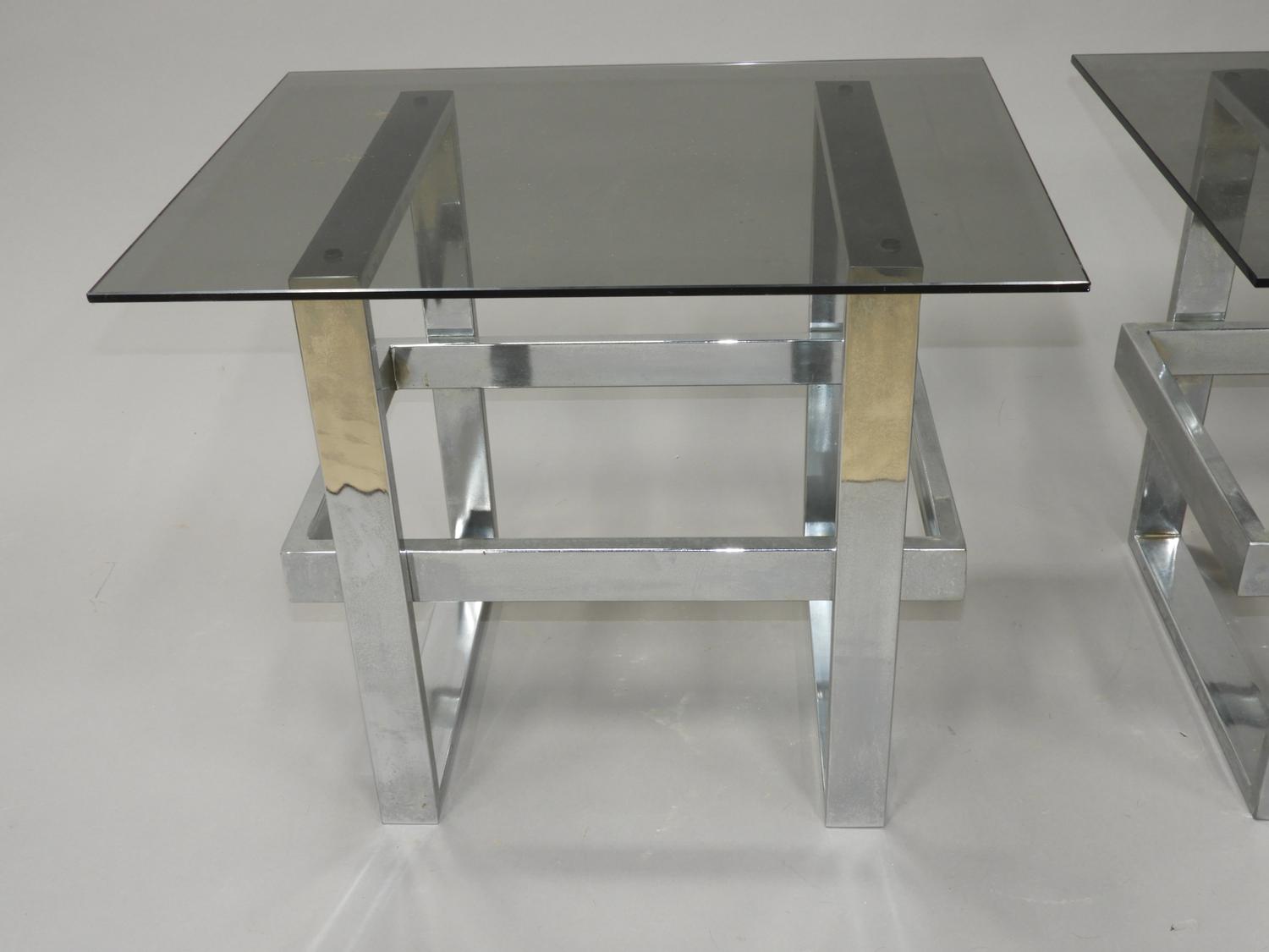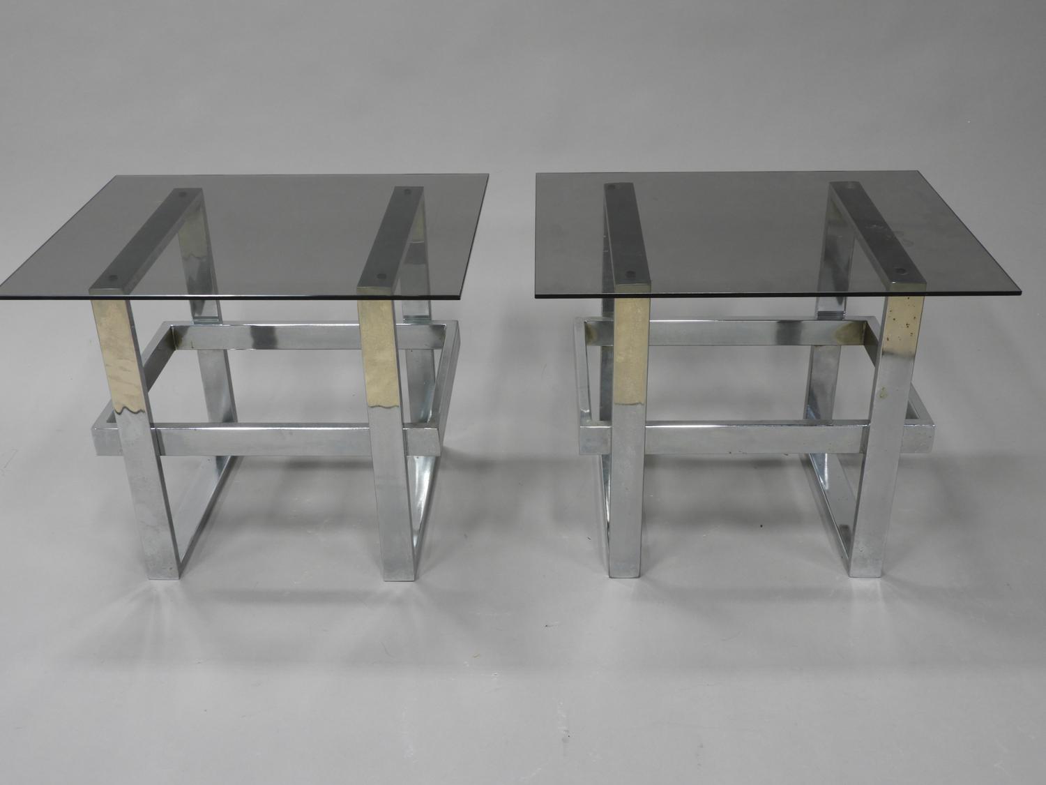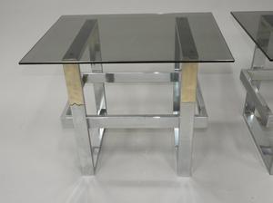pair of chrome and glass side tables, 20" x 26" x 20"