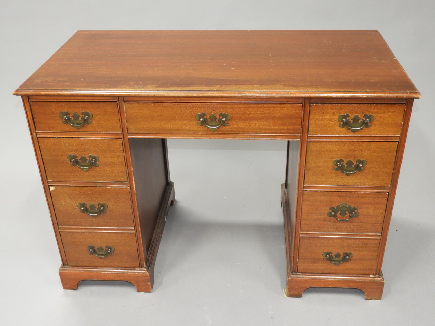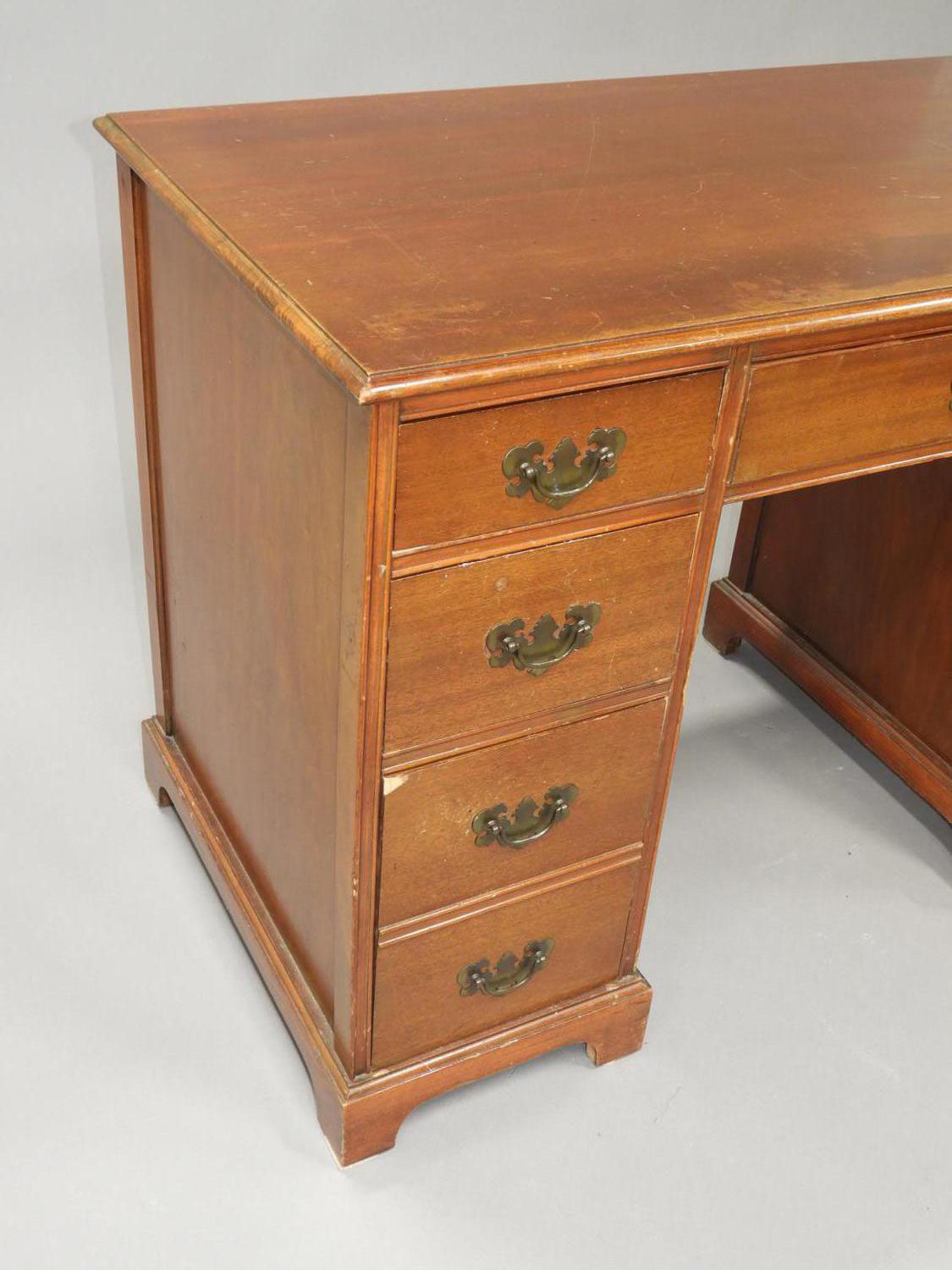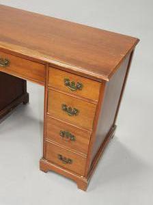 mahogany finish double pedestal desk, 30" x 44" x 23"