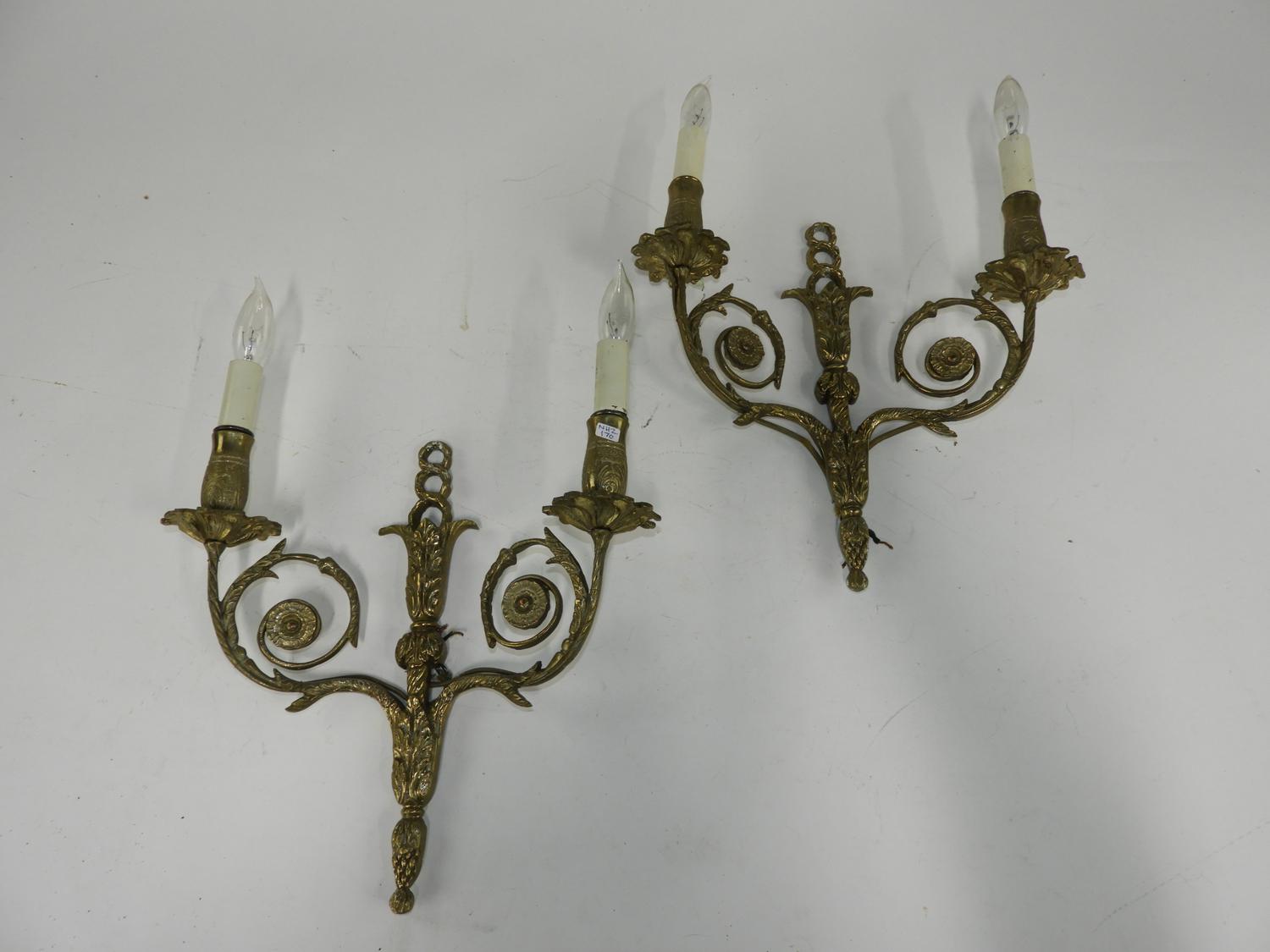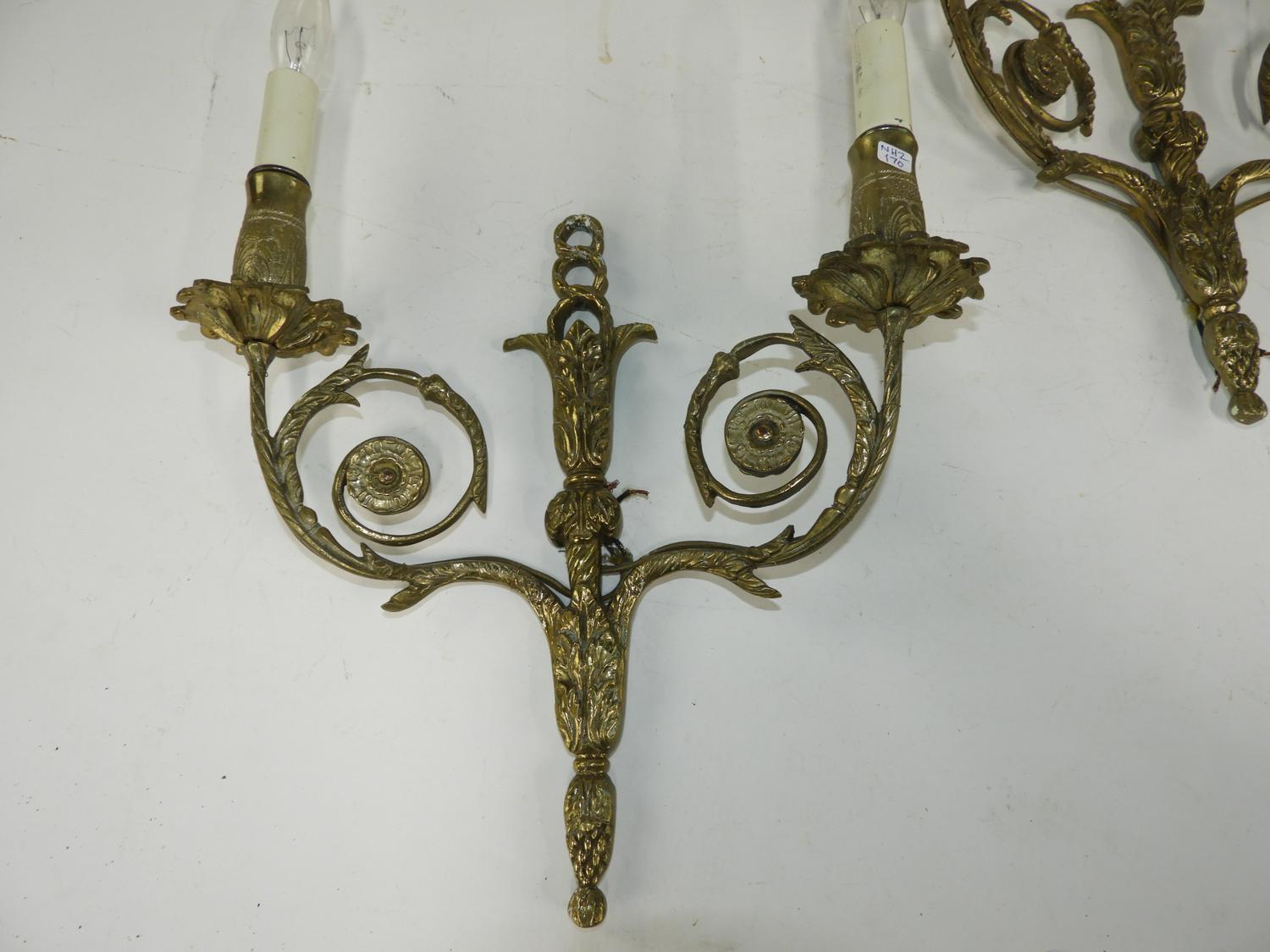 pair of electrified brass wall sconces, ht. 17"
