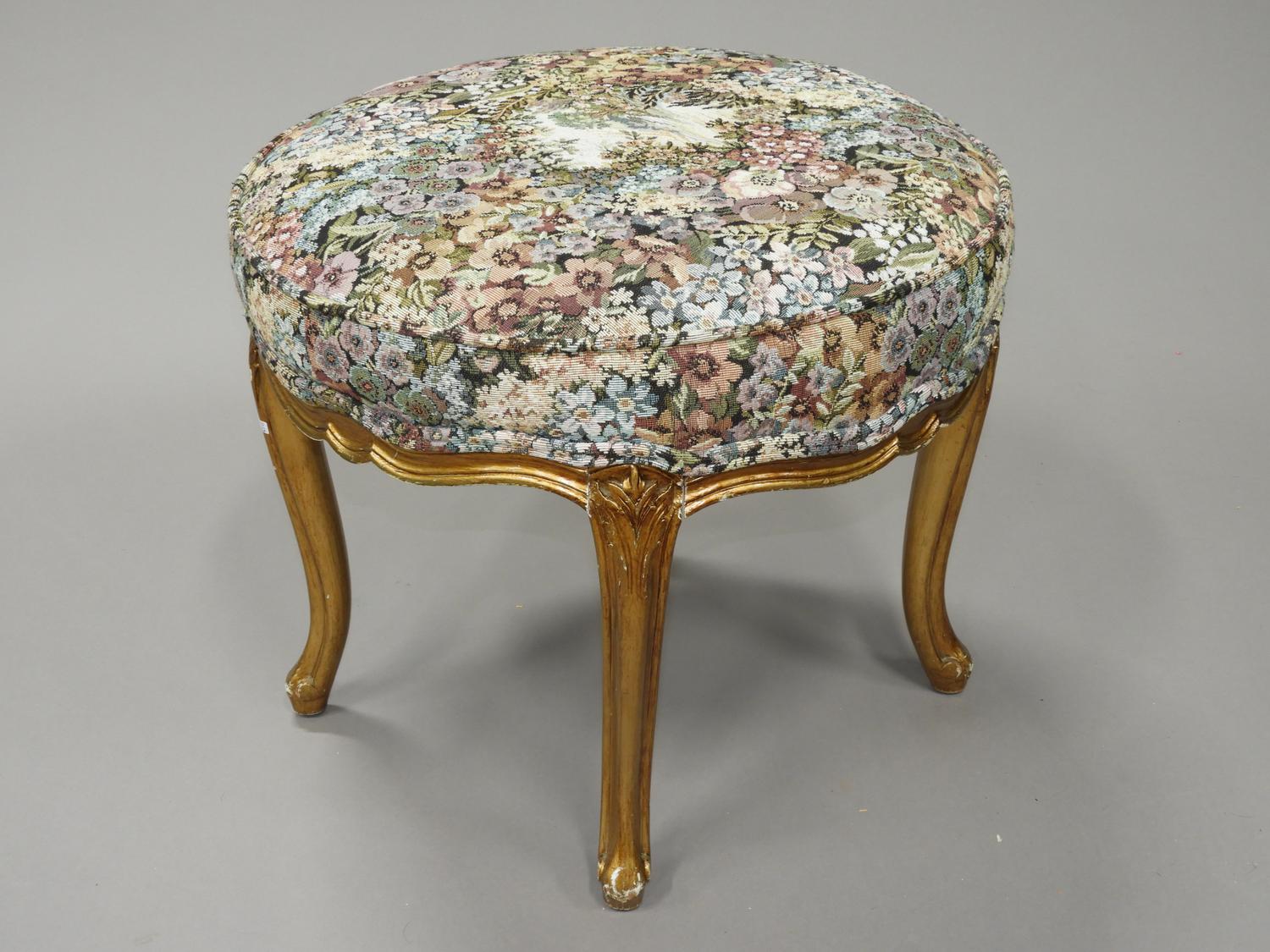 upholstered giltwood footstool, 18" x 20"