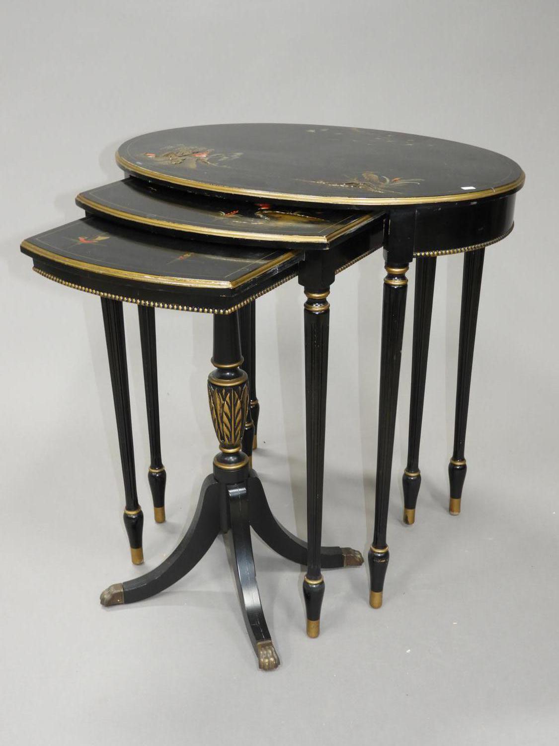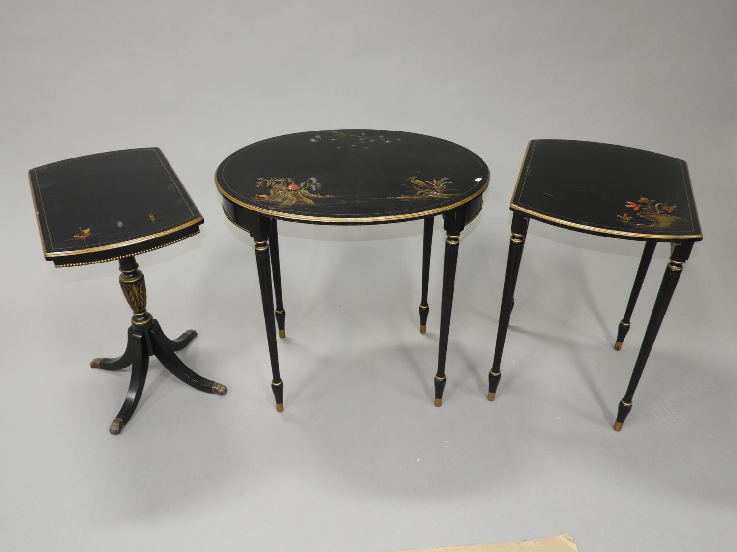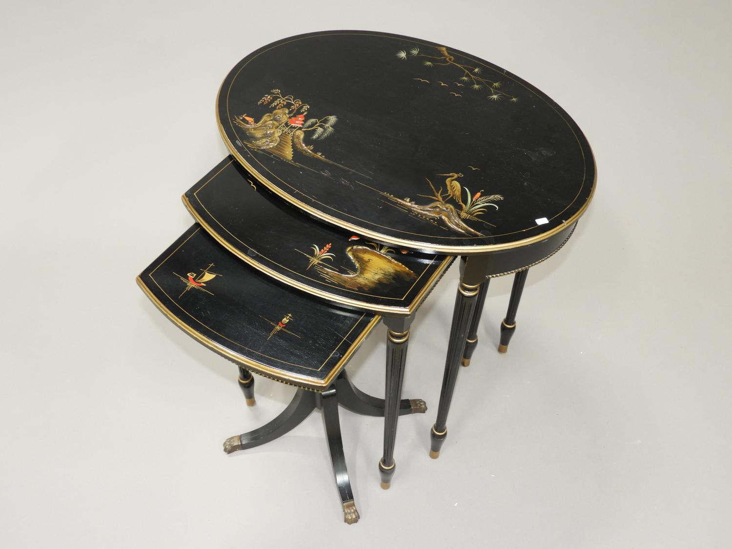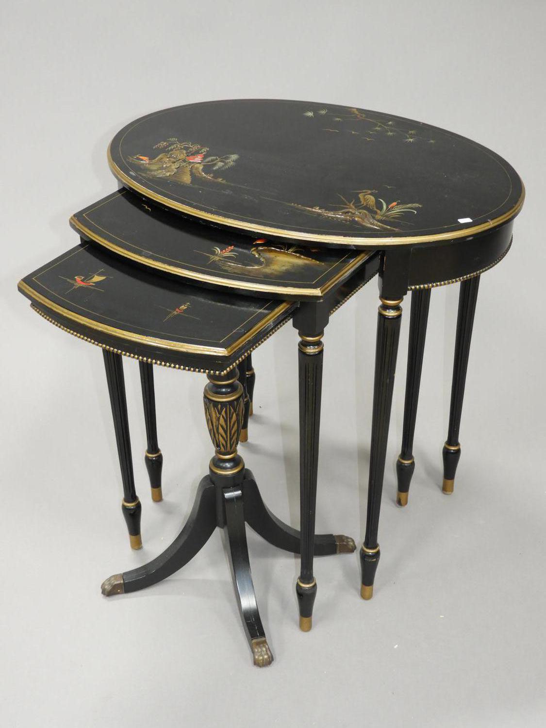 chinoiserie lacquered nest of three tables, 24" x 24" x 18"