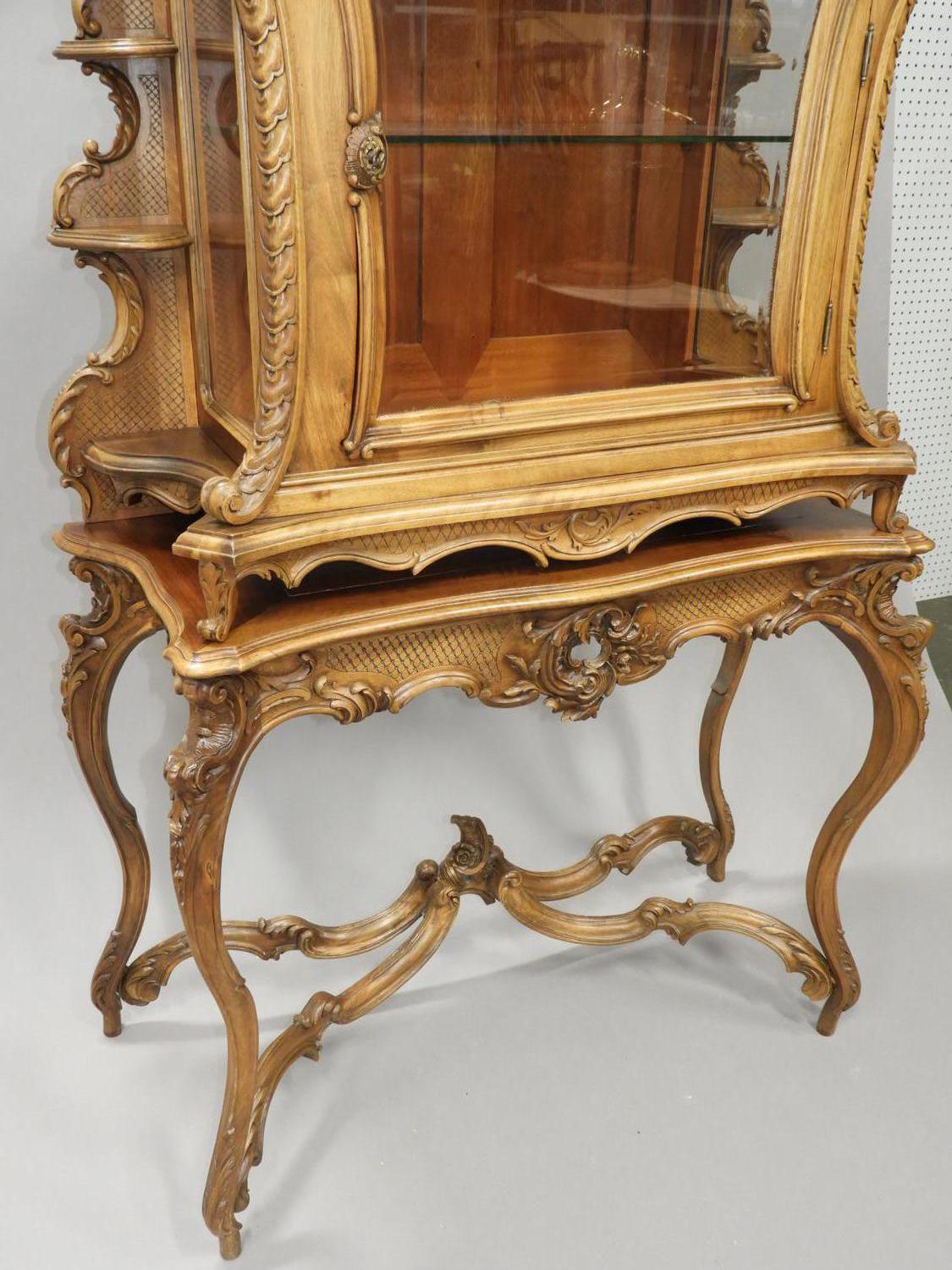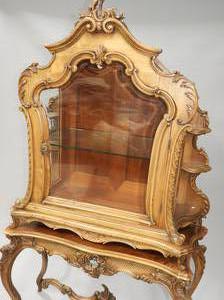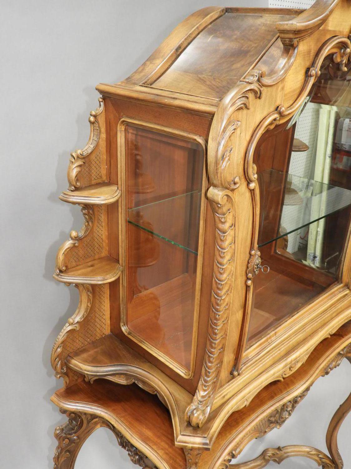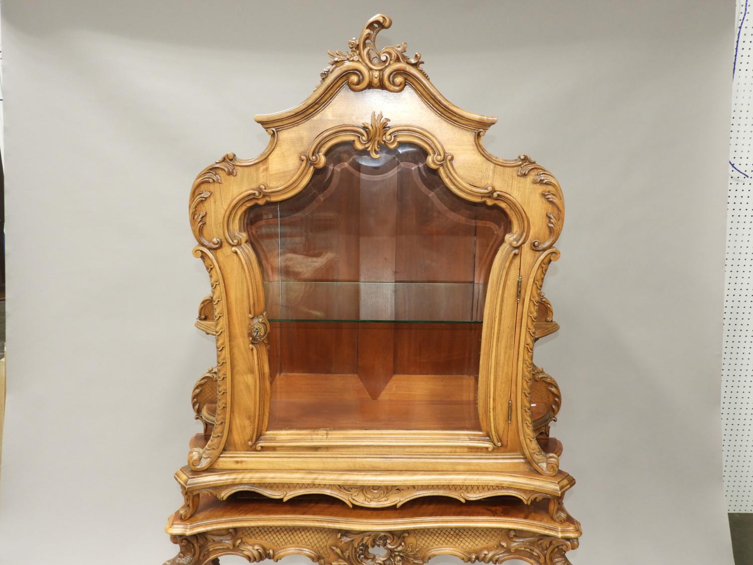 carved beechwood vitrine on stand, 76" x 44" x 19"