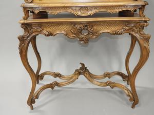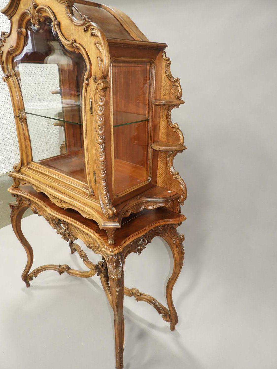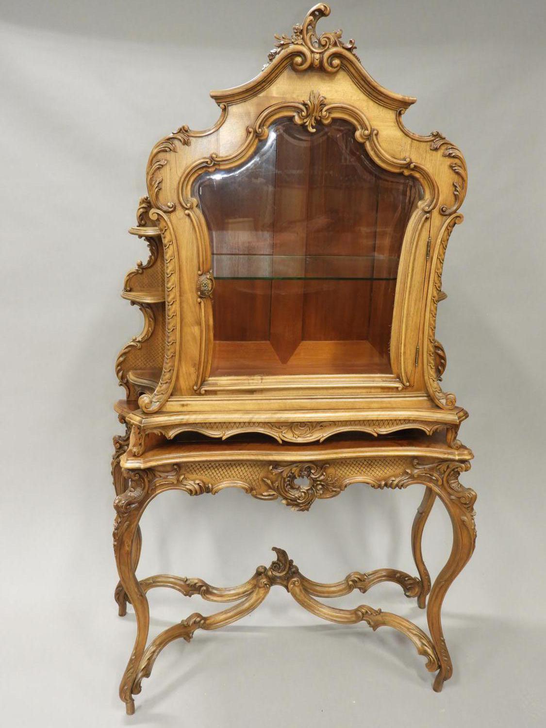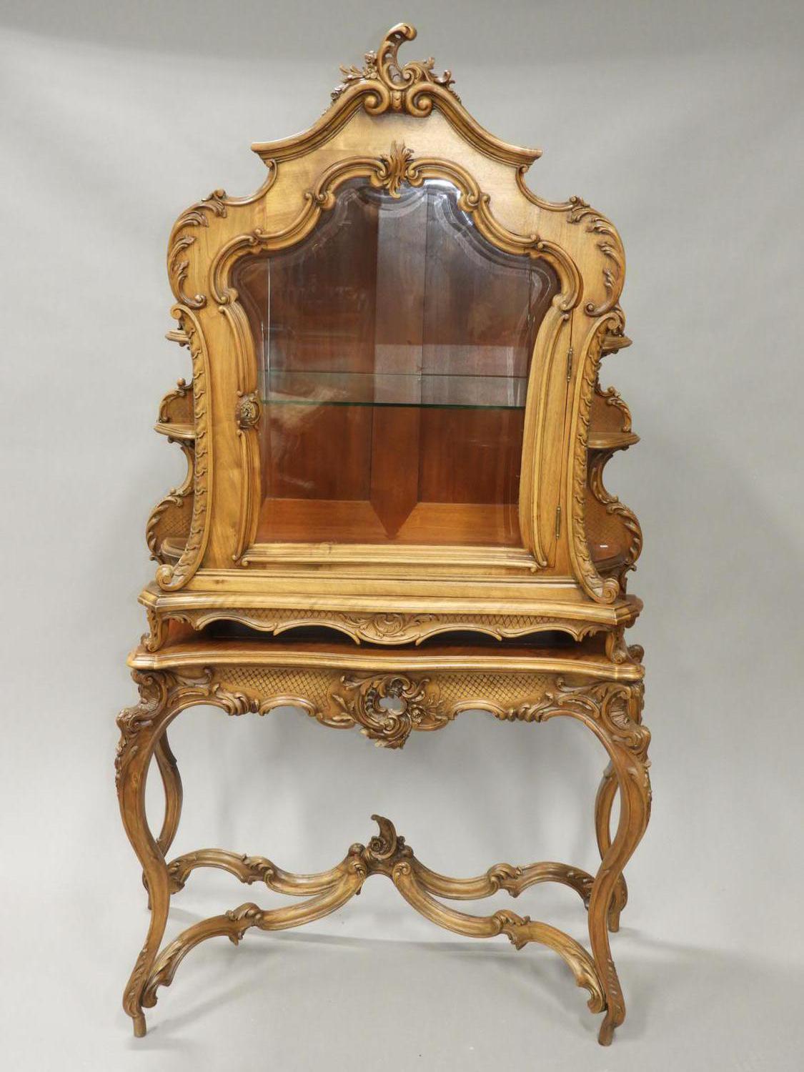 carved beechwood vitrine on stand, 76" x 44" x 19"