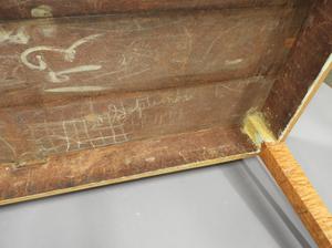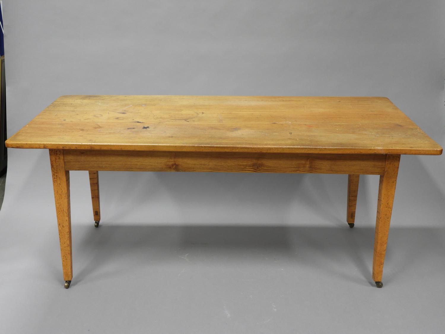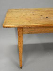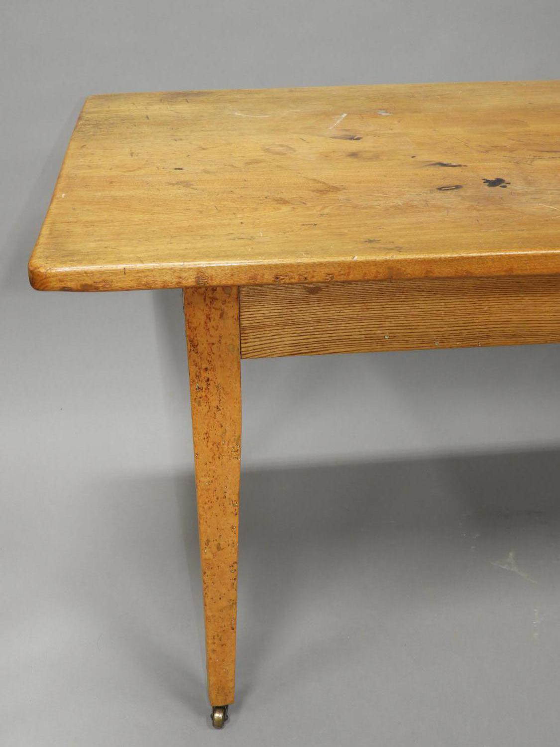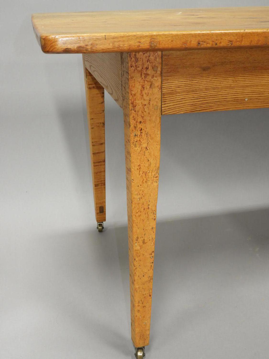 19th century pine and birds eye maple harvest table, 30" x 70" x 34"