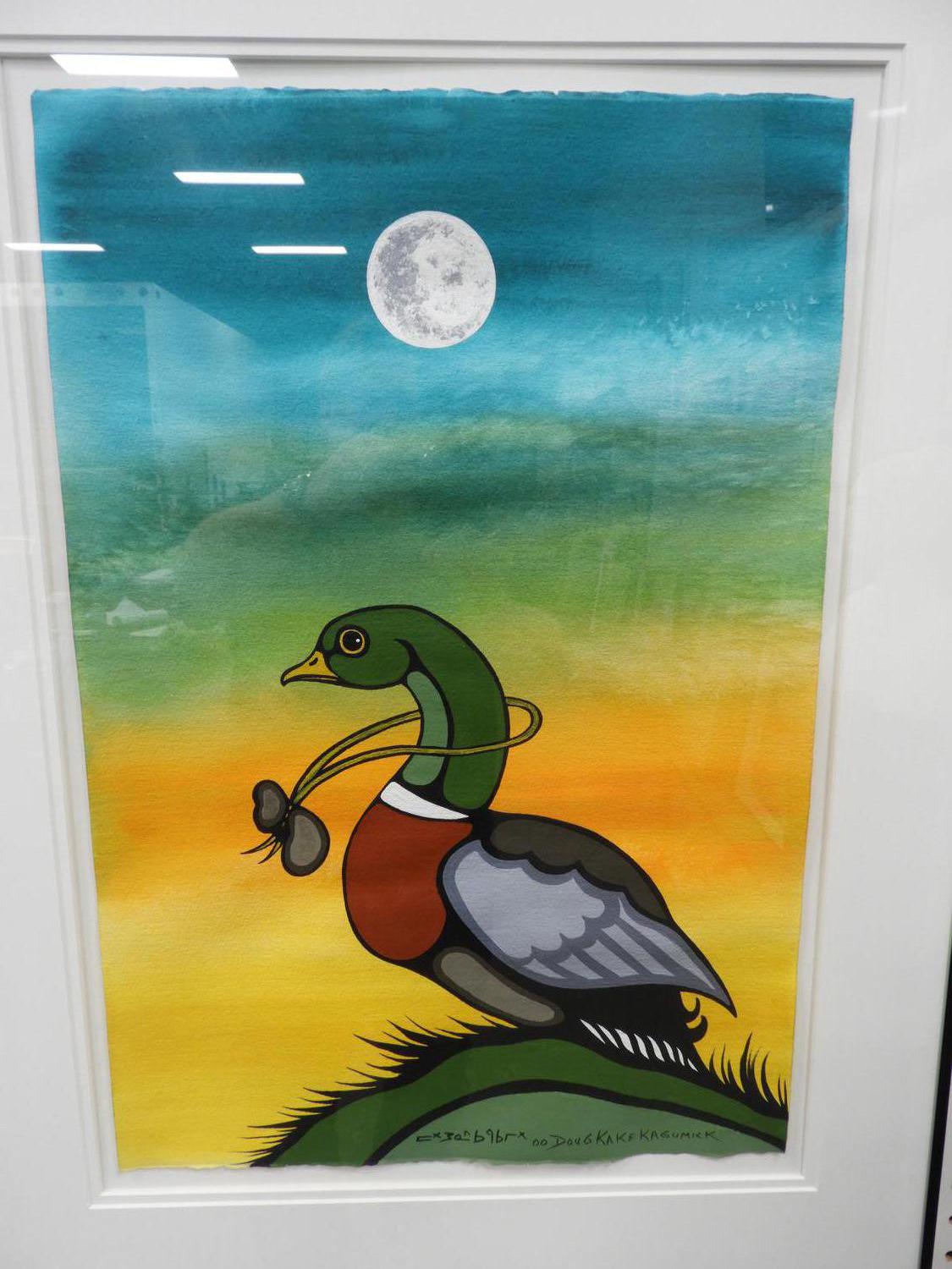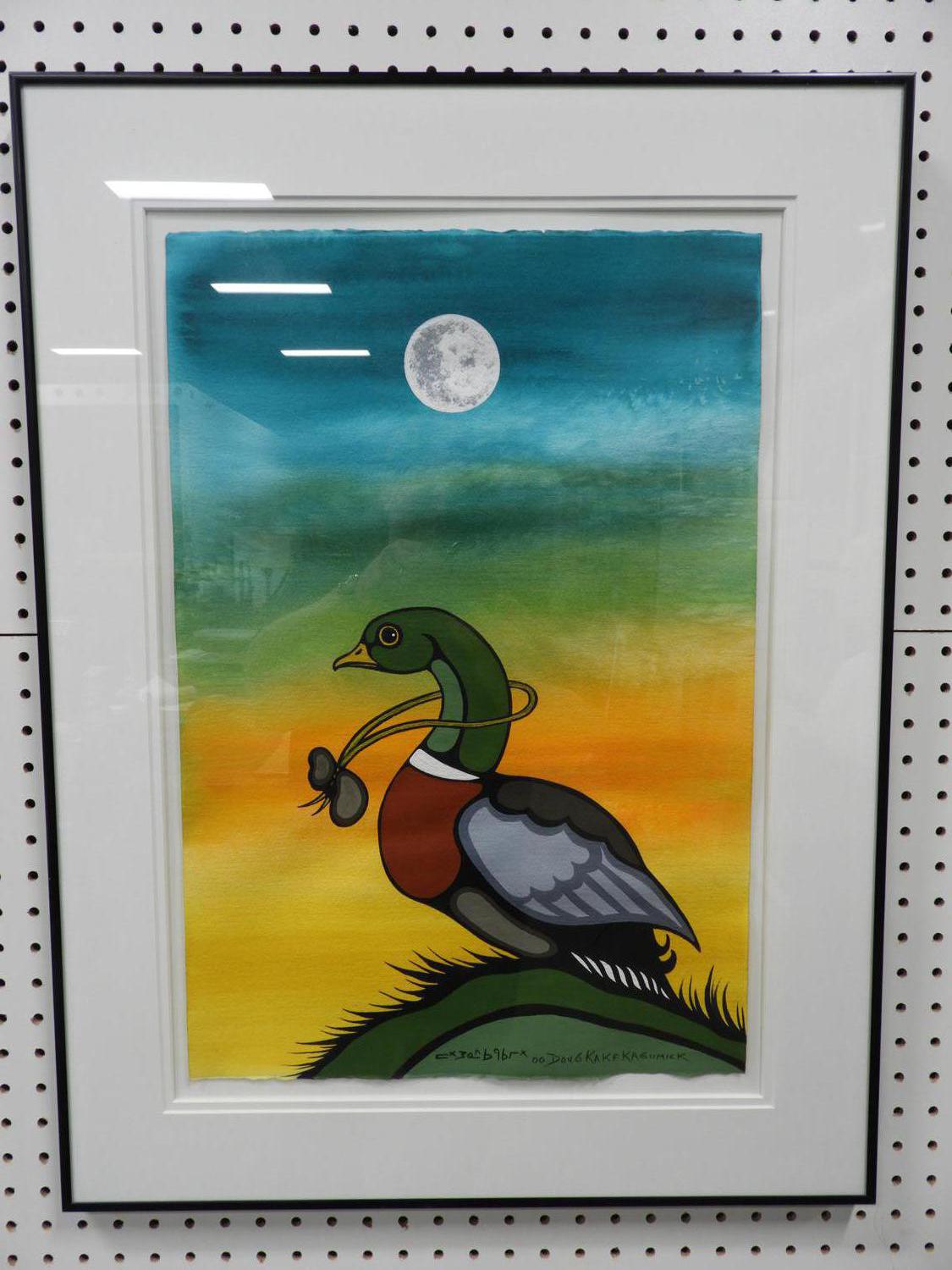 douglas kekekagumick (b. 1958), d.2000, acrylic on paper, 22" x 15", "untitled duck"