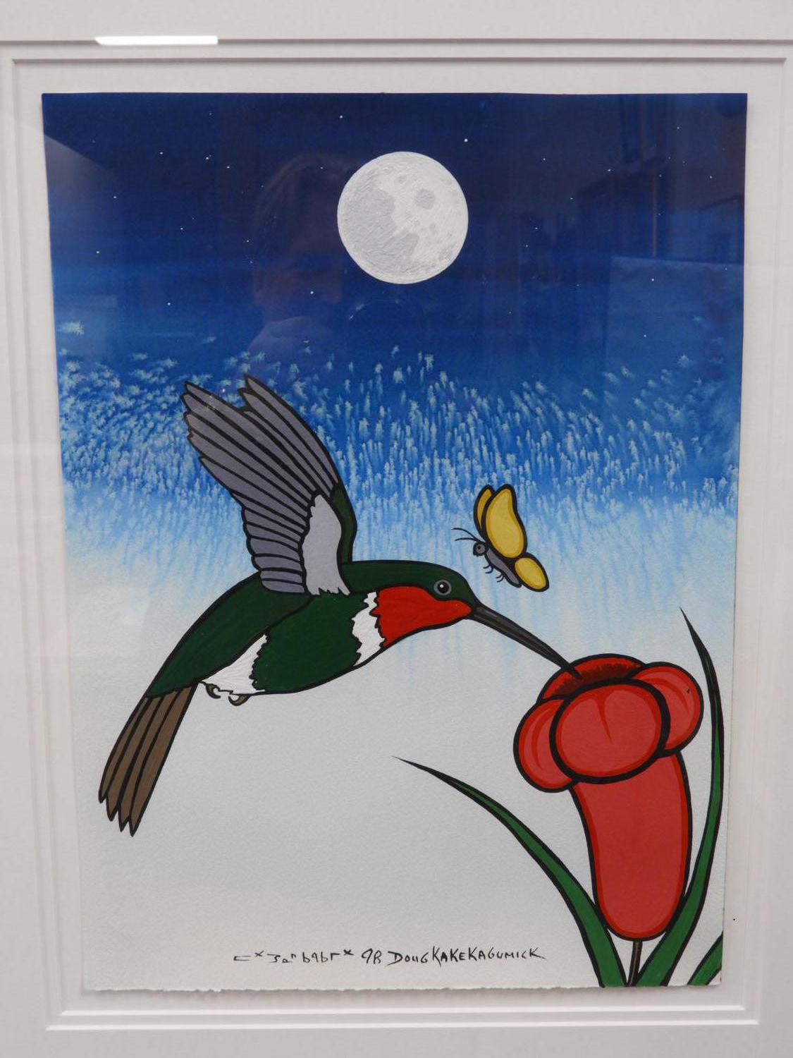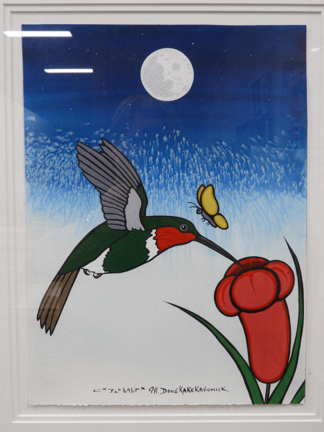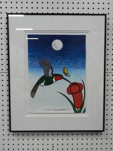 doug kekekagumick (b. 1958), acrylic on paper, d. 1998, "hummingbird moon"