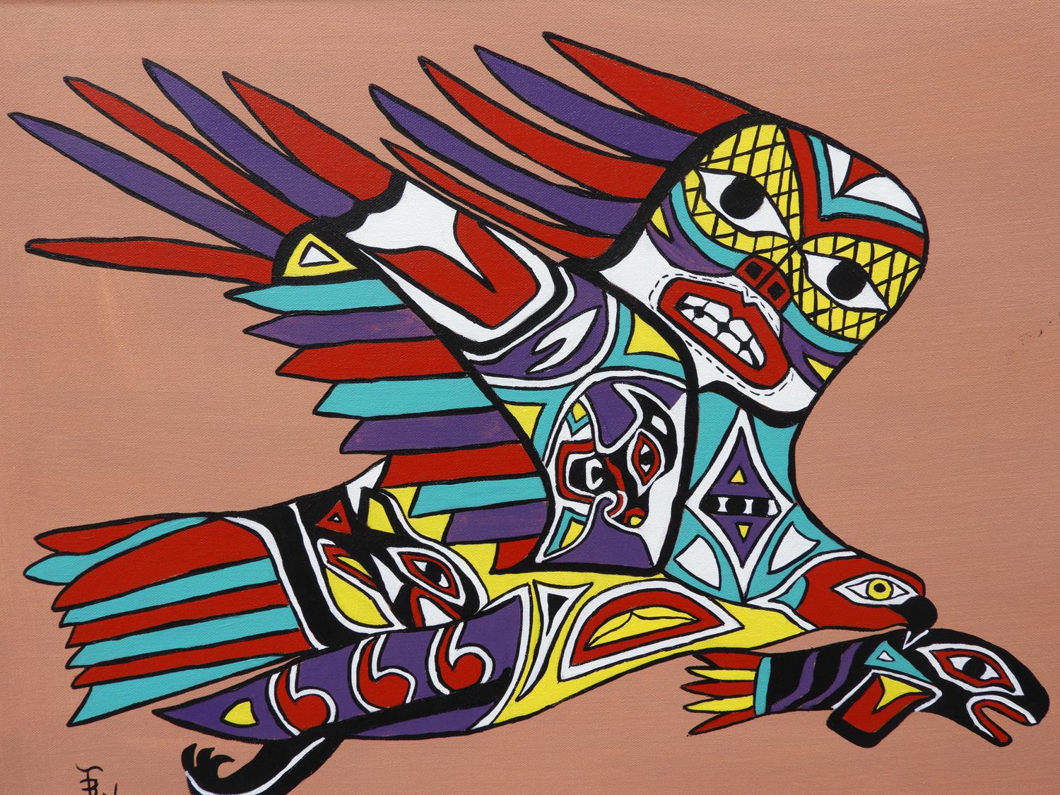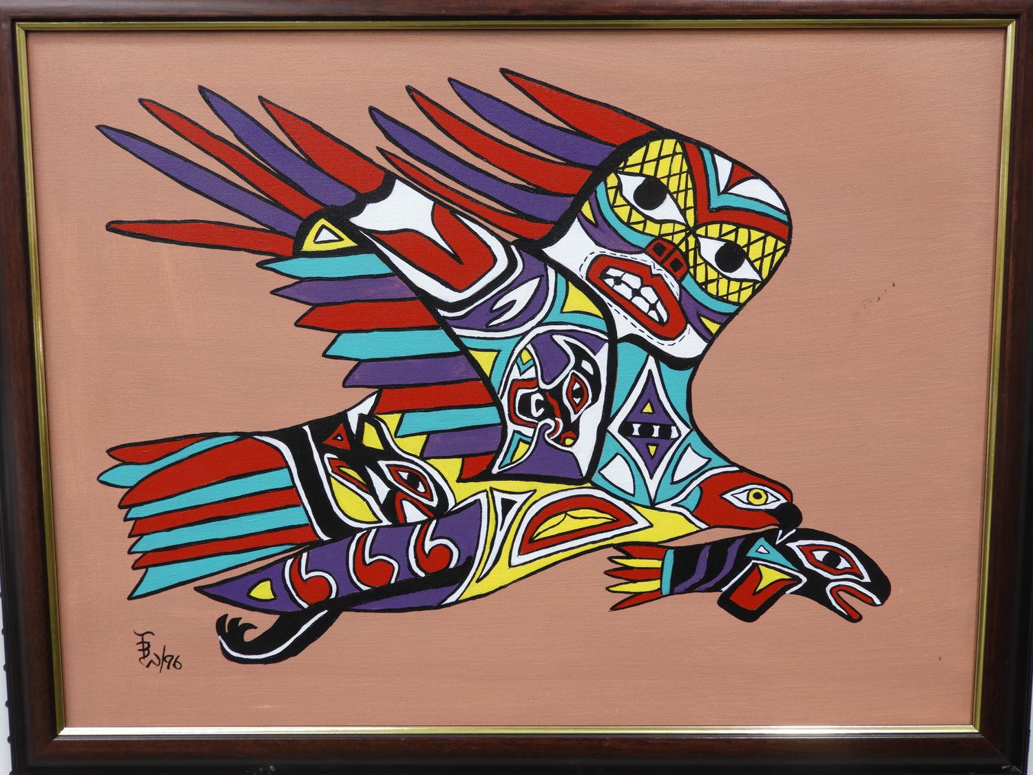 shannon v. thunderbird, d. 1997, acrylic on canvas, 18" x 24", "spirit eagle with fish"