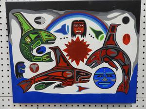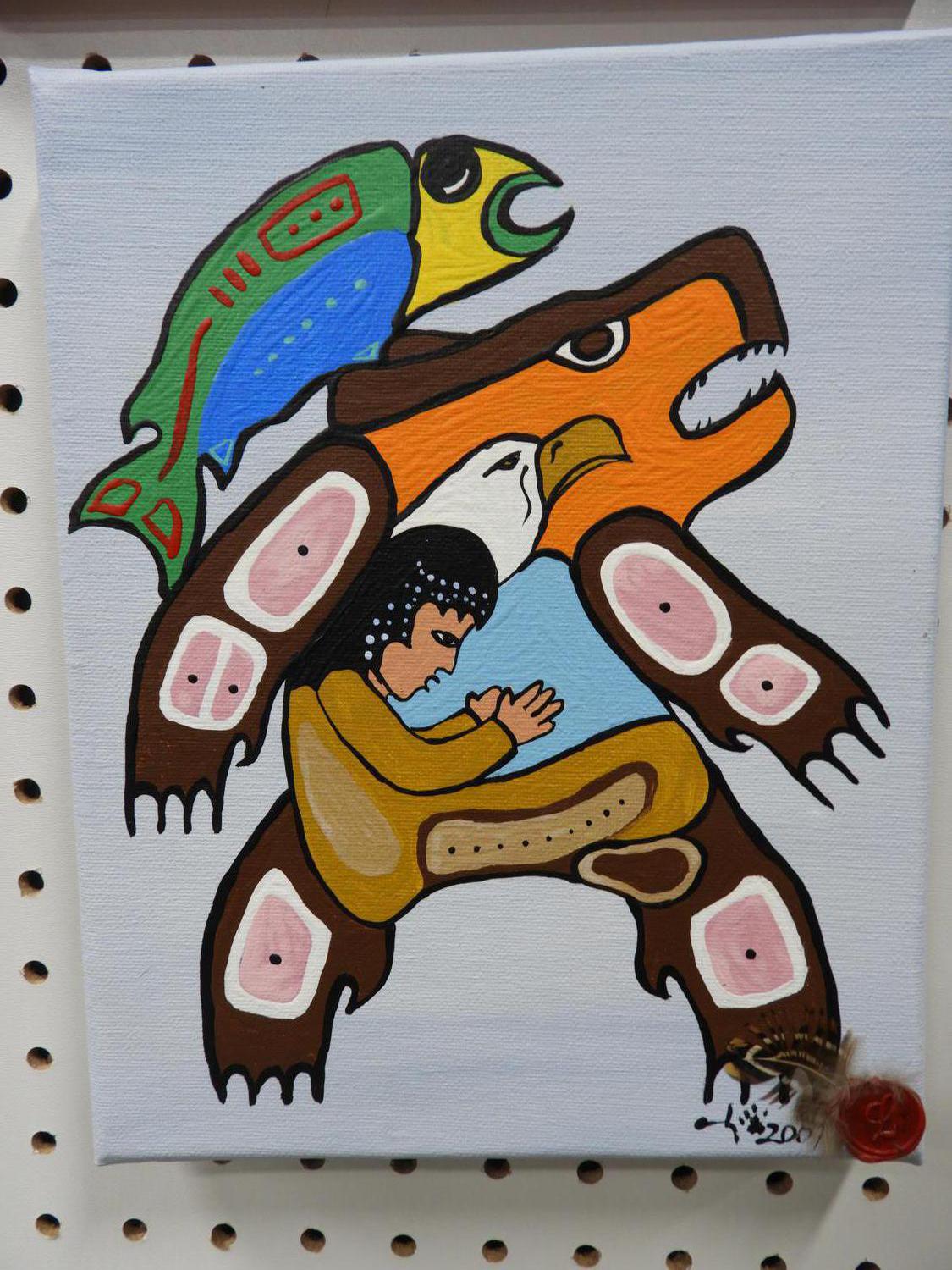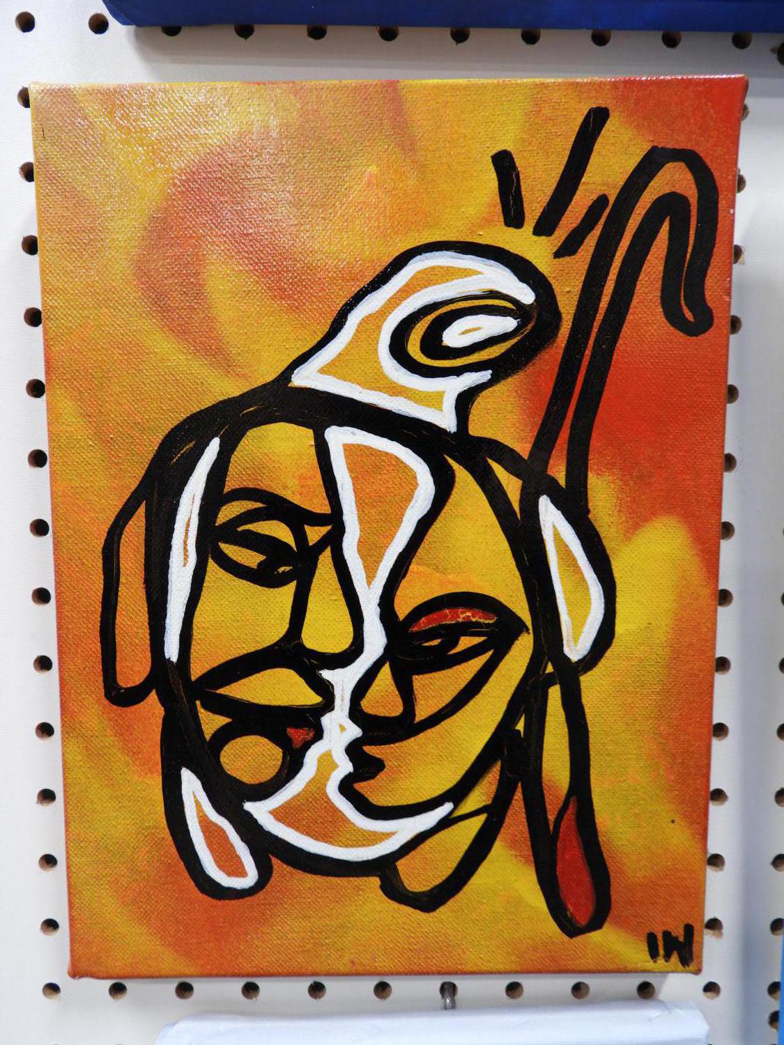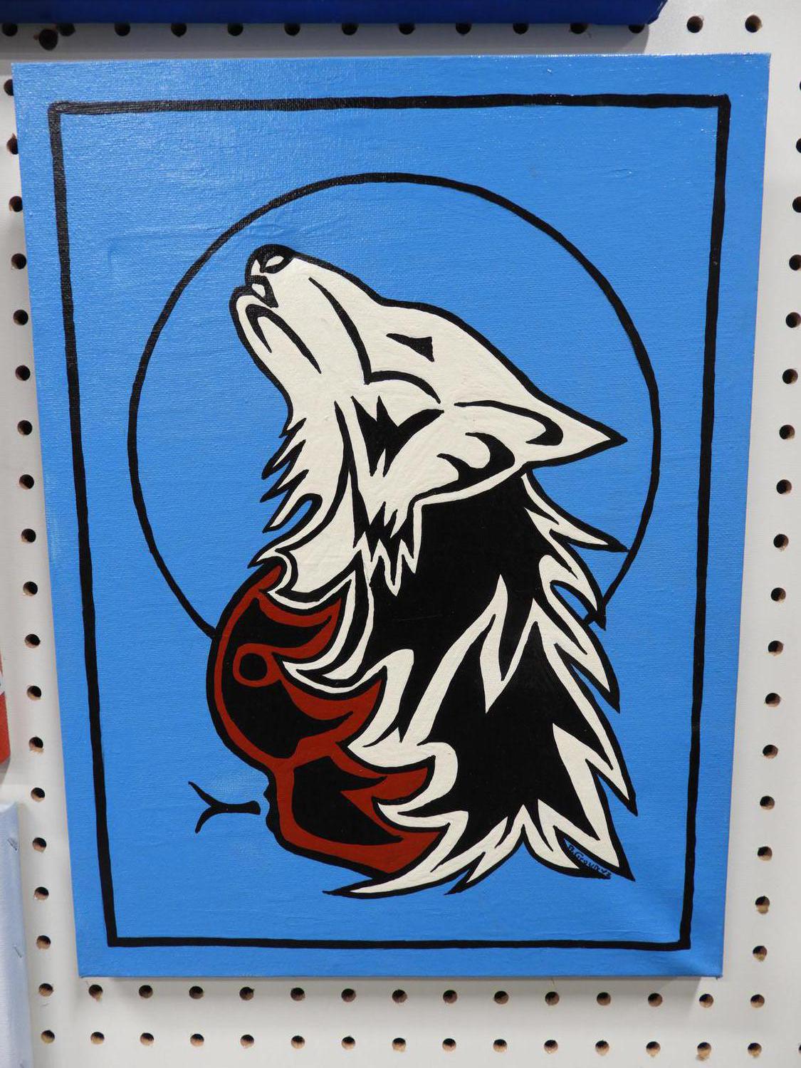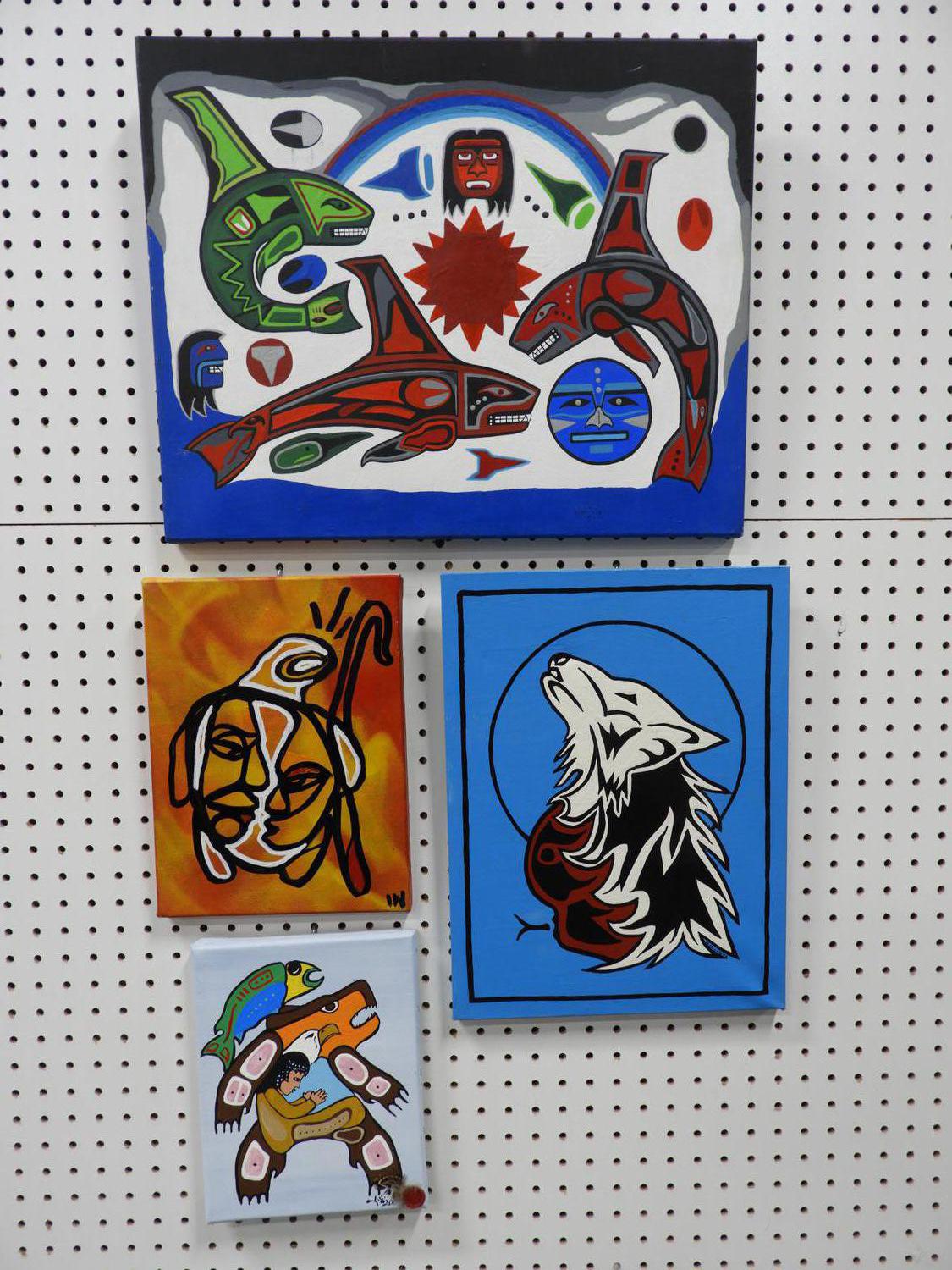 group of four acrylic on canvas, 16" x 20" and smaller, signed