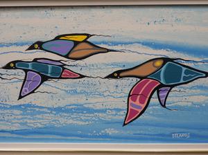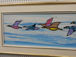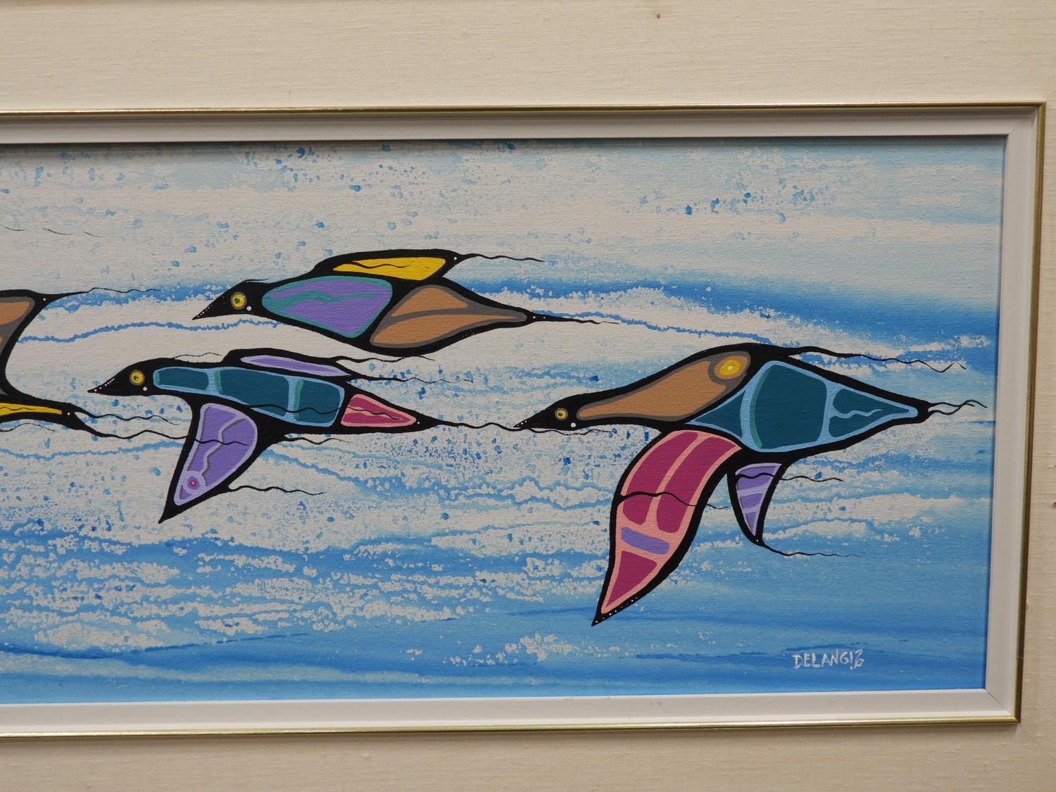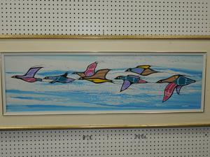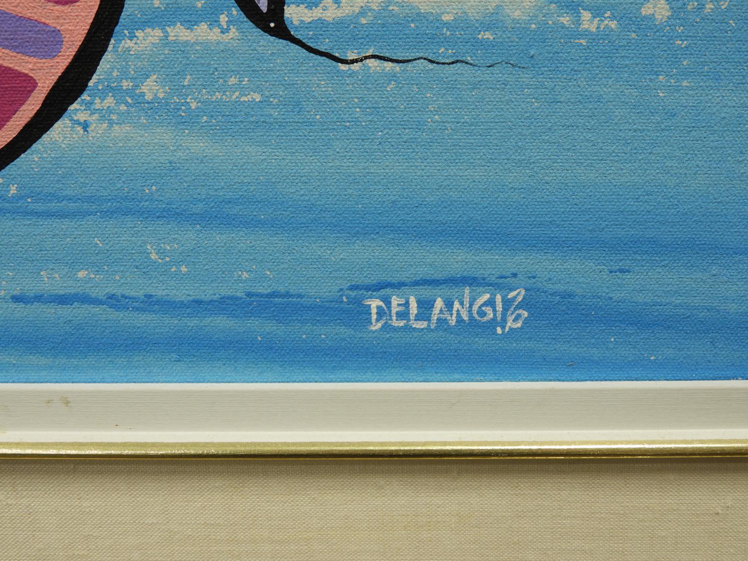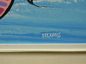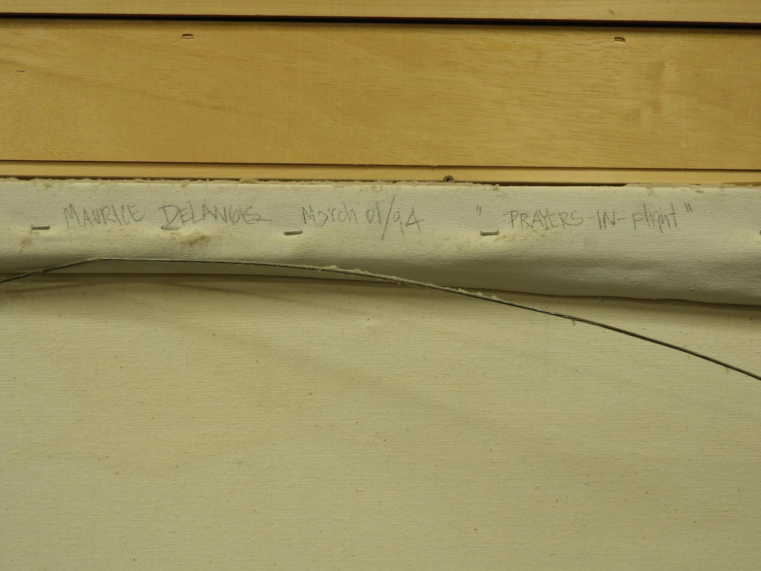 maurice delangis, d.1994, acrylic on canvas, 14" x 48", "prayers in flight"