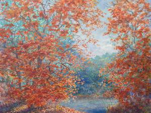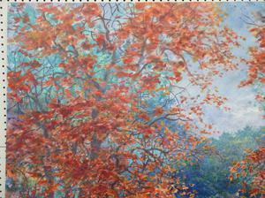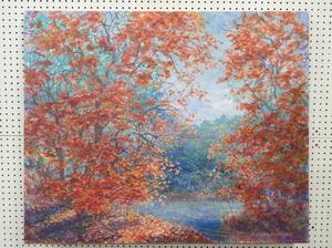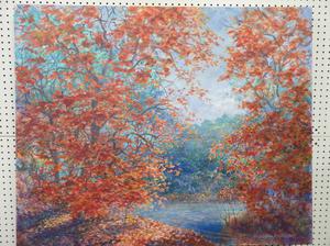 linda bruce, acrylic on canvas, 35" x 44", "fall landscape"