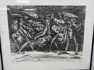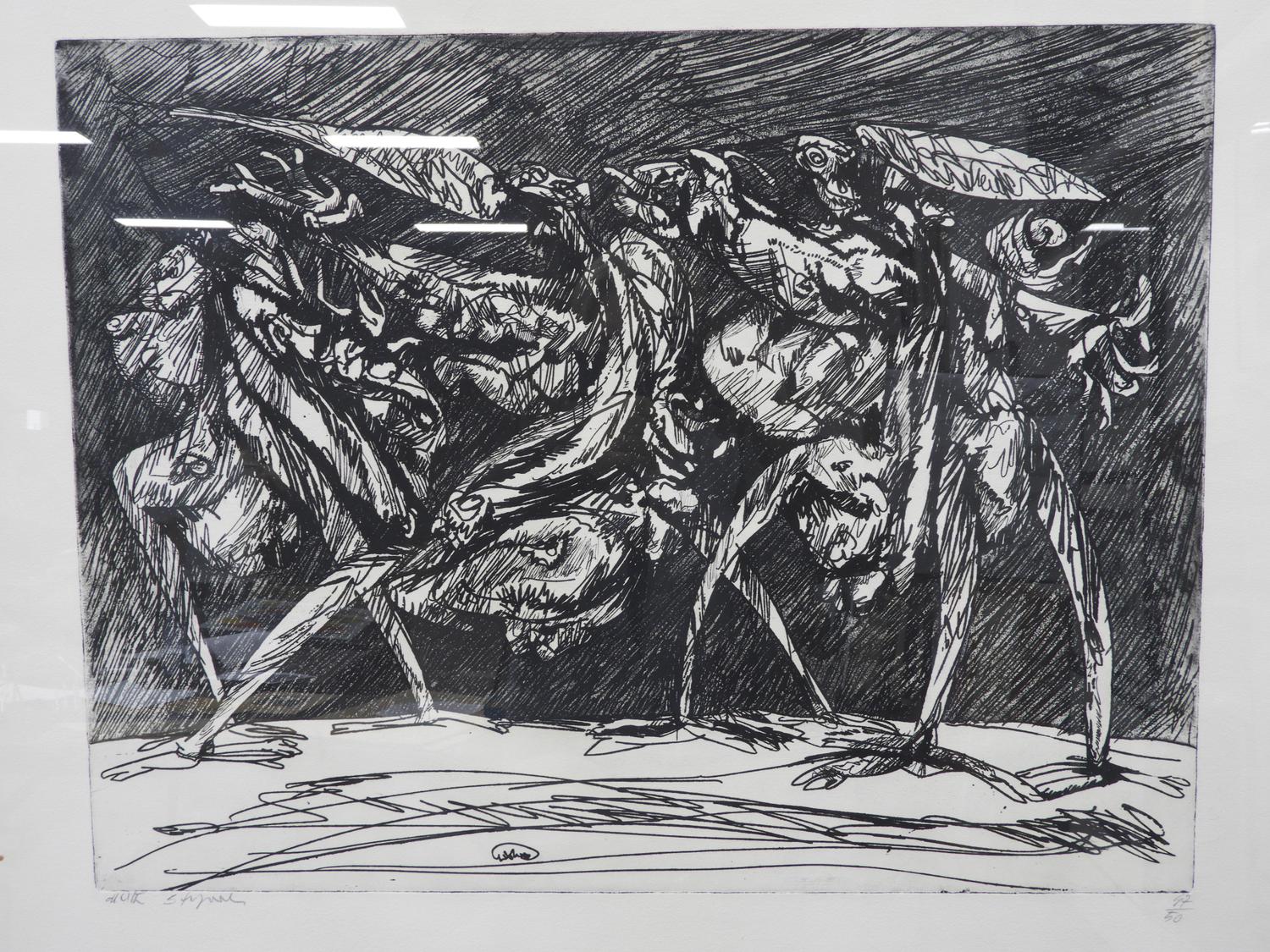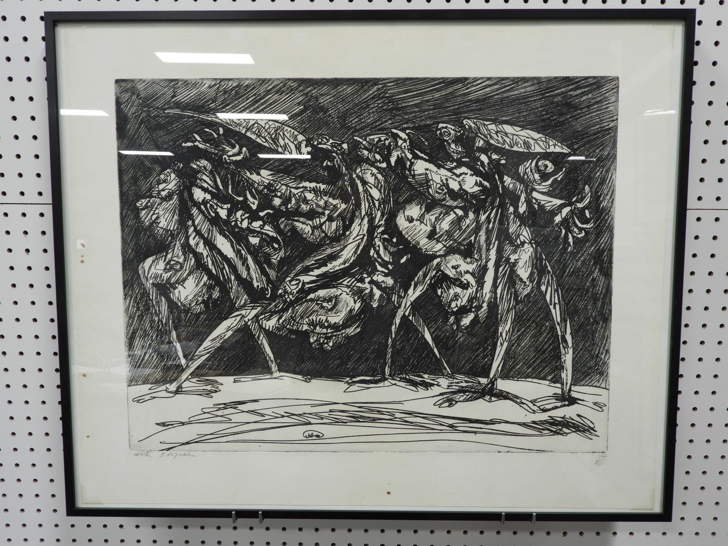 luciano de vita (1929-1992), ltd. engraving, 47/50. 25" x 30", "abstract figures"