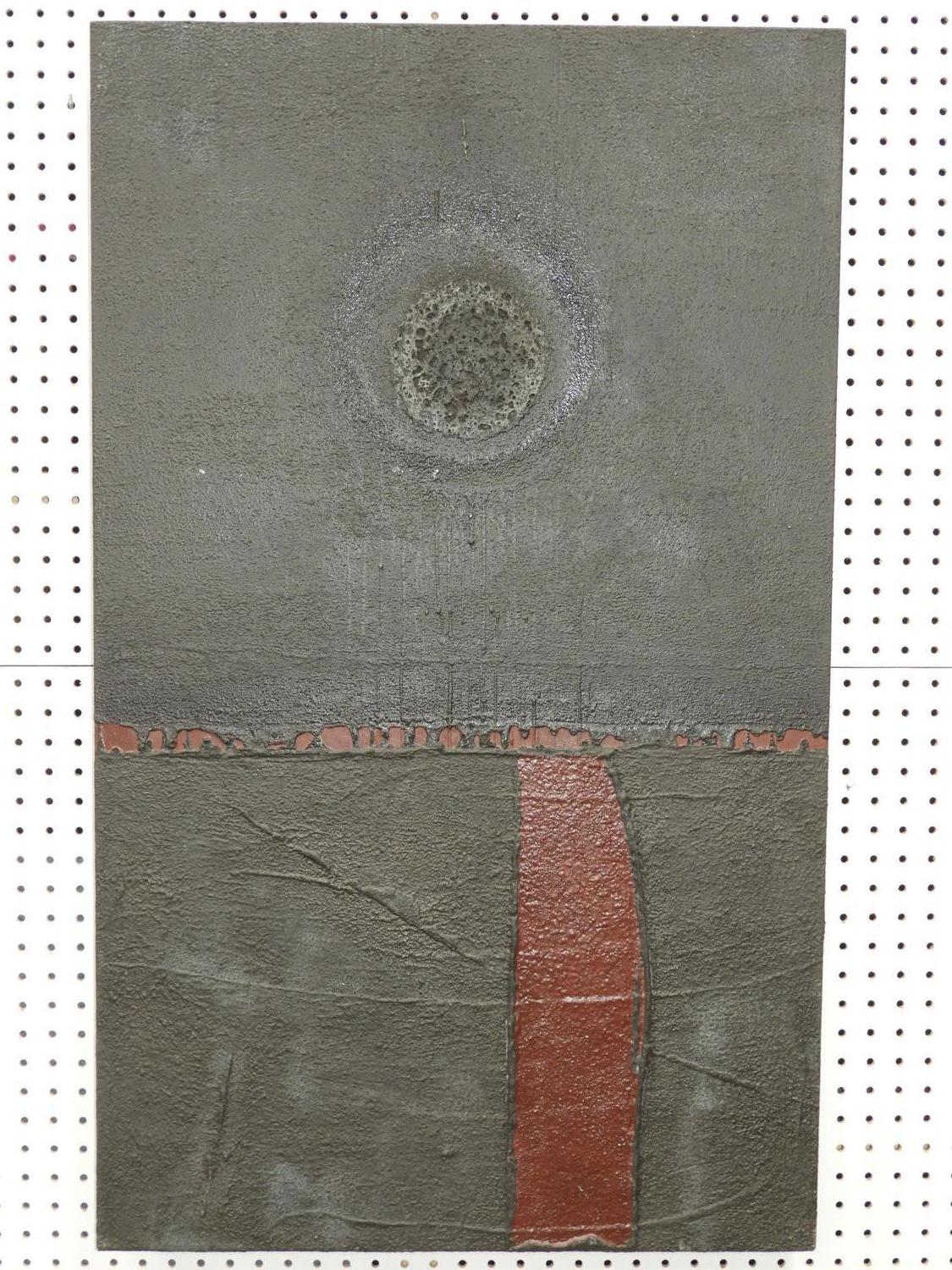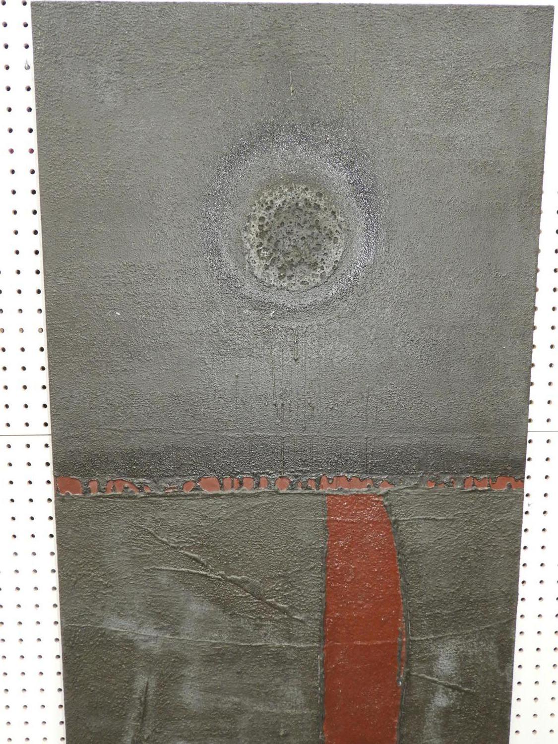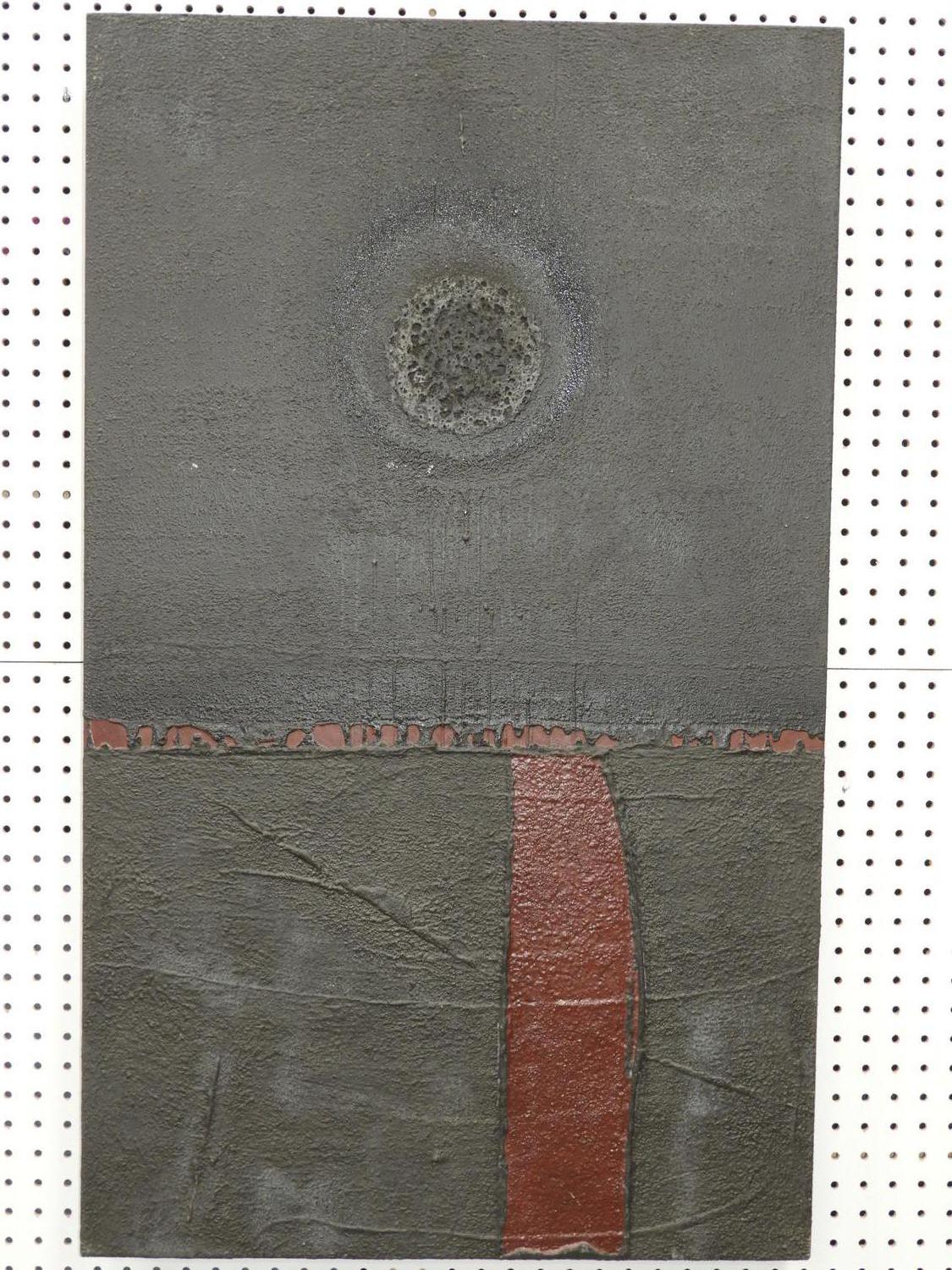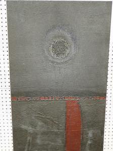indistinctly signed, mixed media on board, d. 2001, 40" x 24", "untitled b"