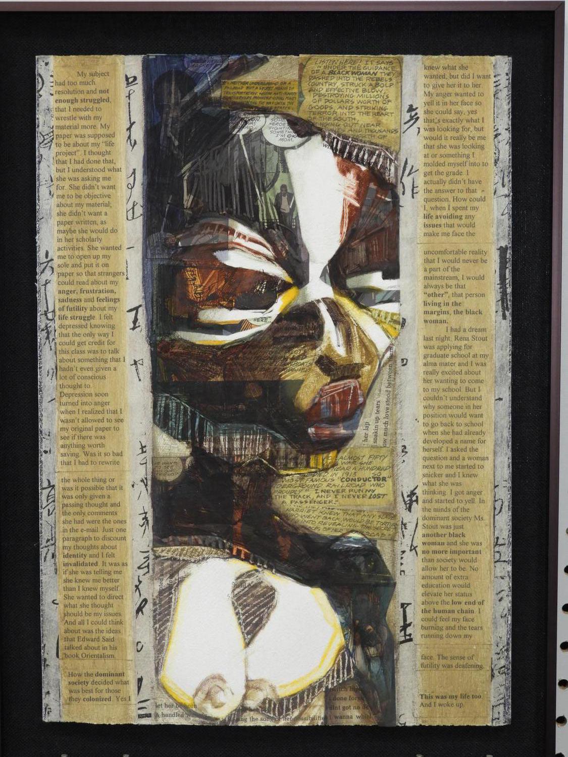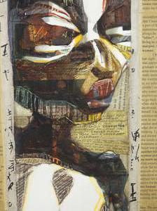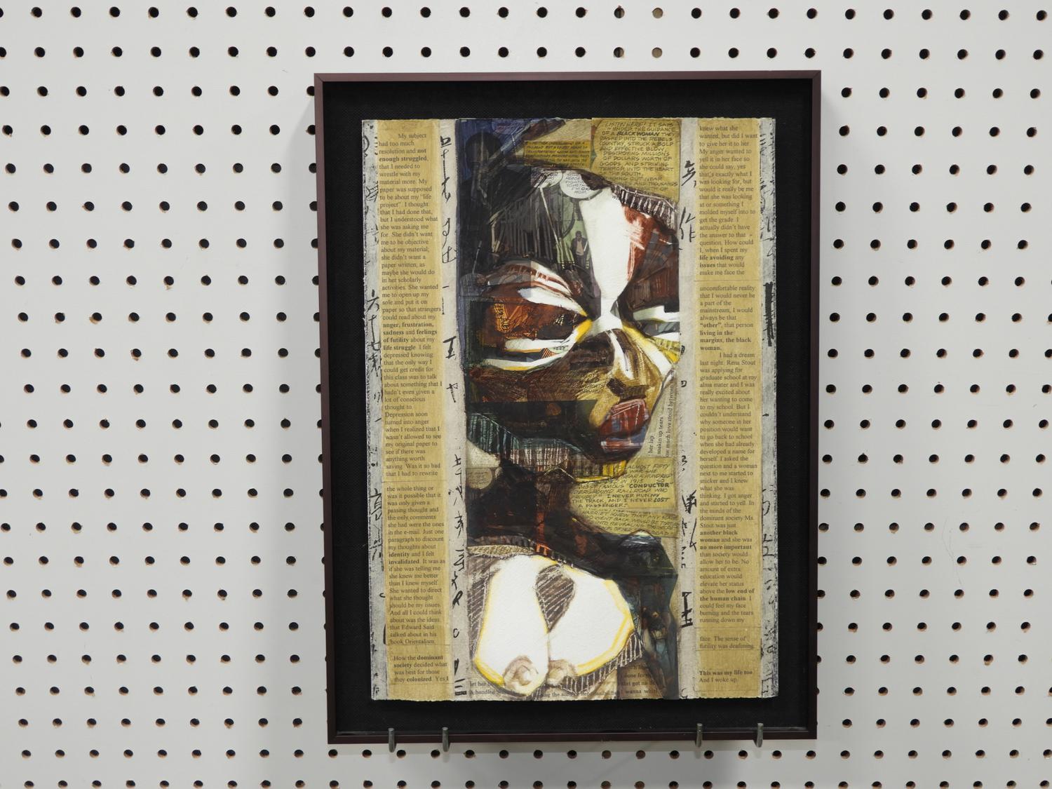 unsigned mixed media collage, 15" x 10 1/2" , "abstract nude figure"