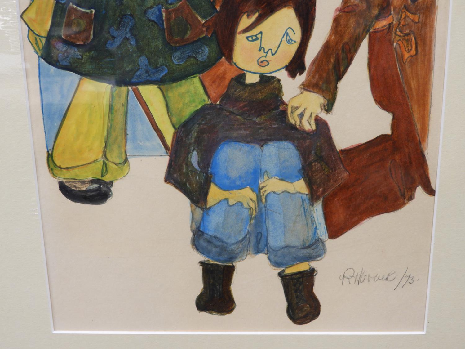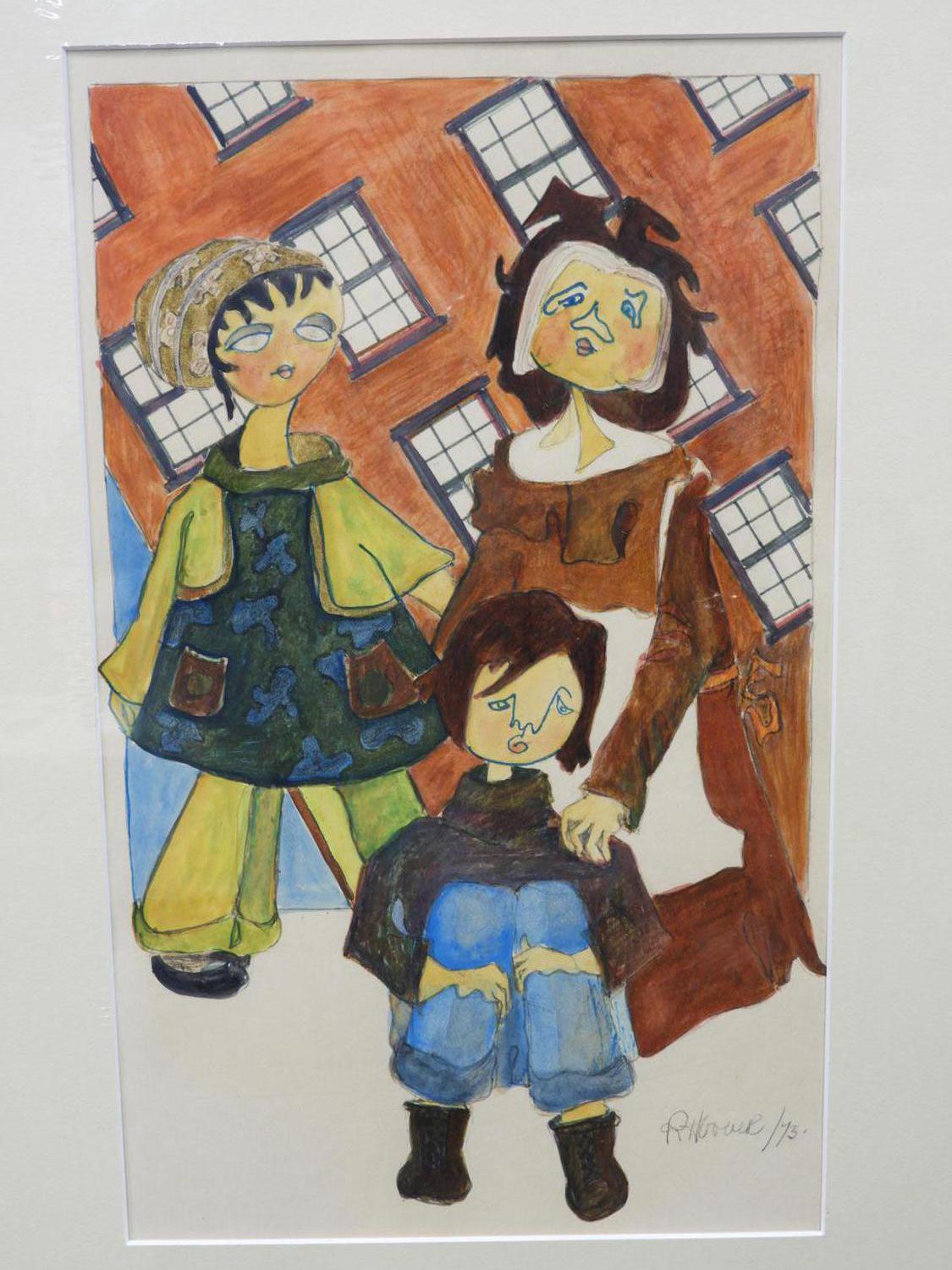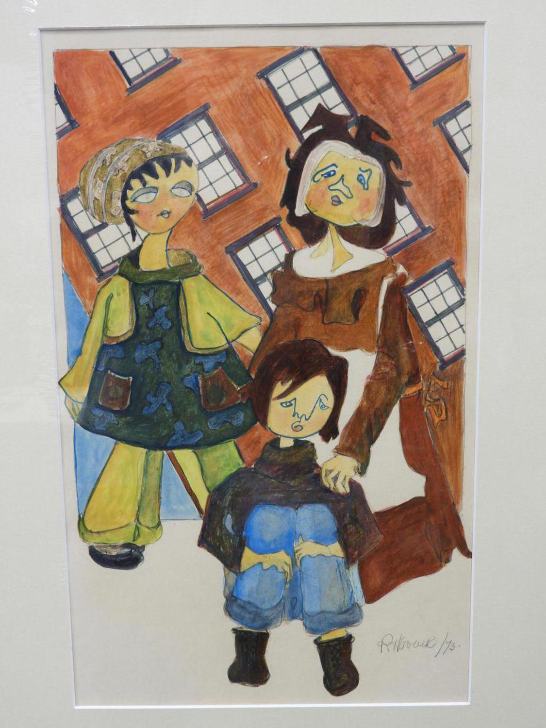 roy henry grover(1929-2003), watercolor, d. 1973, 15" x 10", "figures"