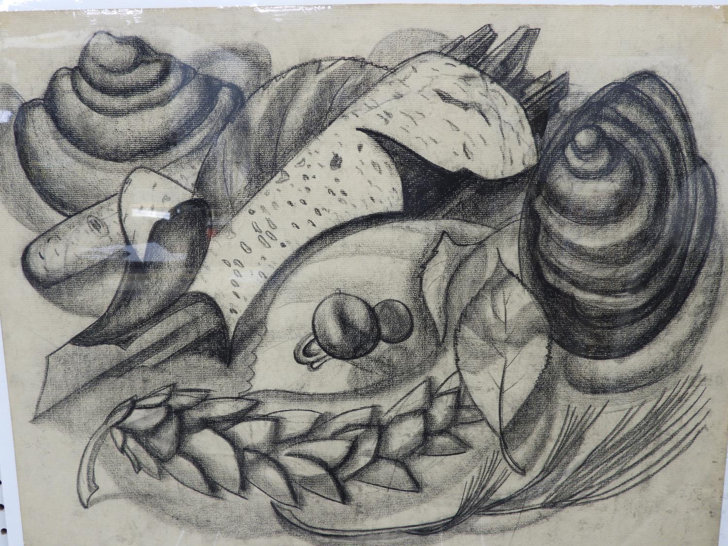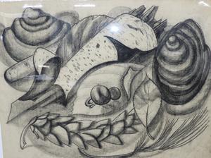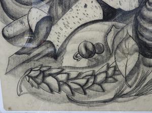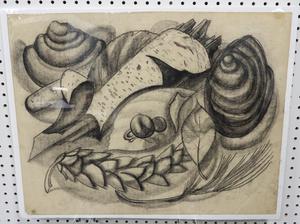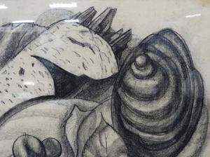 isabel grace mclaughlin(1903-2002), charcoal drawing, 18 1/2" x 24", "stillife"