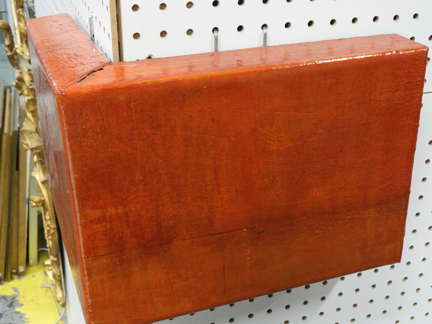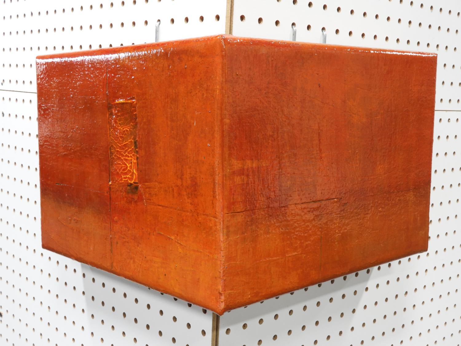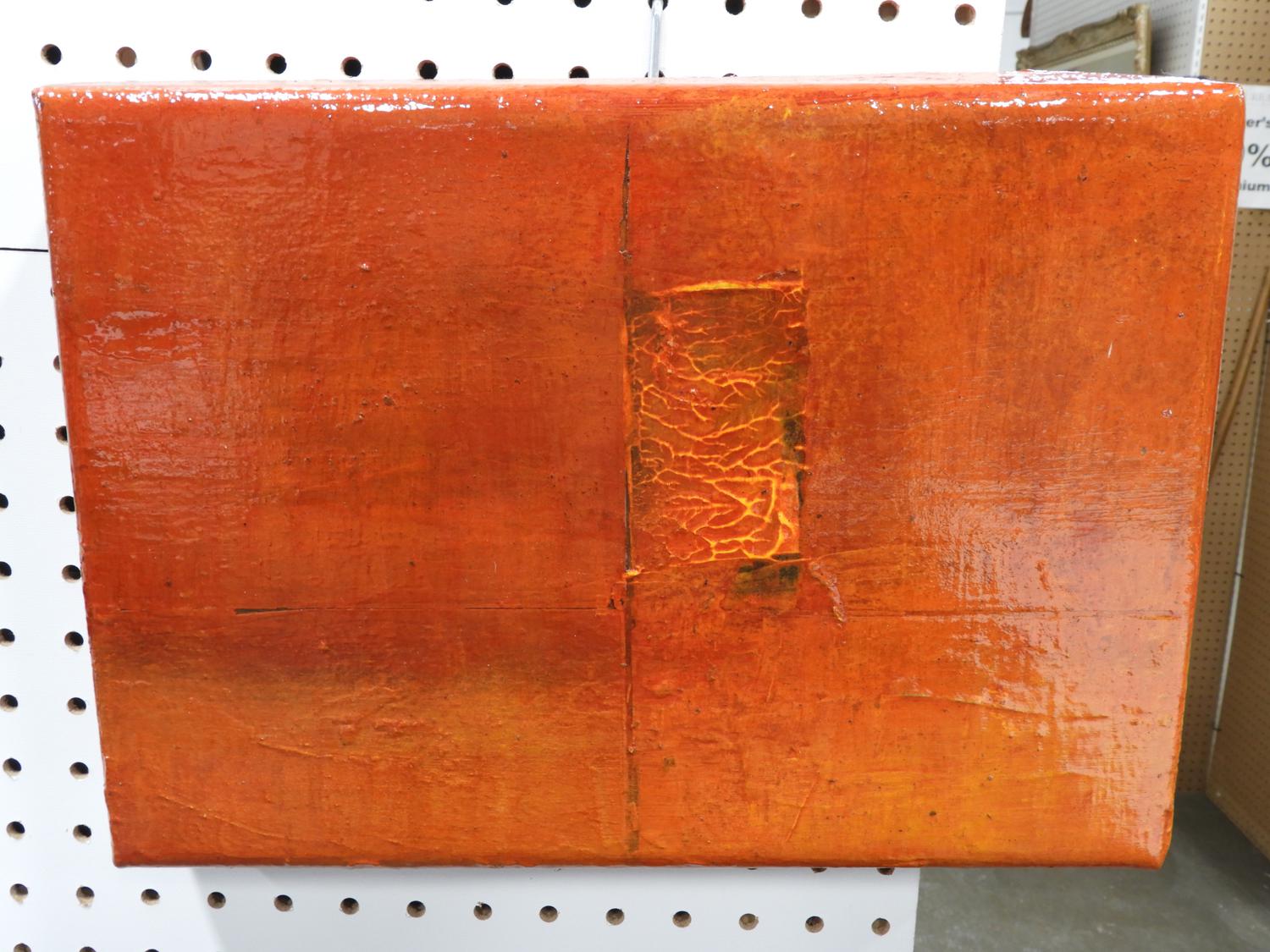 mike elsass, acrylic on steel, d.2005, l-shaped 10" x 28", "memory from sedona red #1"
