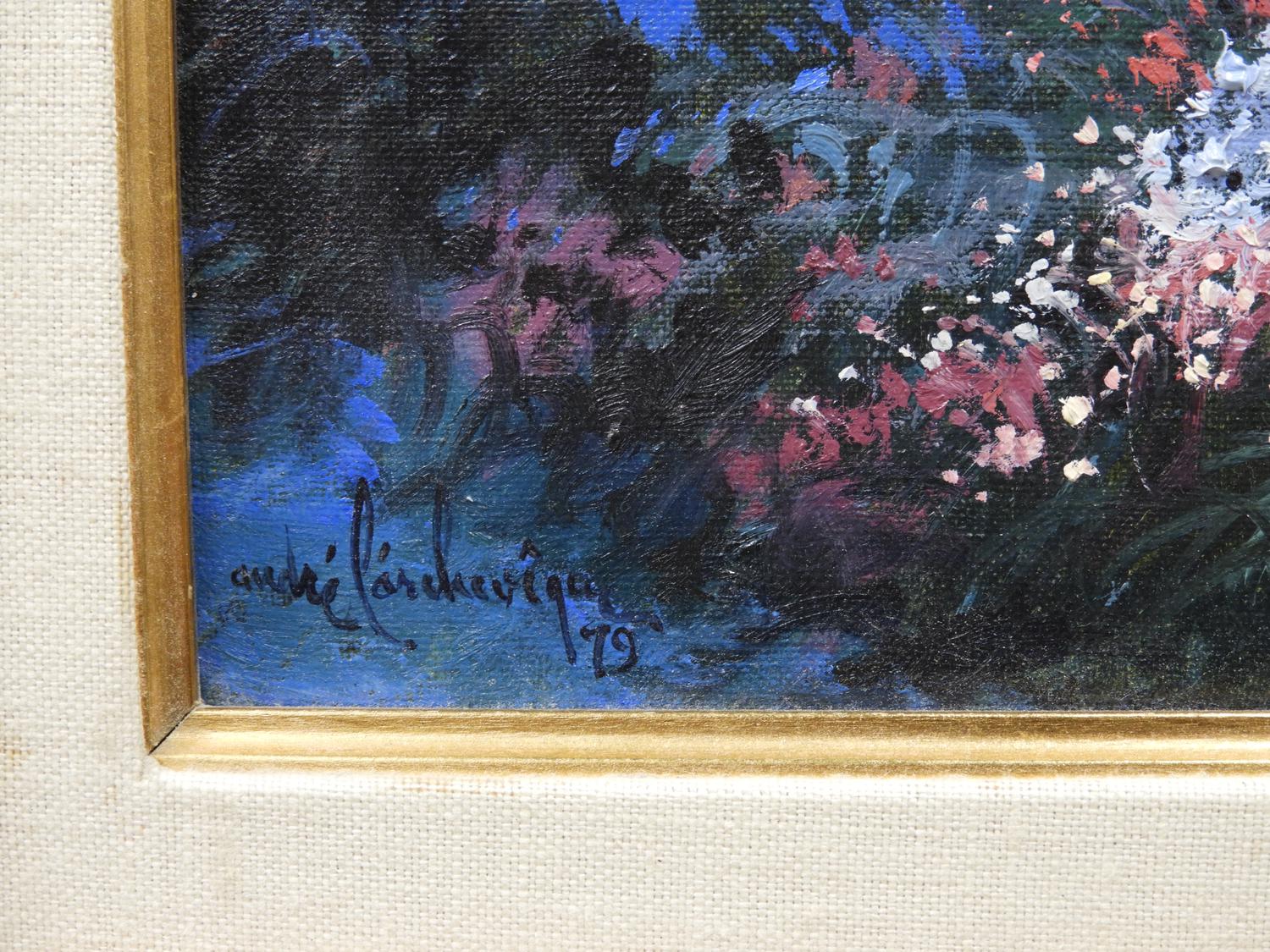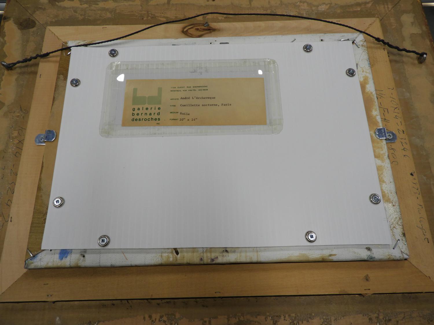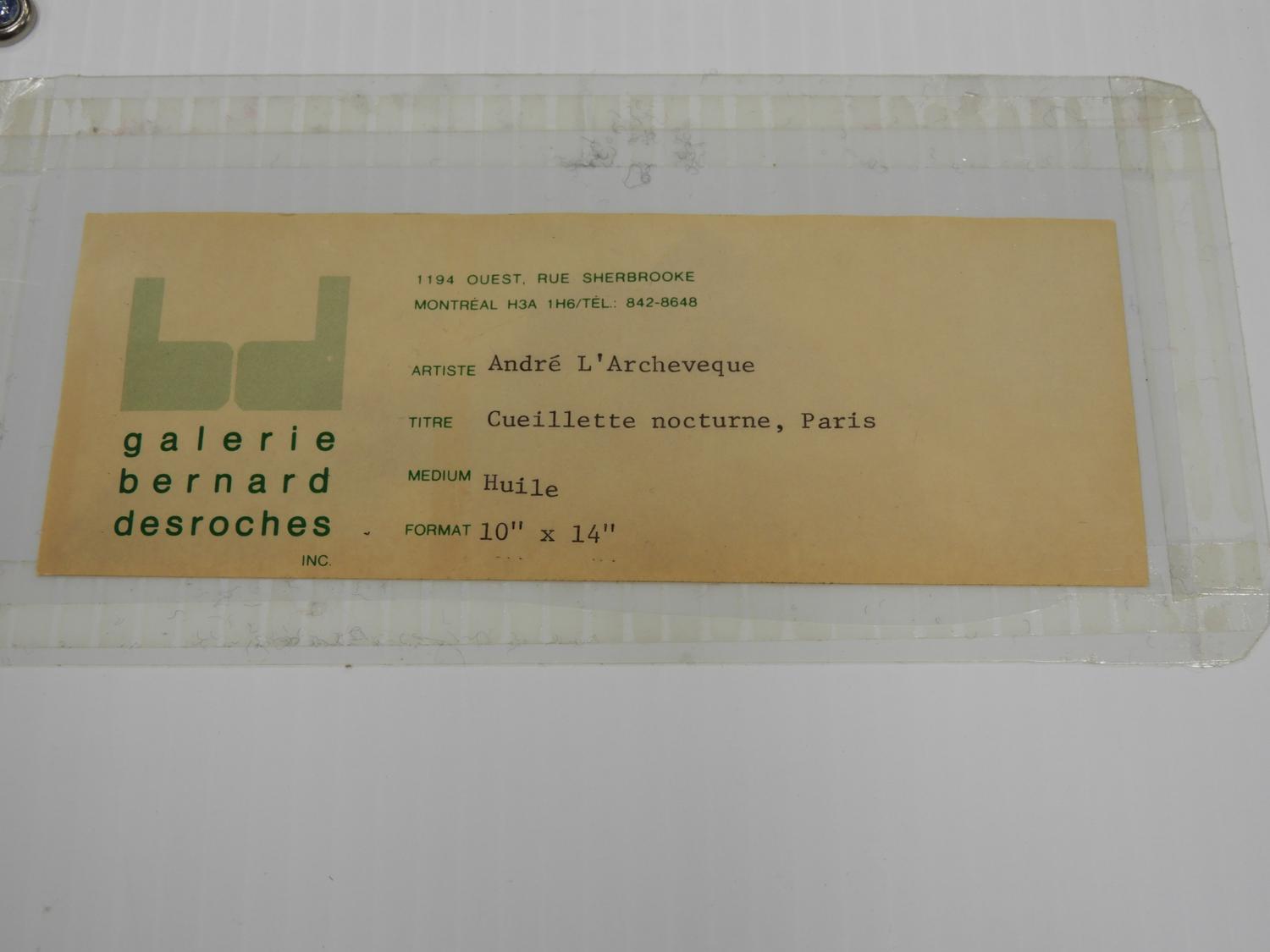 andre l'archeveque (1923-2005), oil on canvas, d.1979, 10" x 14", "cueillette nocturne, paris".