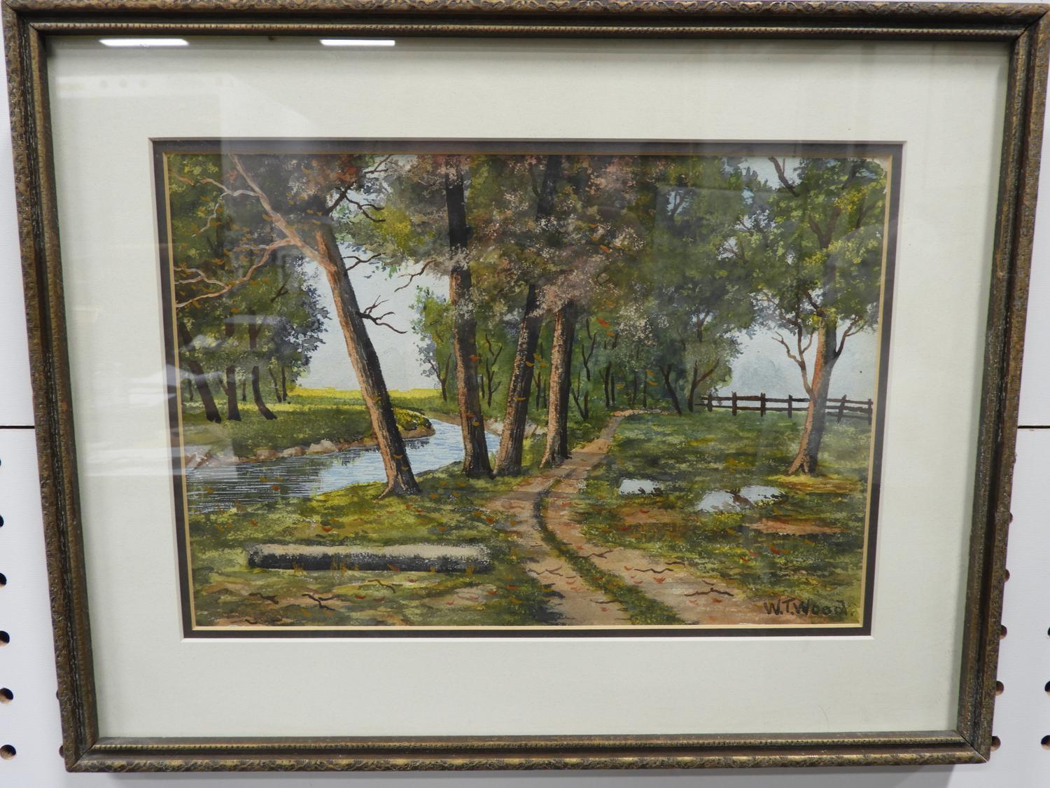 w. t. wood, watercolor, 8" x 11", "landscape with trees"