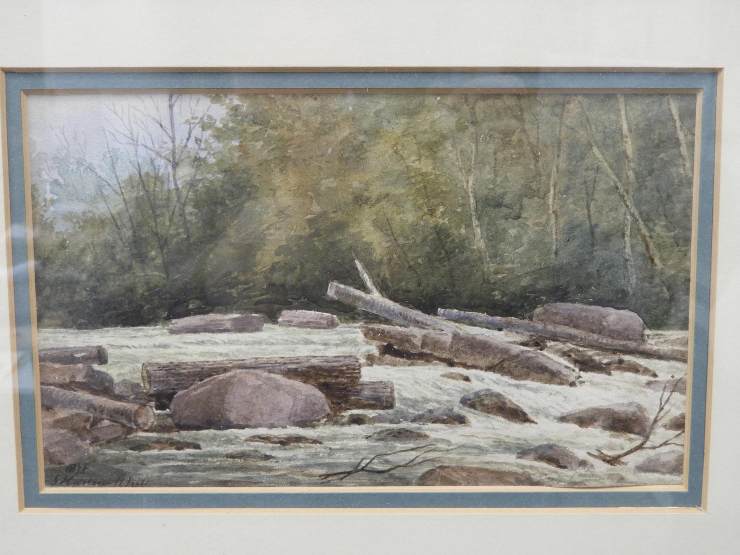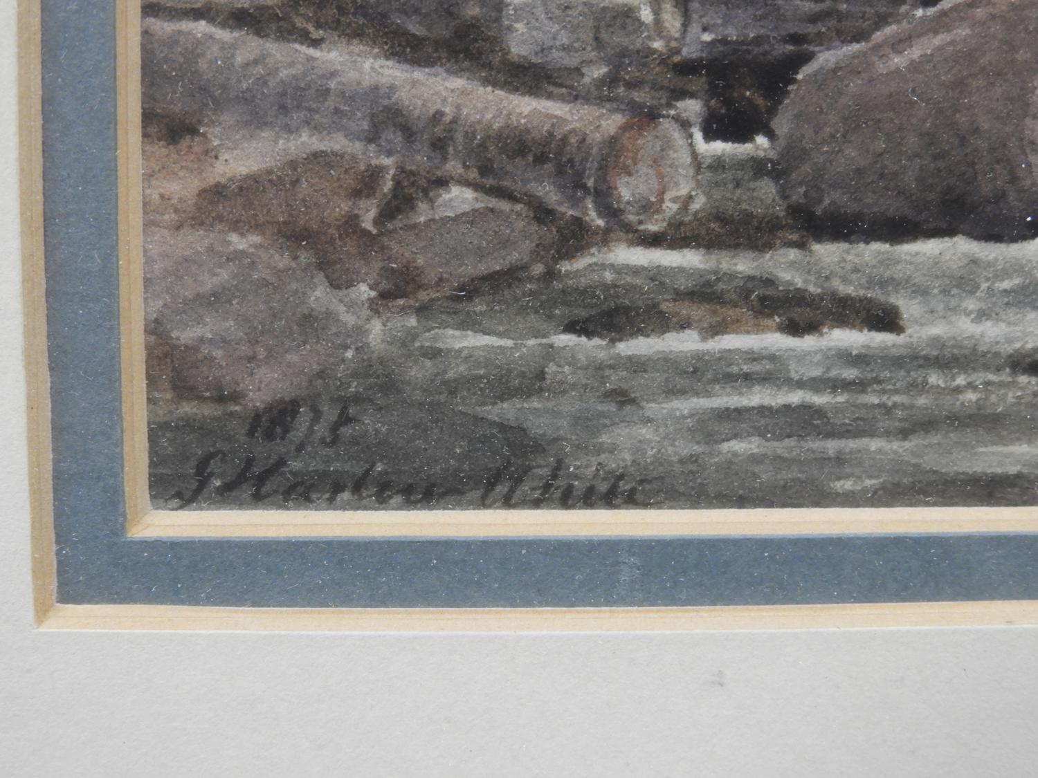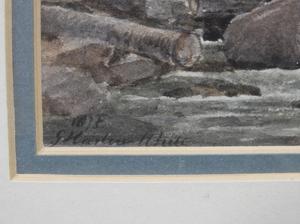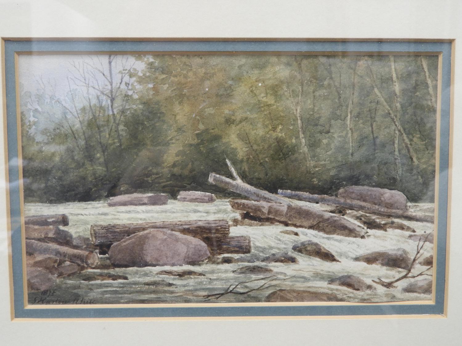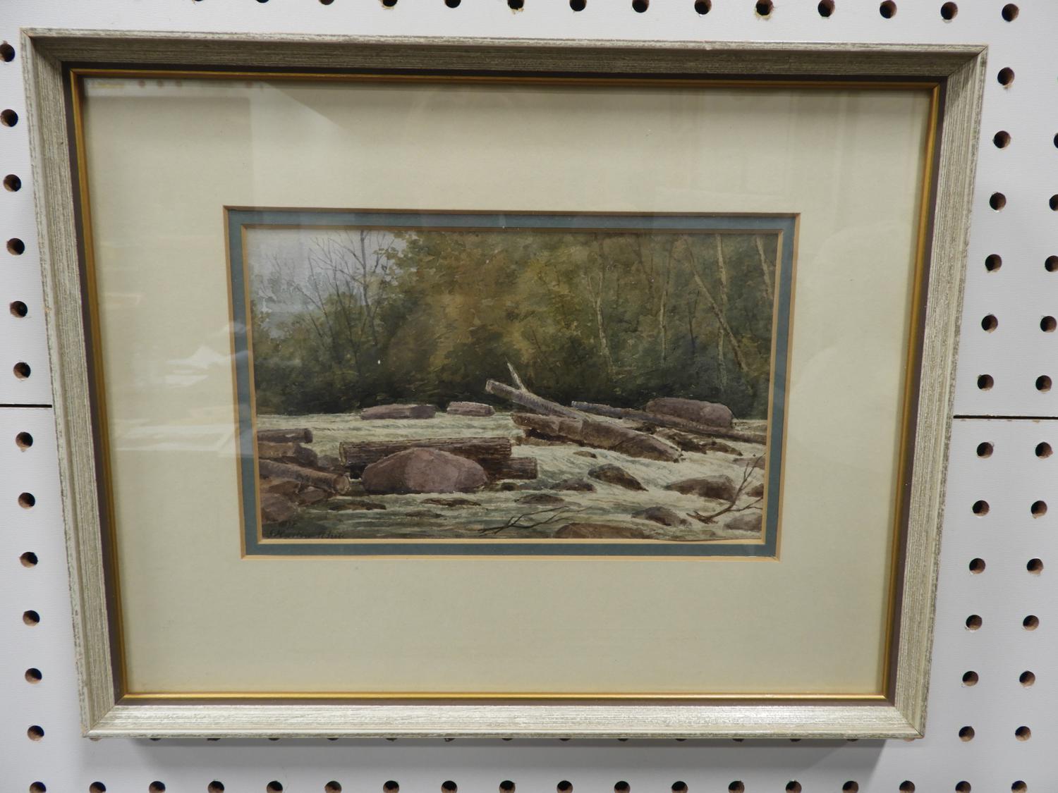 george harlow white (1817-1888), watercolor, d. 1875, 5" x 8", "rapids with logs"