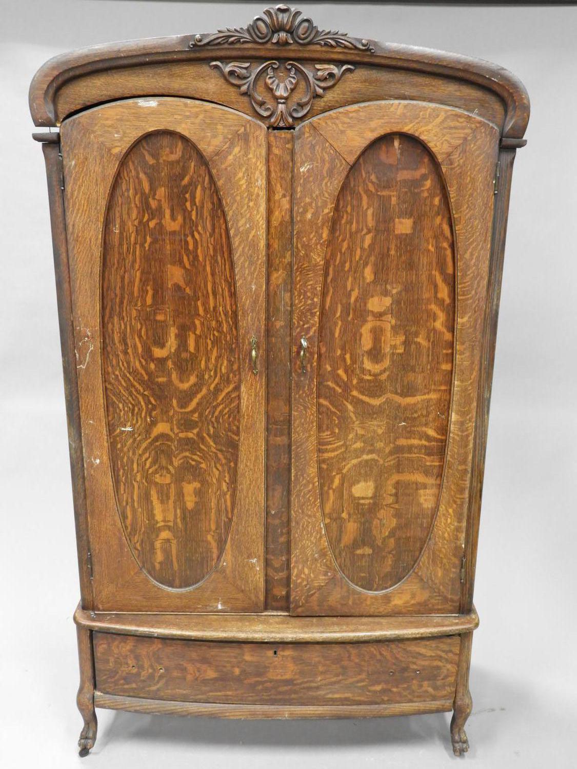 late 19th century oak two door wardrobe, 79" x 44" x 20"