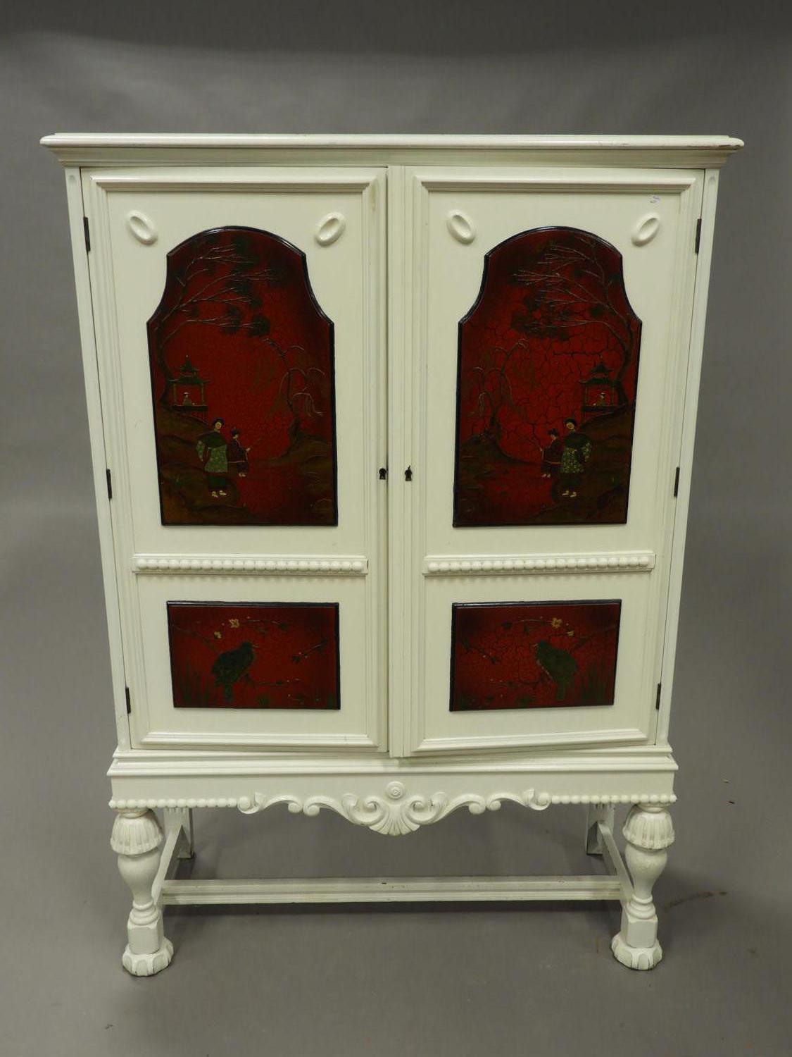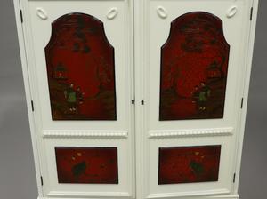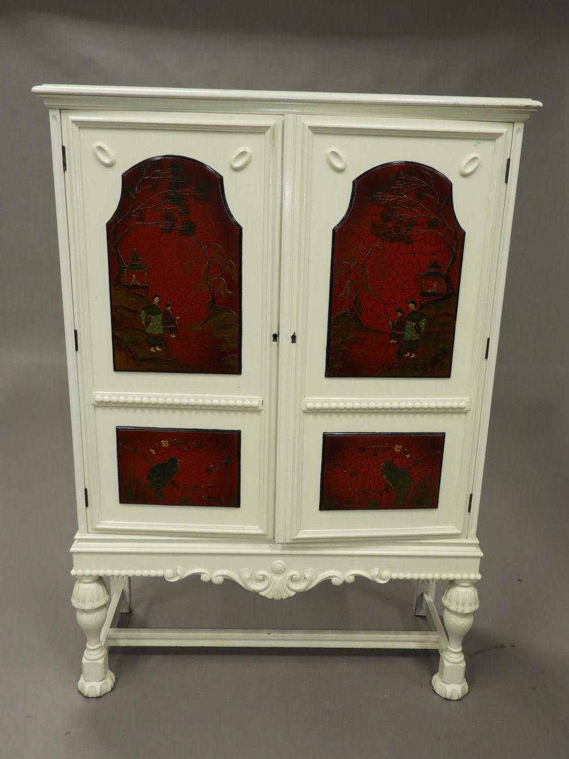 painted chinoiserie decorated cabinet, 61" x 42" x 16"
