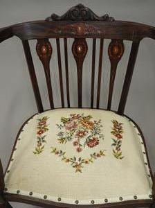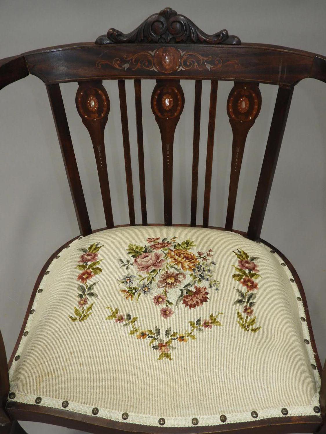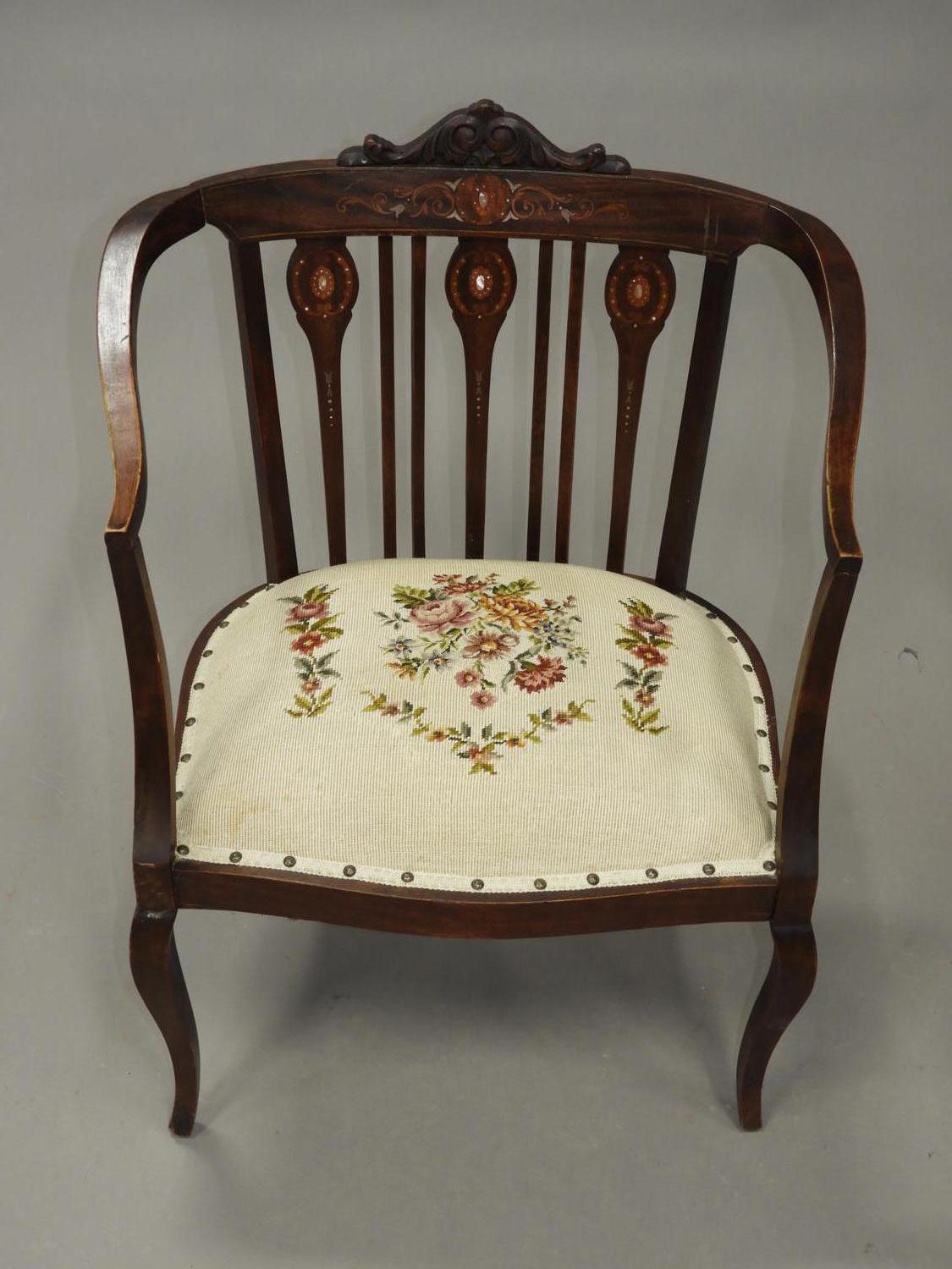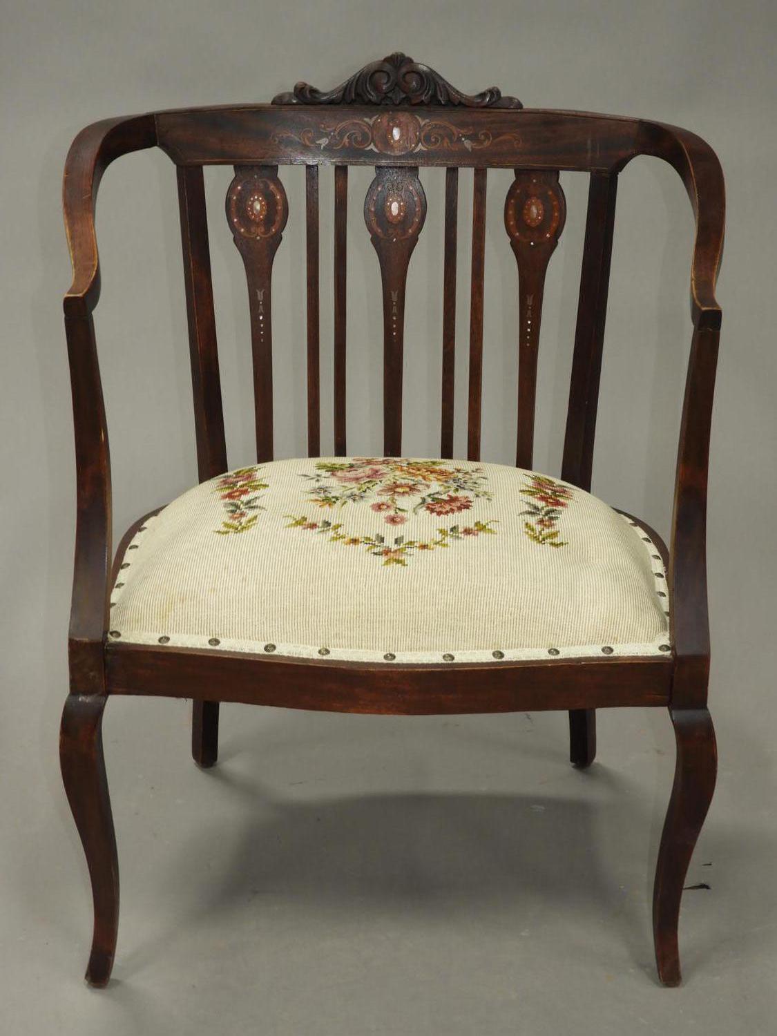 edwardian mahogany finish inlaid parlor armchair, circa 1900