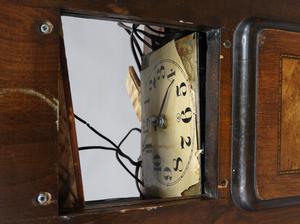 art deco floor model clock radio, case, 54" x 11" x 13"