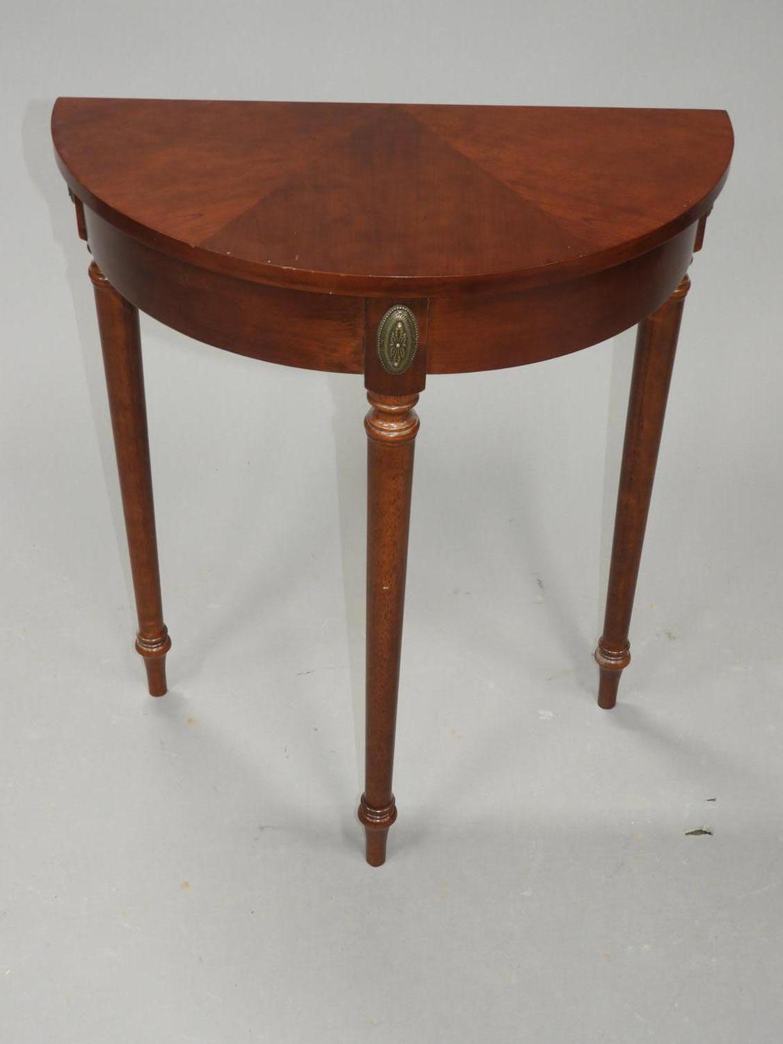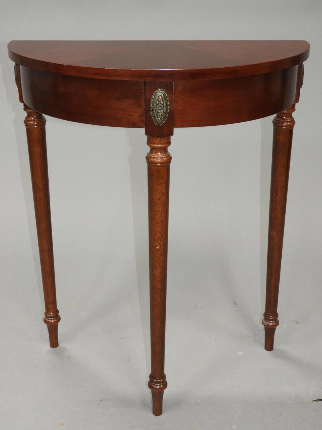 mahogany finish demi-lune side table, late 20th century, 22" x 27" x 20"
