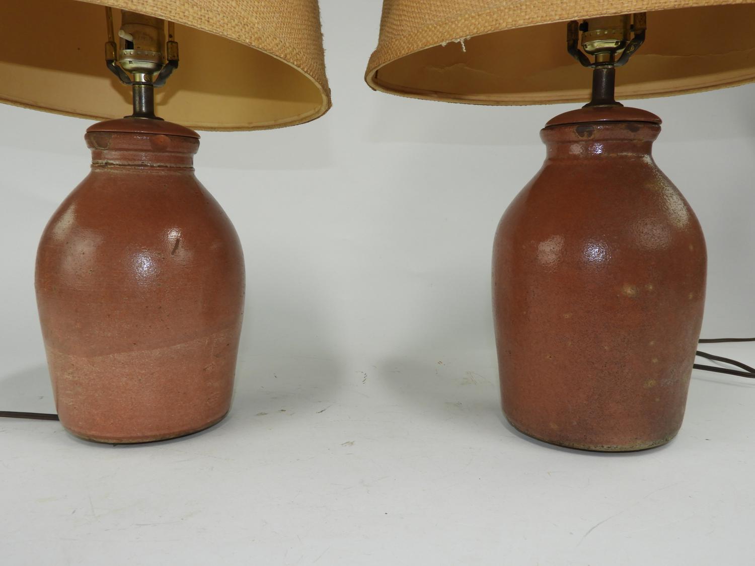 pair of pottery table lamps, ht. 26"