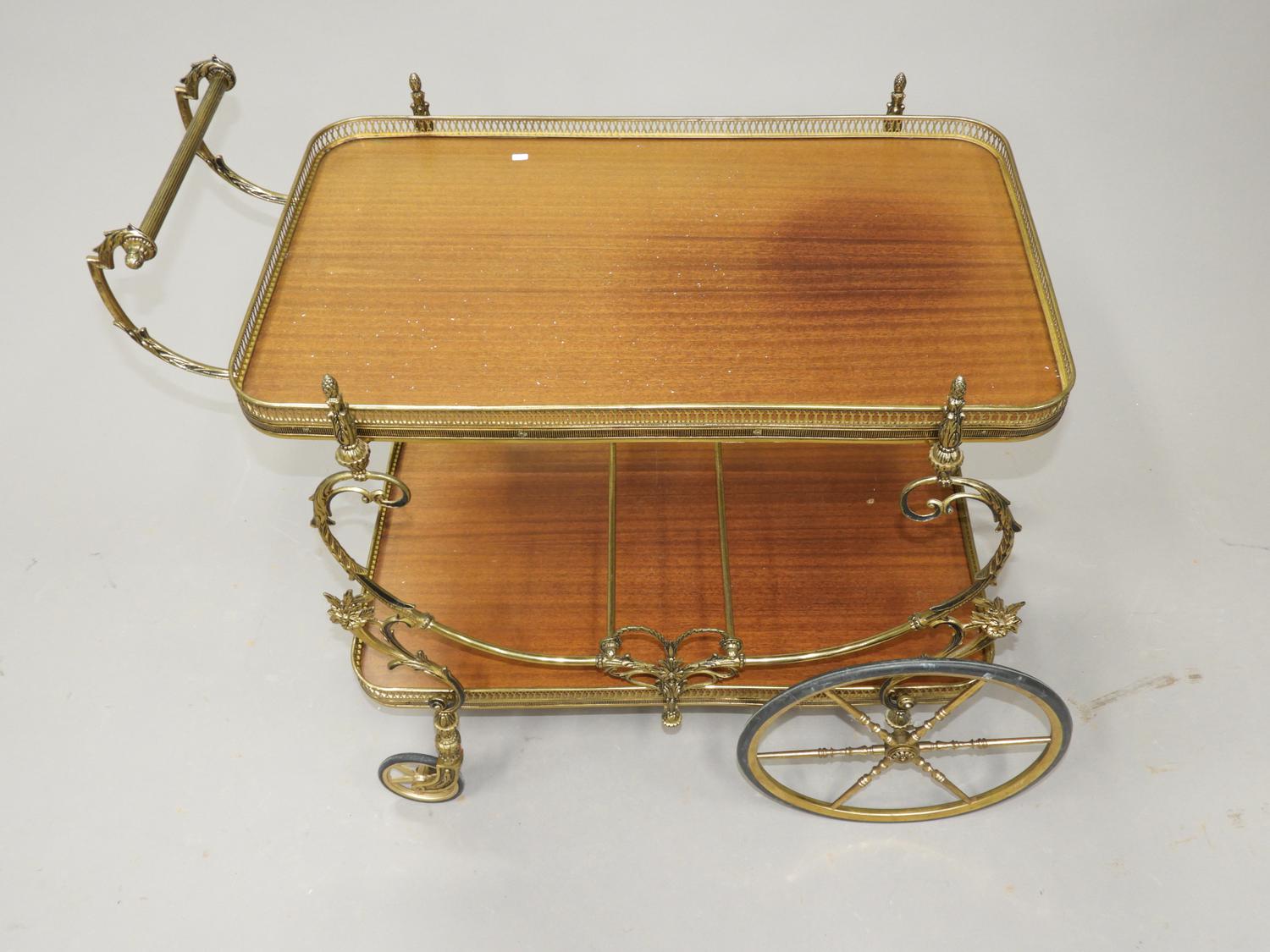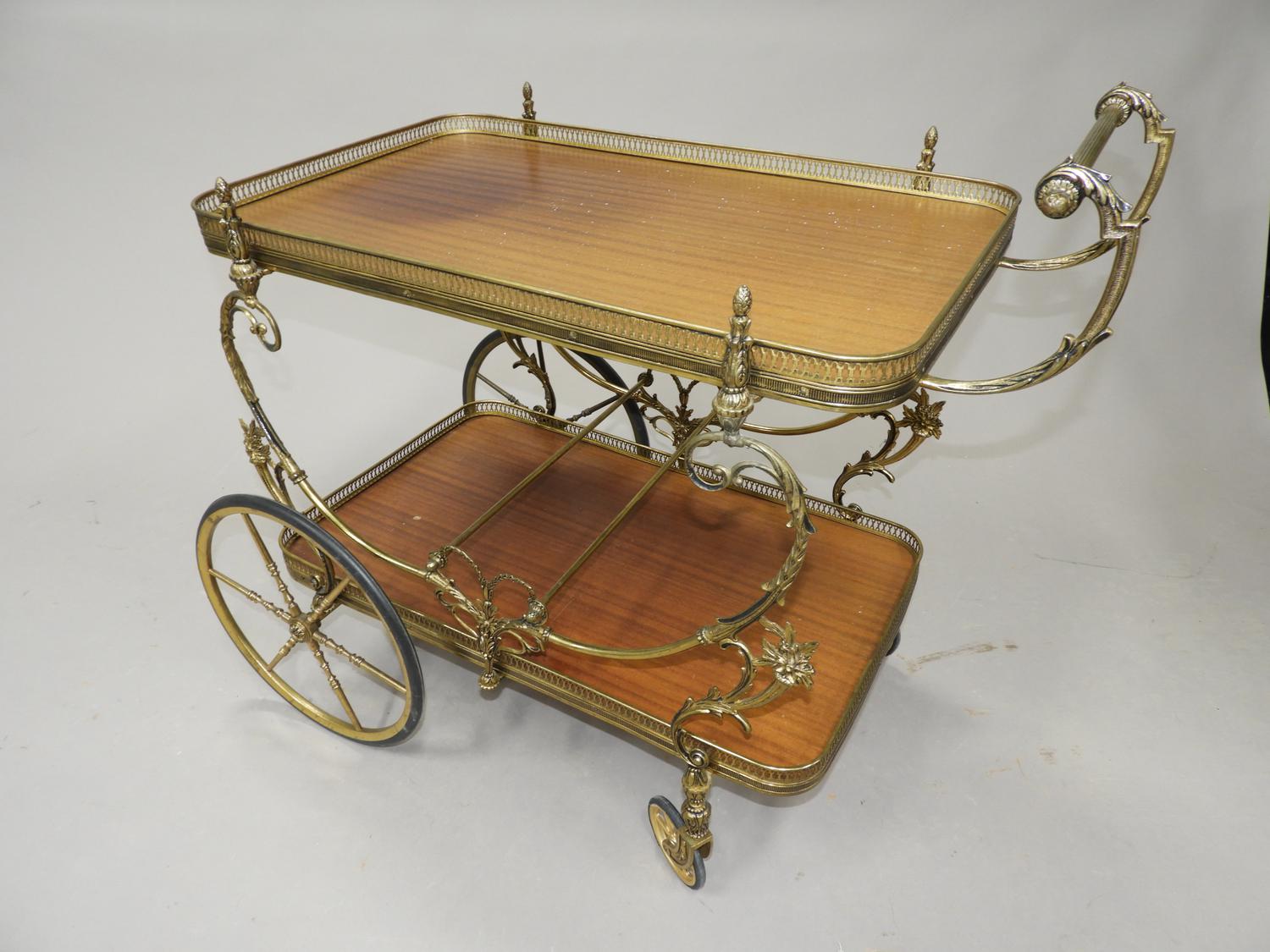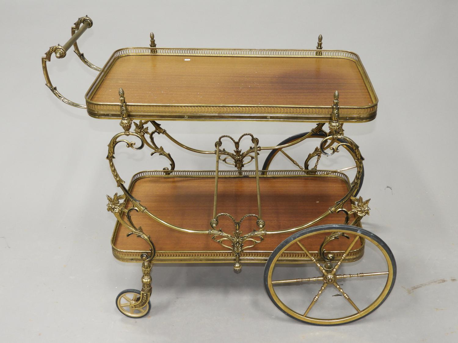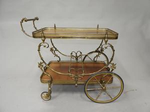 gilt metal mahogany drinks cart, mid 20th century, 31" x 32" x 20"