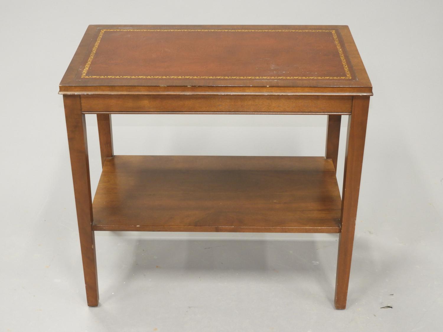 gilt tooled leather inset mahogany side table, mid 20th century, 23" x 25" x 14 1/2"